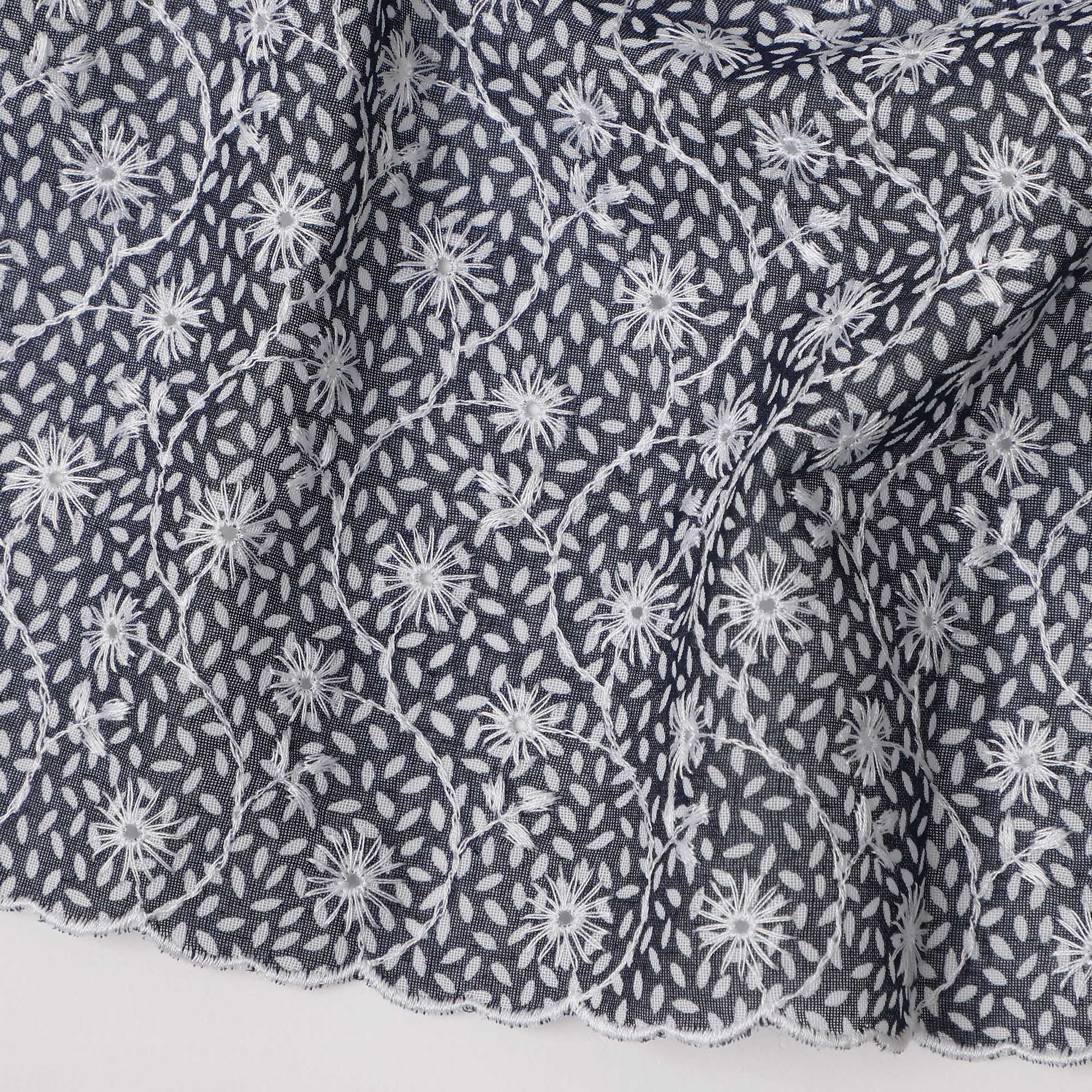 Premium Swiss cotton voile fabric with intricate embroidery.