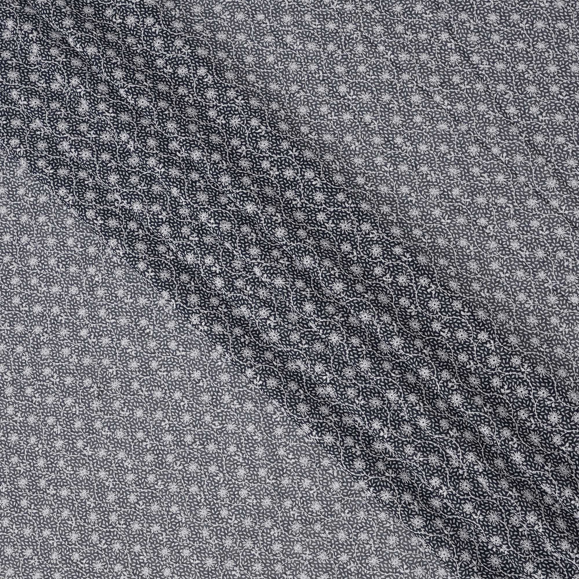 Black color with elegant white floral embroidered patterns.