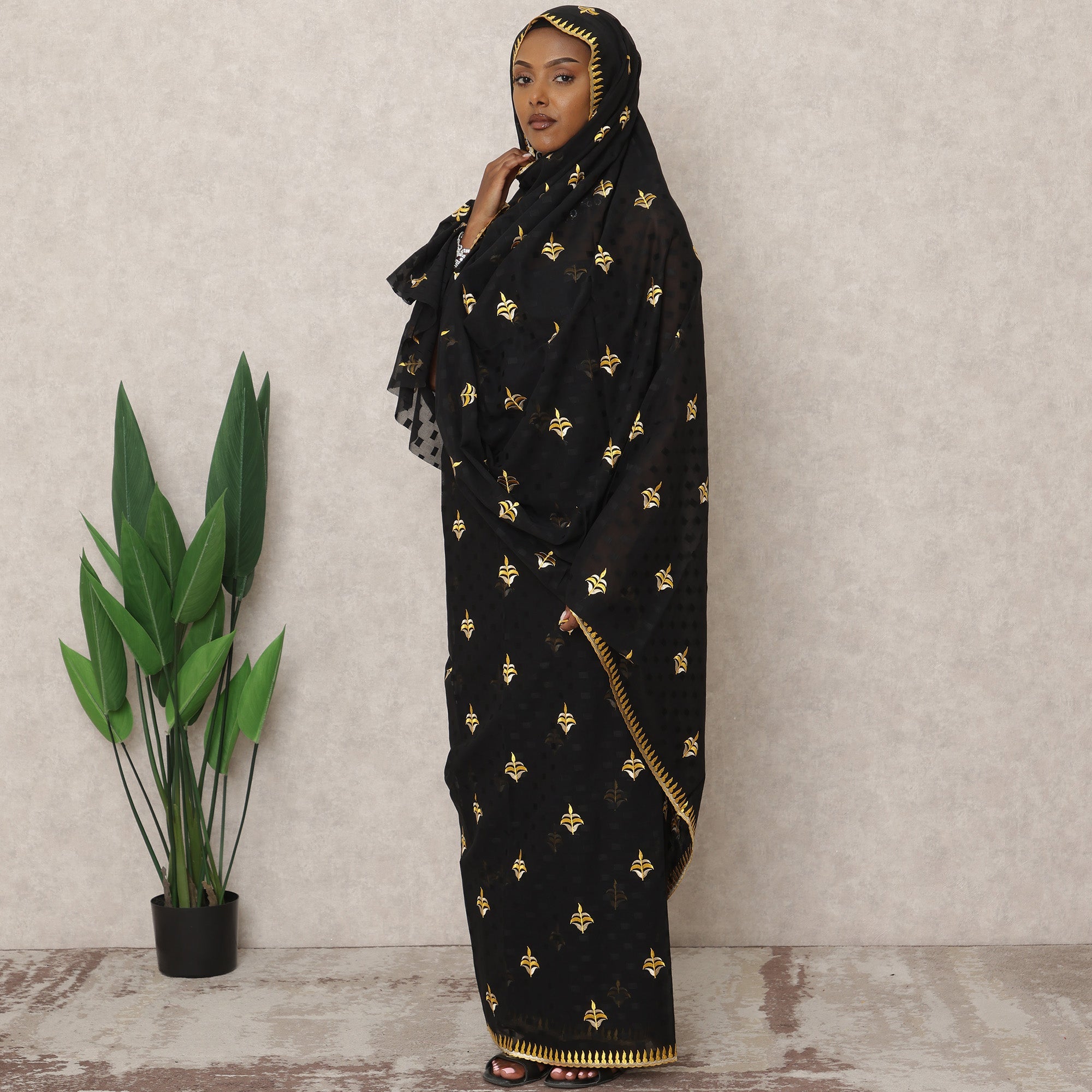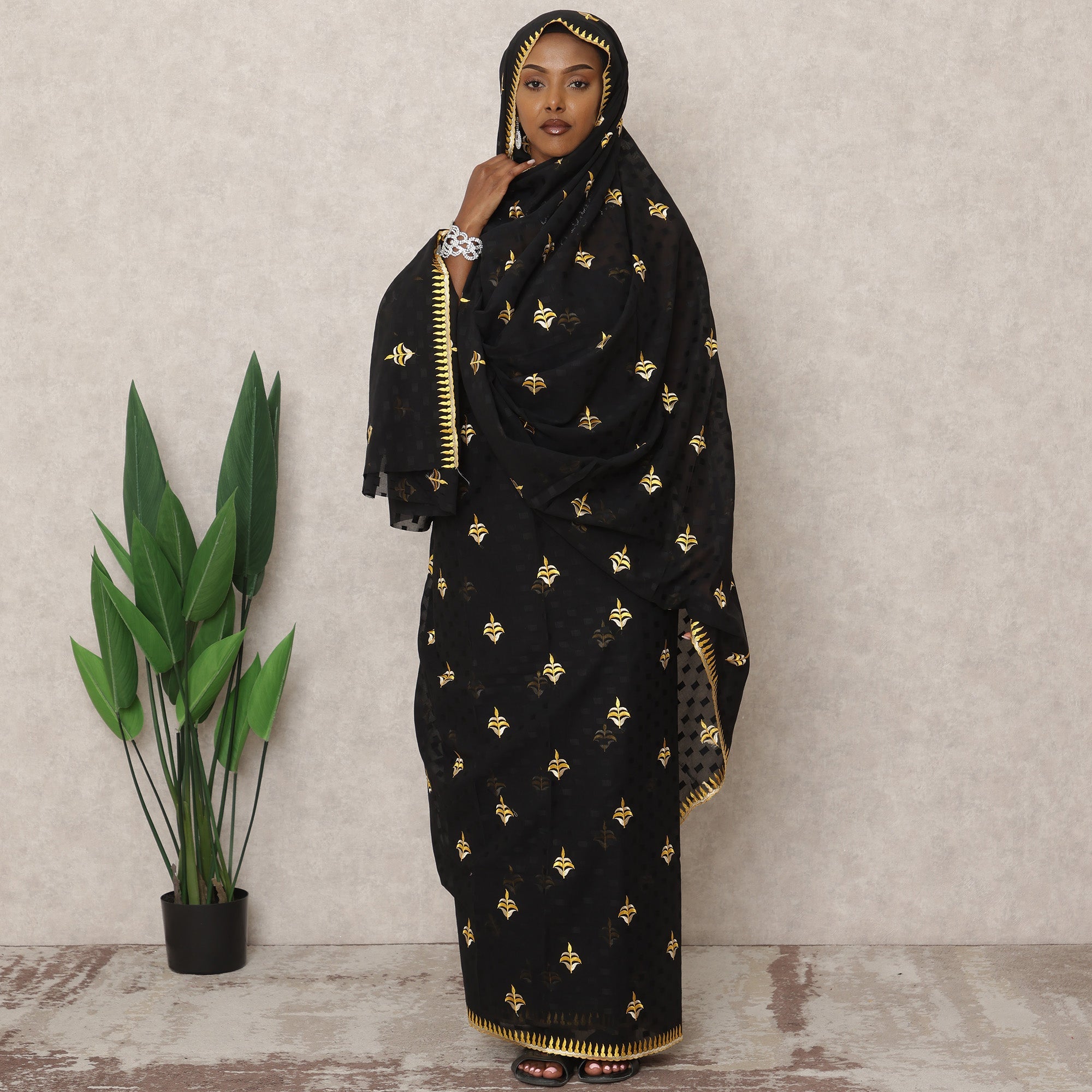 ثوب سوداني تقليدي أسود مطرز بزخارف ذهبية، قطعة بطول 4.5 متر، مصنوع من القطن الخالص، عرض 140 سم، صنع في الهند - D24458