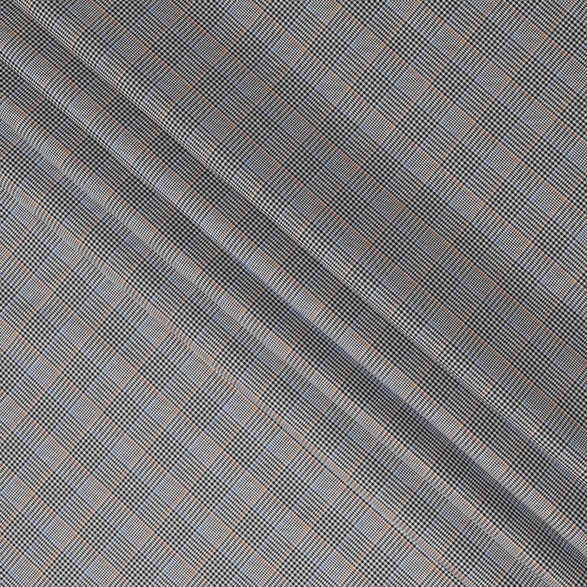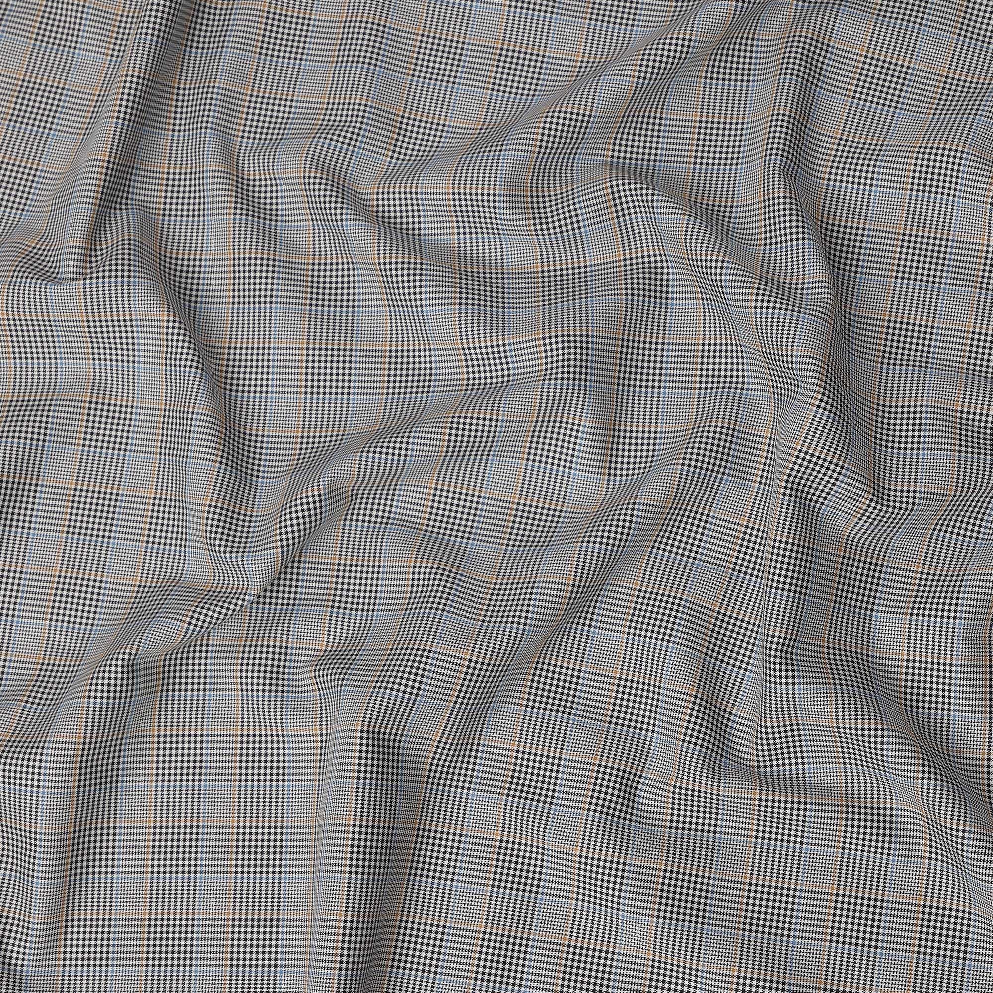 Black, White & Blue Glen Check Pattern 100% Cotton Shirting Fabric, Classic Multi-Color Checked Design, 150 cms Width, Origin India-D26621