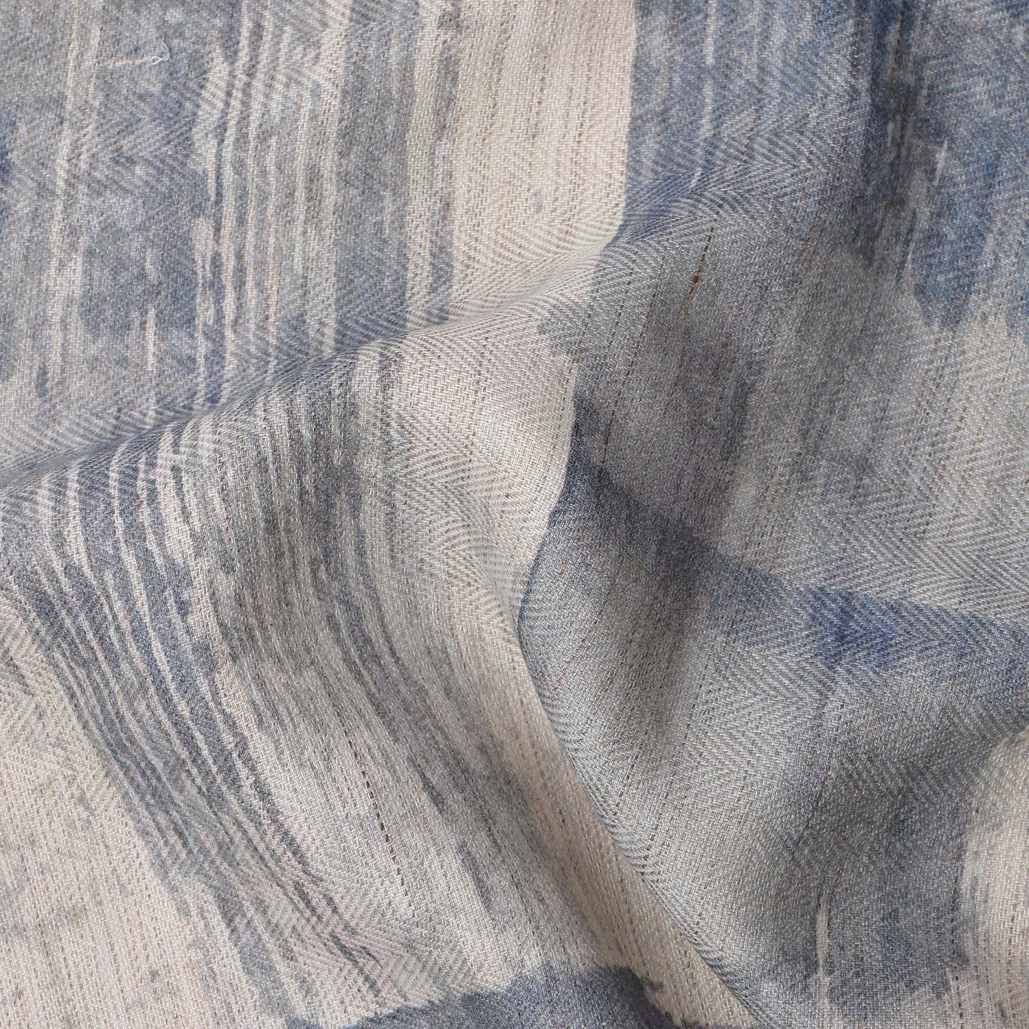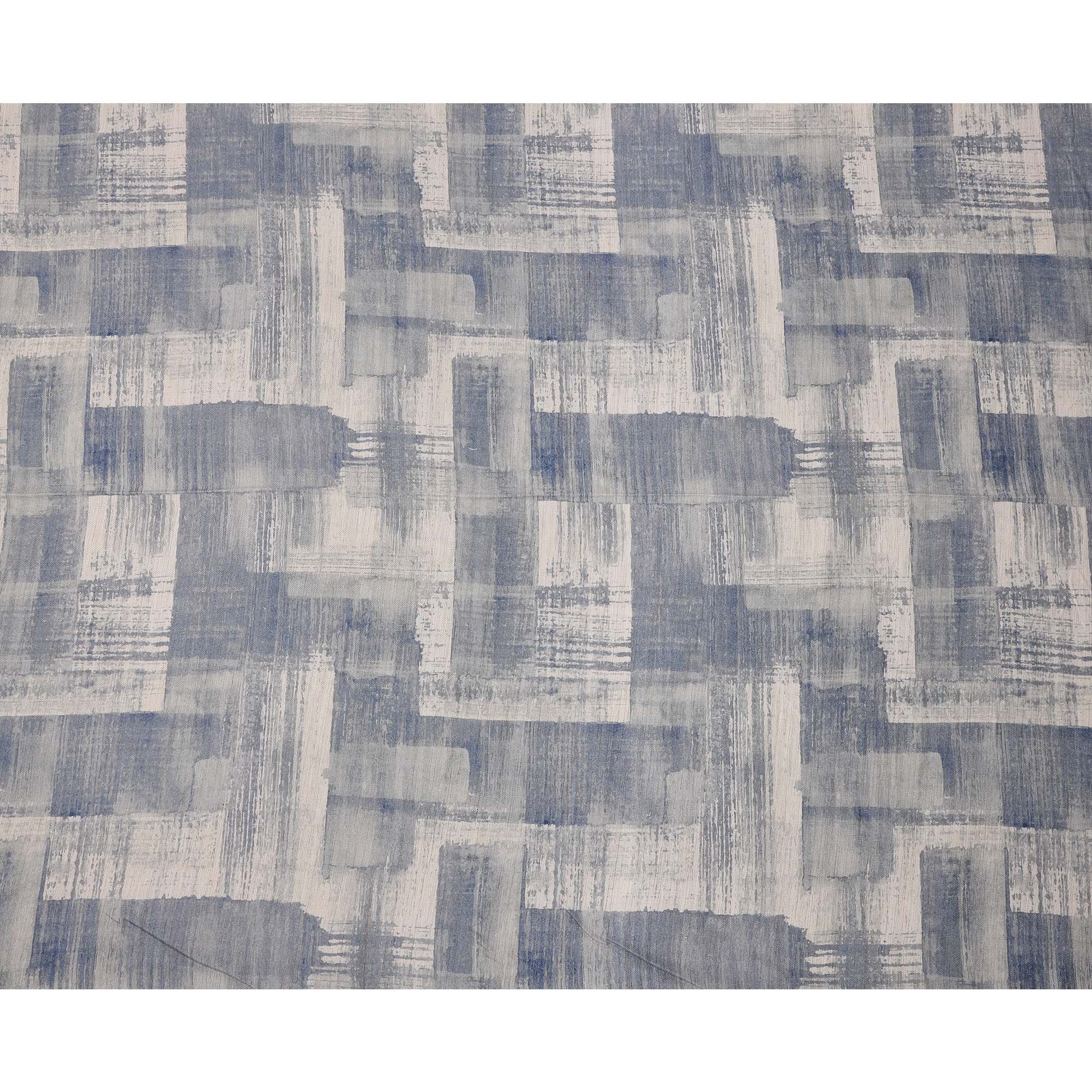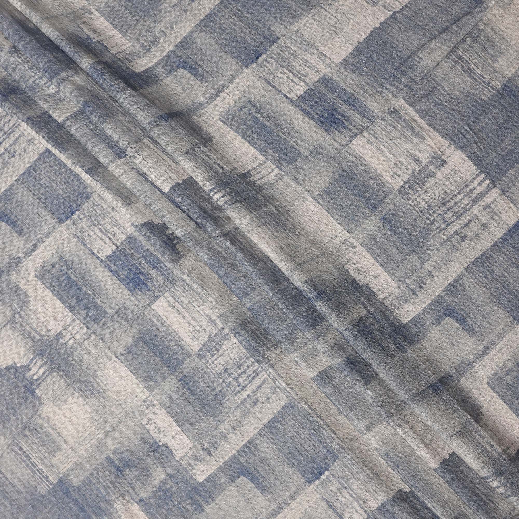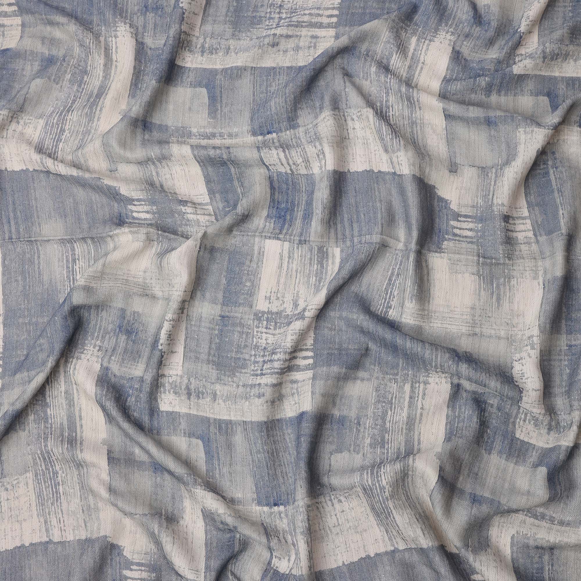 قماش فيسكوز كتان أزرق وأبيض مخلوط بتصميم تجريدي بضربات الفرشاة، عرض 110 سم، صنع في الهند - D25106