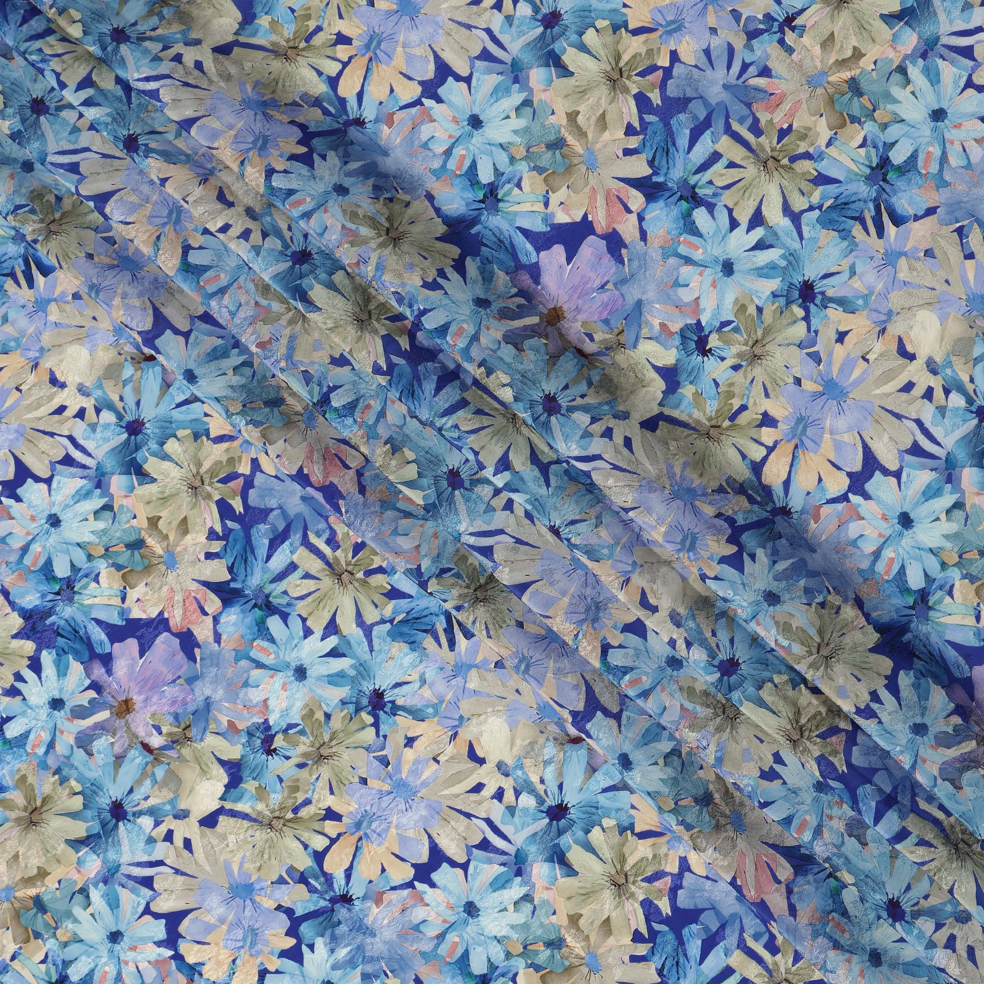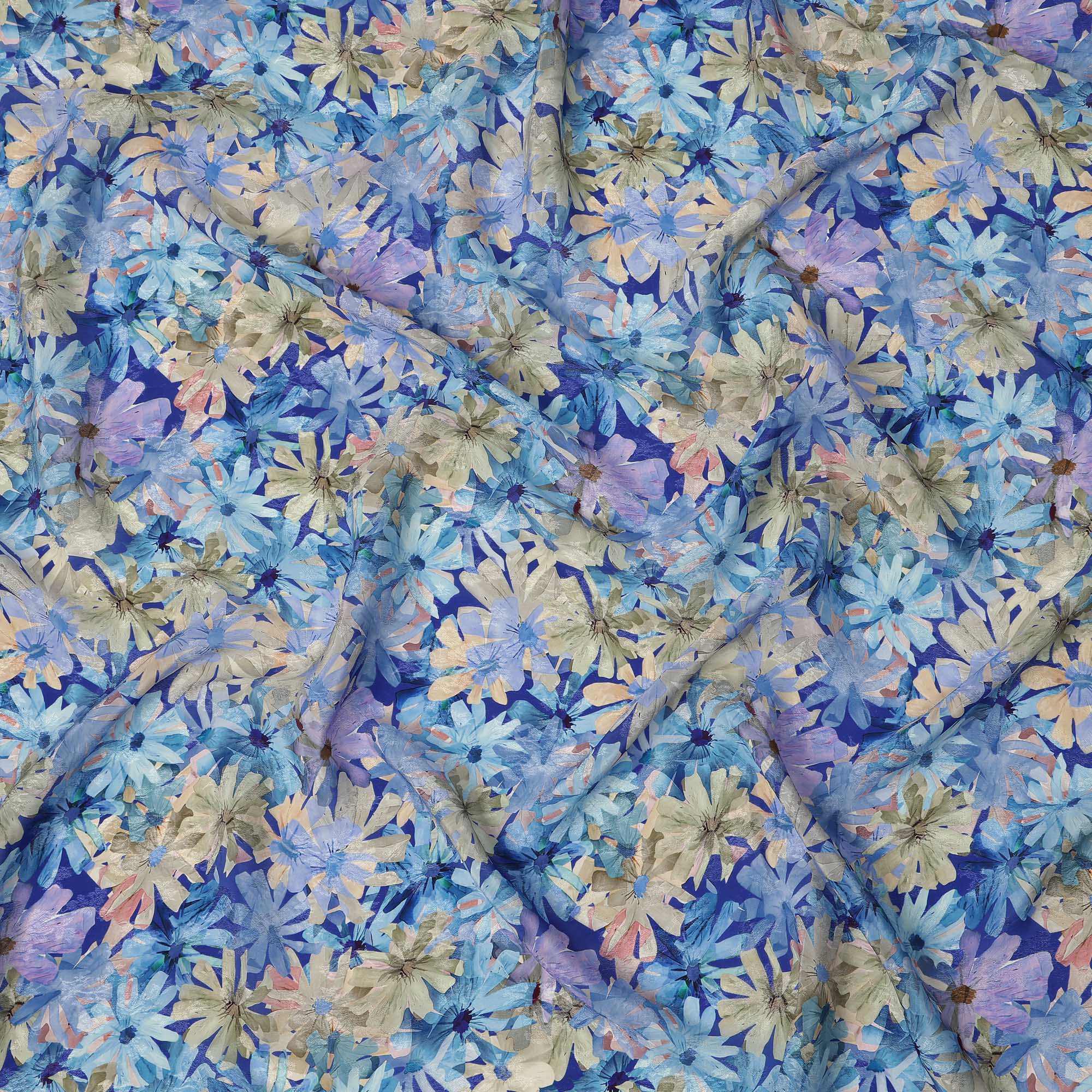 • Blue Floral Printed Viscose Fabric 110 Cms India Origin-D27557