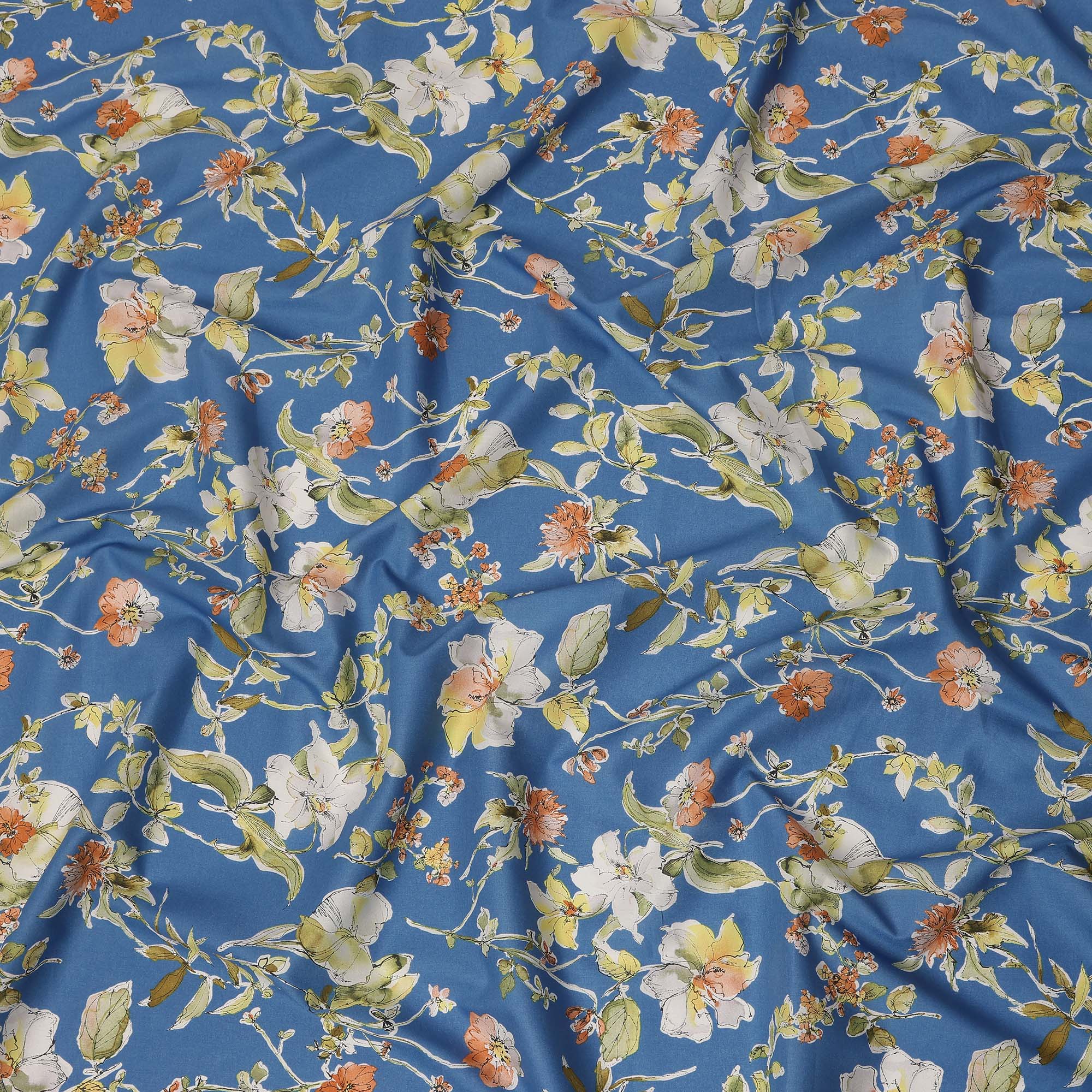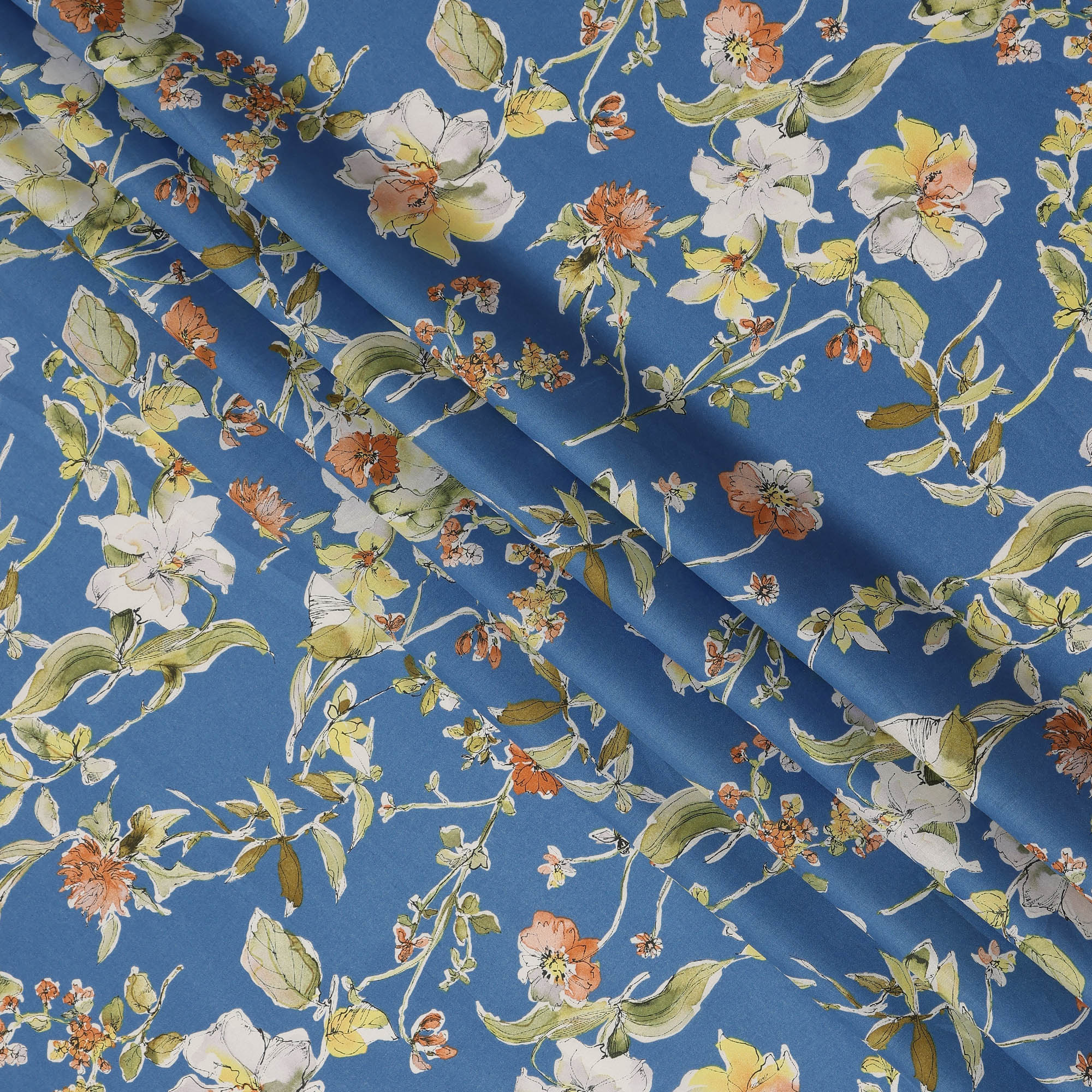 Blue Multicolor Botanical Floral Print Cotton Lawn Fabric – Artistic Garden Design, 110 cm Width, Made in Japan-D26843