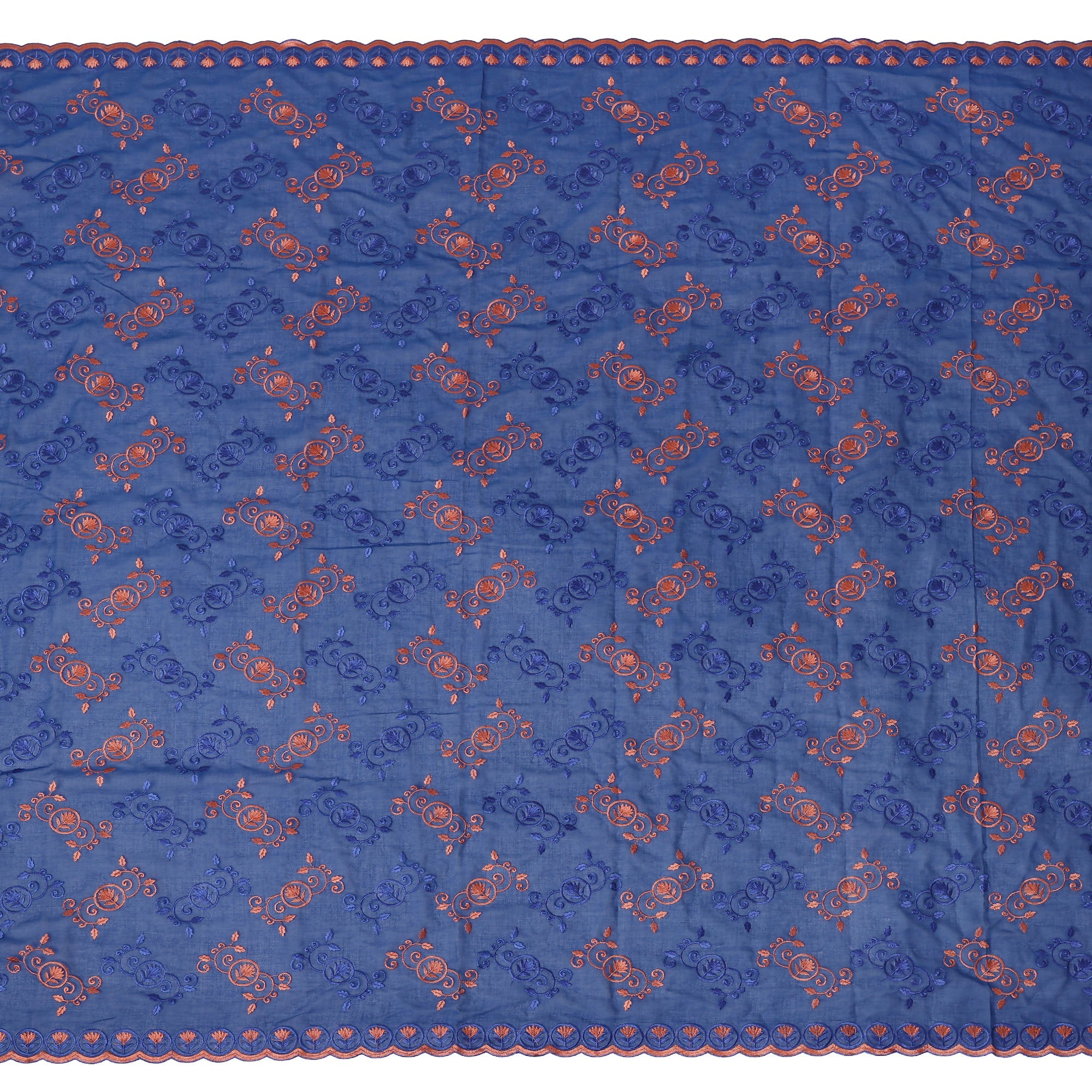 Immerse yourself in the elegance of this stunning blue Sudanese Thobe crafted from premium pure cotton voile, designed to reflect both cultural grace and contemporary sophistication while offering a feather-light feel perfect for all-day comfort; the rich blue base beautifully complements the intricate embroidered floral and vine motifs in striking copper and royal blue threads, creating a luxurious interplay of color that enhances its artistic appeal. Made in India with meticulous craftsmanship, this 4.5-meter fabric piece allows you to style your thobe with fluid drape and refined movement, making it ideal for festive gatherings, traditional ceremonies, or everyday elegance. The breathable cotton voile fabric, known for its soft texture and durability, ensures long-lasting comfort, while the detailed embroidery adds a premium handcrafted charm that elevates your ethnic wardrobe. Whether you are planning to shop online for a statement ensemble or buy online for personal styling, this thobe fabric promises versatility, cultural richness, and timeless artistry. Pair it with delicate accessories for an elevated festive look or keep it minimal for sophisticated daily wear, and maintain its beauty by gentle hand-washing or dry cleaning to preserve the fabric’s softness and embroidery finesse.