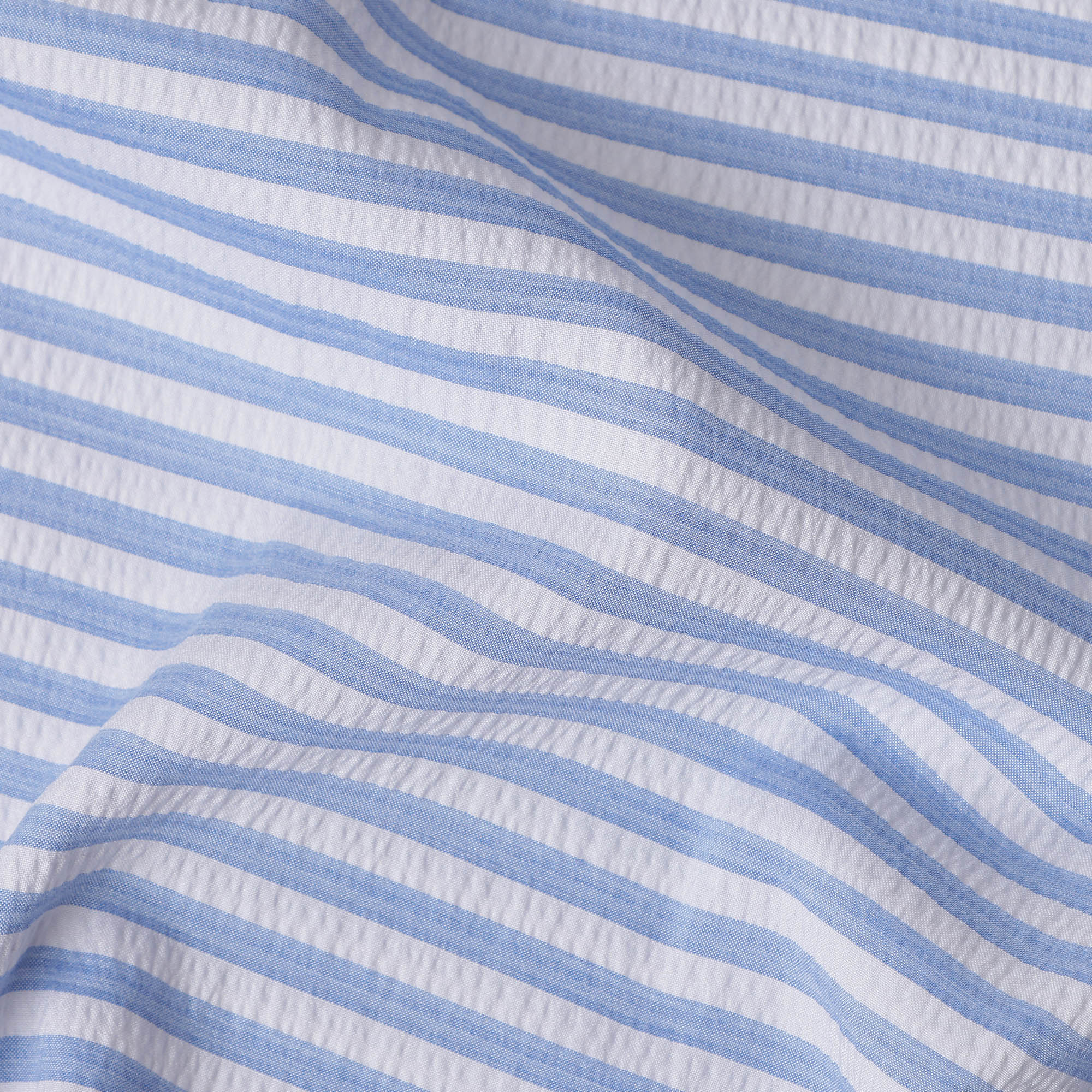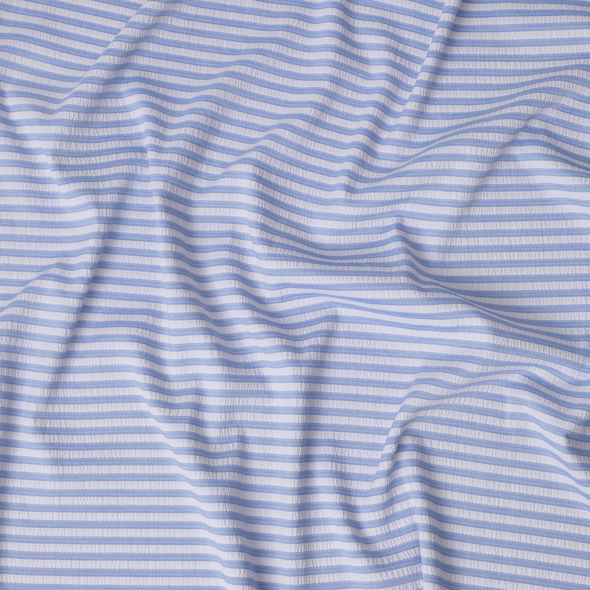 Blue & White Striped Cotton-Blended Shirting Fabric, Horizontal Woven Stripe Design, 150 cms Width, Origin China-D26597