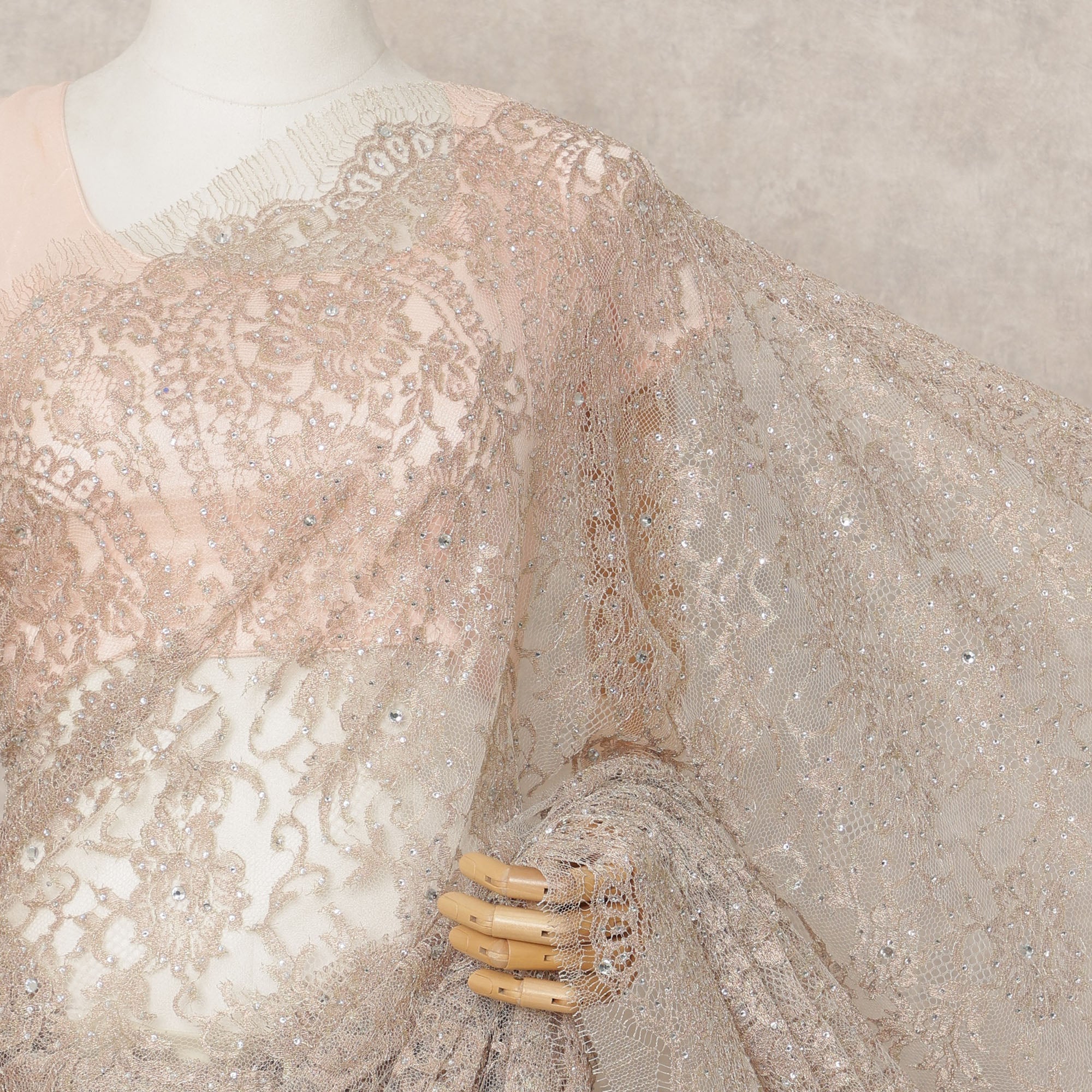 مصنوع من دانتيل شانتيلي الفرنسي الأصلي بلون وردي فاتح ناعم