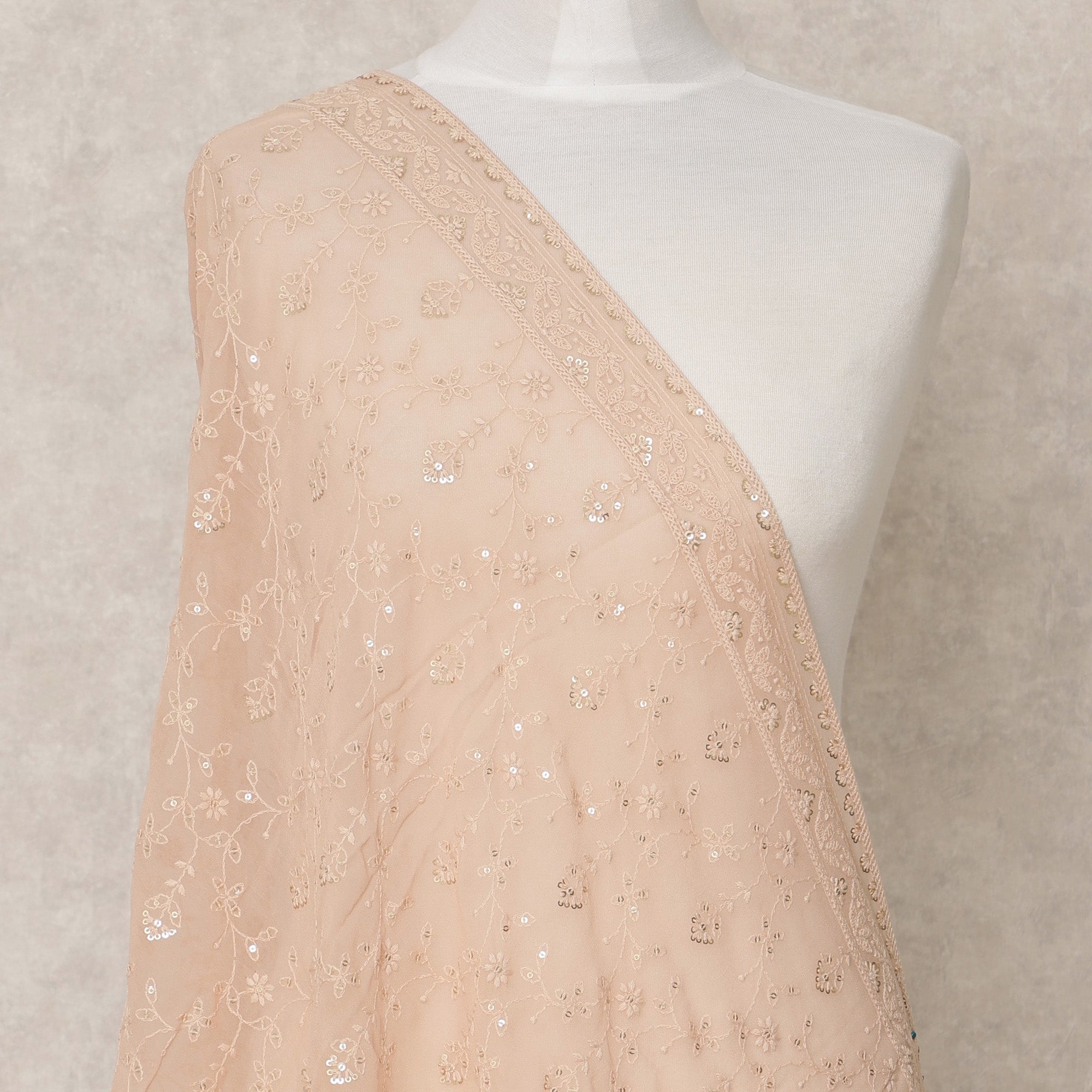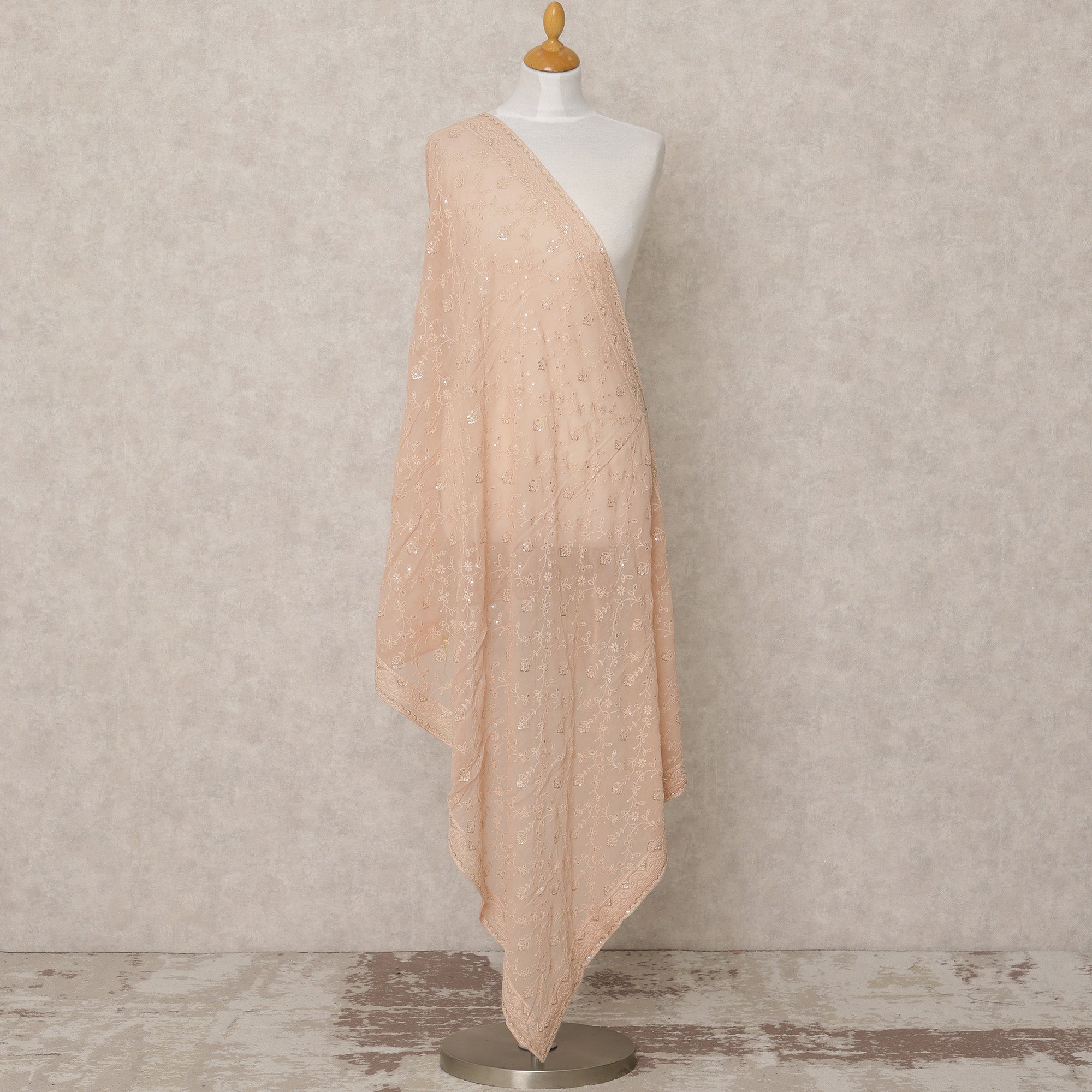 دوباتا جورجيت صناعي بلون الخوخ الوردي مع تطريز بالترتر الزهري، 210 × 80 سم، صنع في الهند - D24102