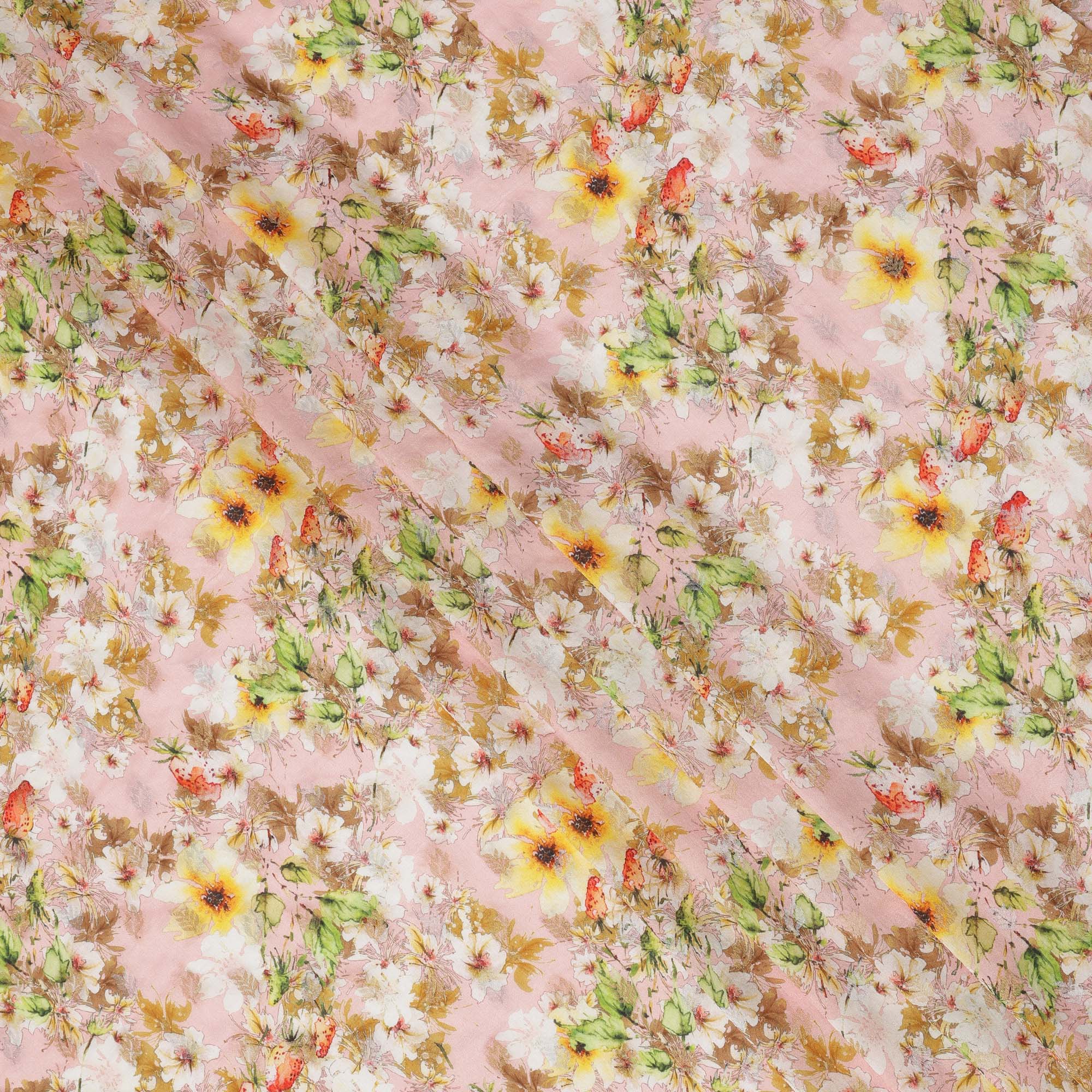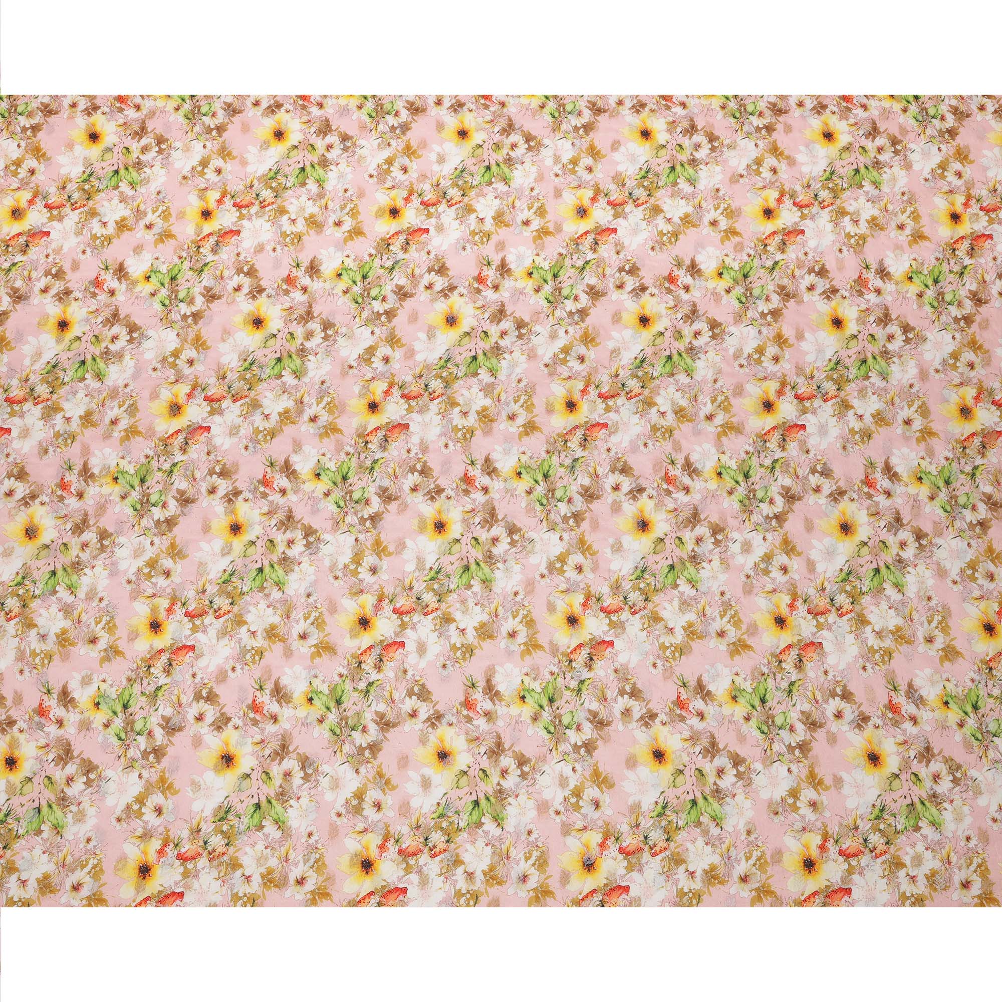 قماش كريب صناعي بطبعة زهور وردية وردية وصفراء، تصميم رقمي ناعم، عرض 110 سم، صنع في الهند - D23760
