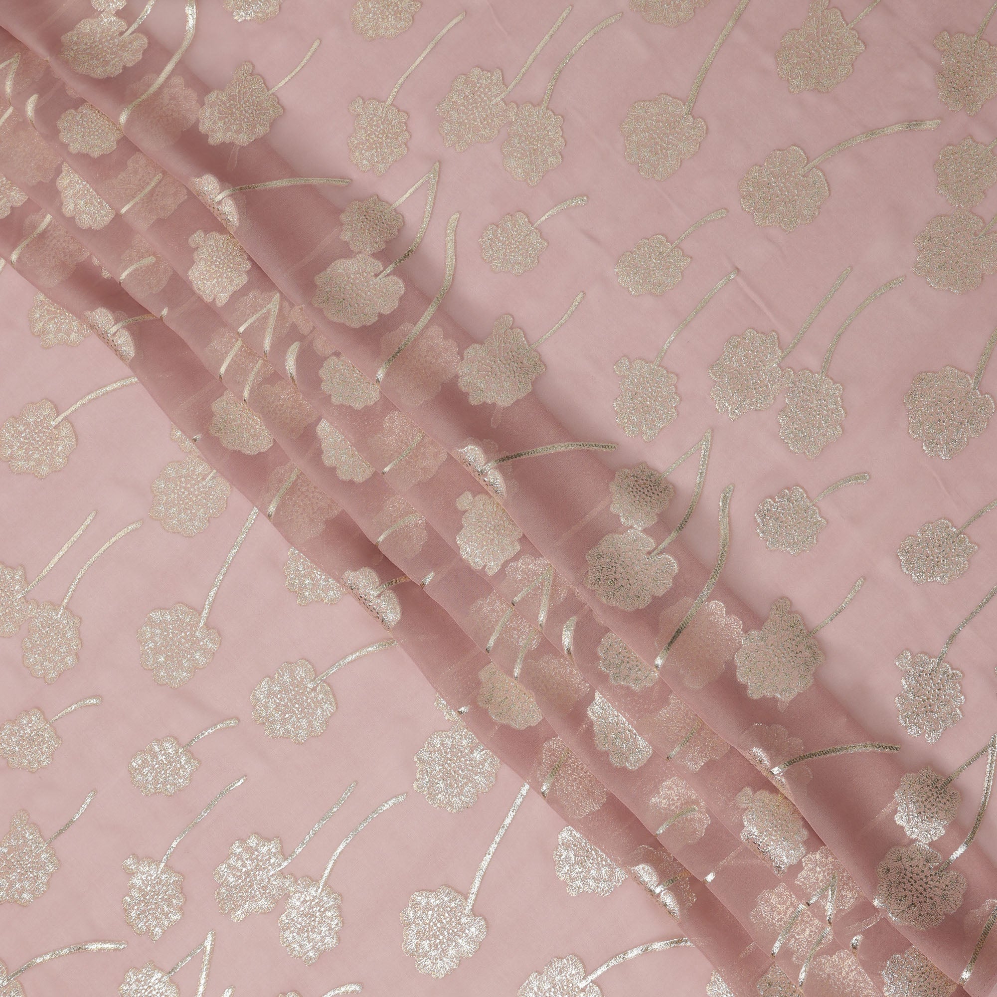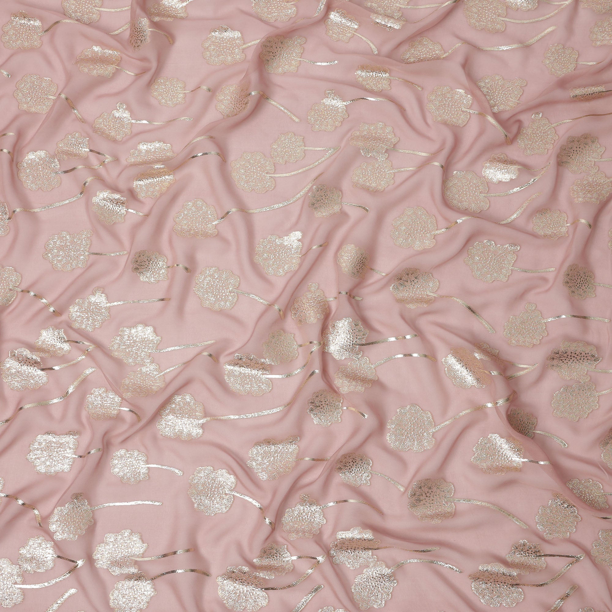 قماش شيفون حريري بنقشة زهور معدنية وردية وردية مع تفاصيل لوريكس ذهبية، 110 سم، كوريا الجنوبية - D23818