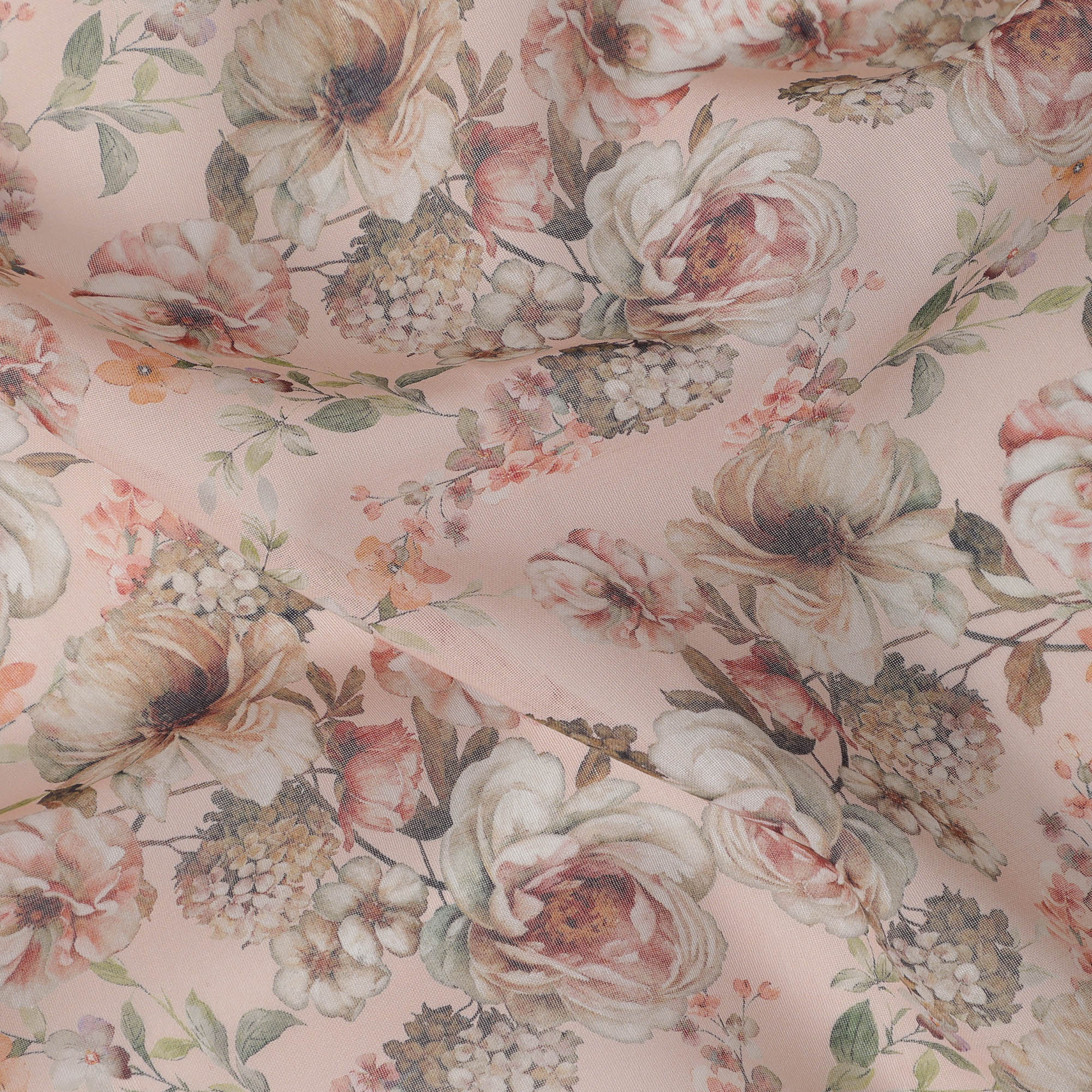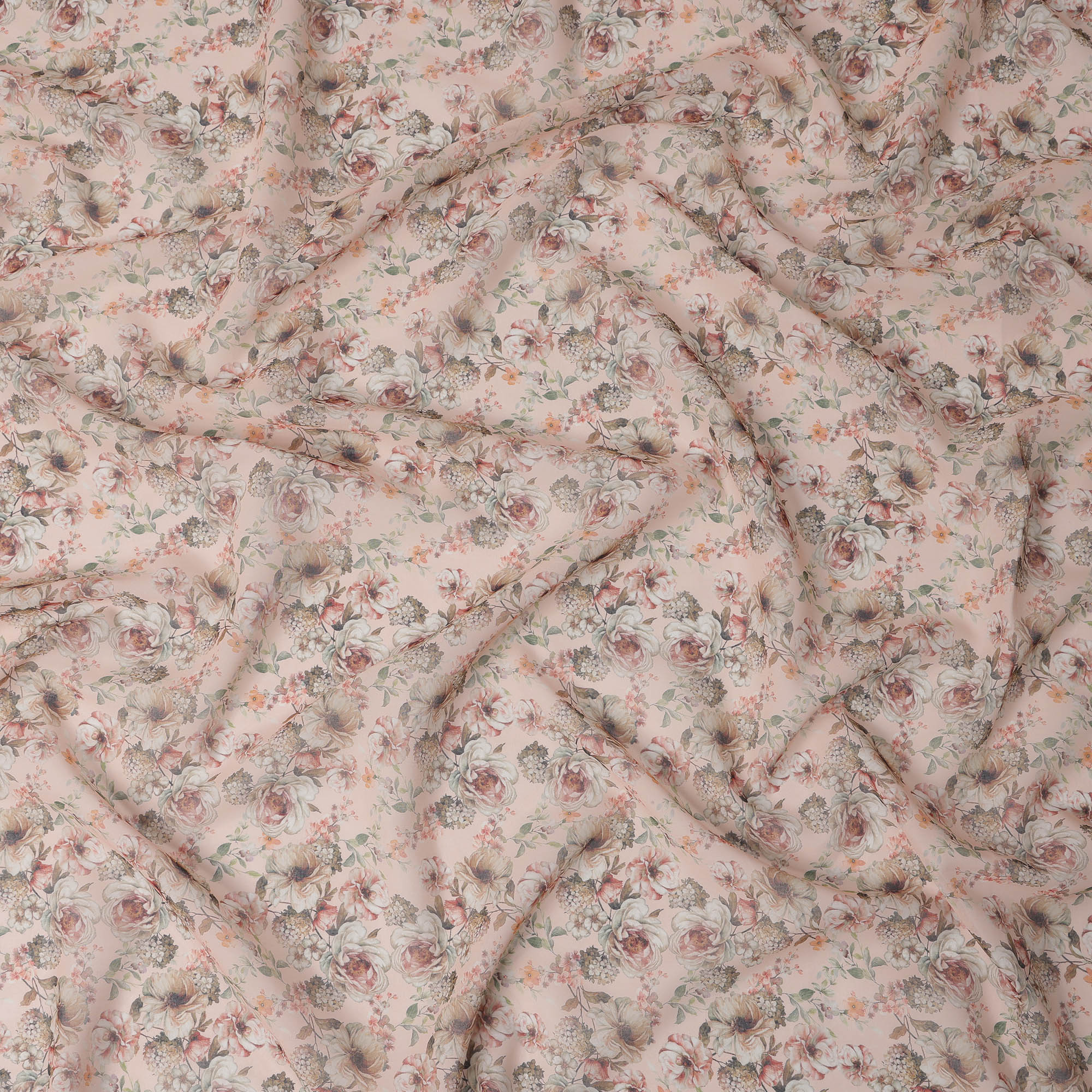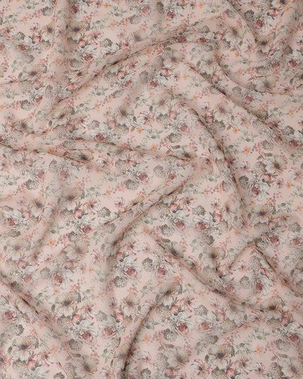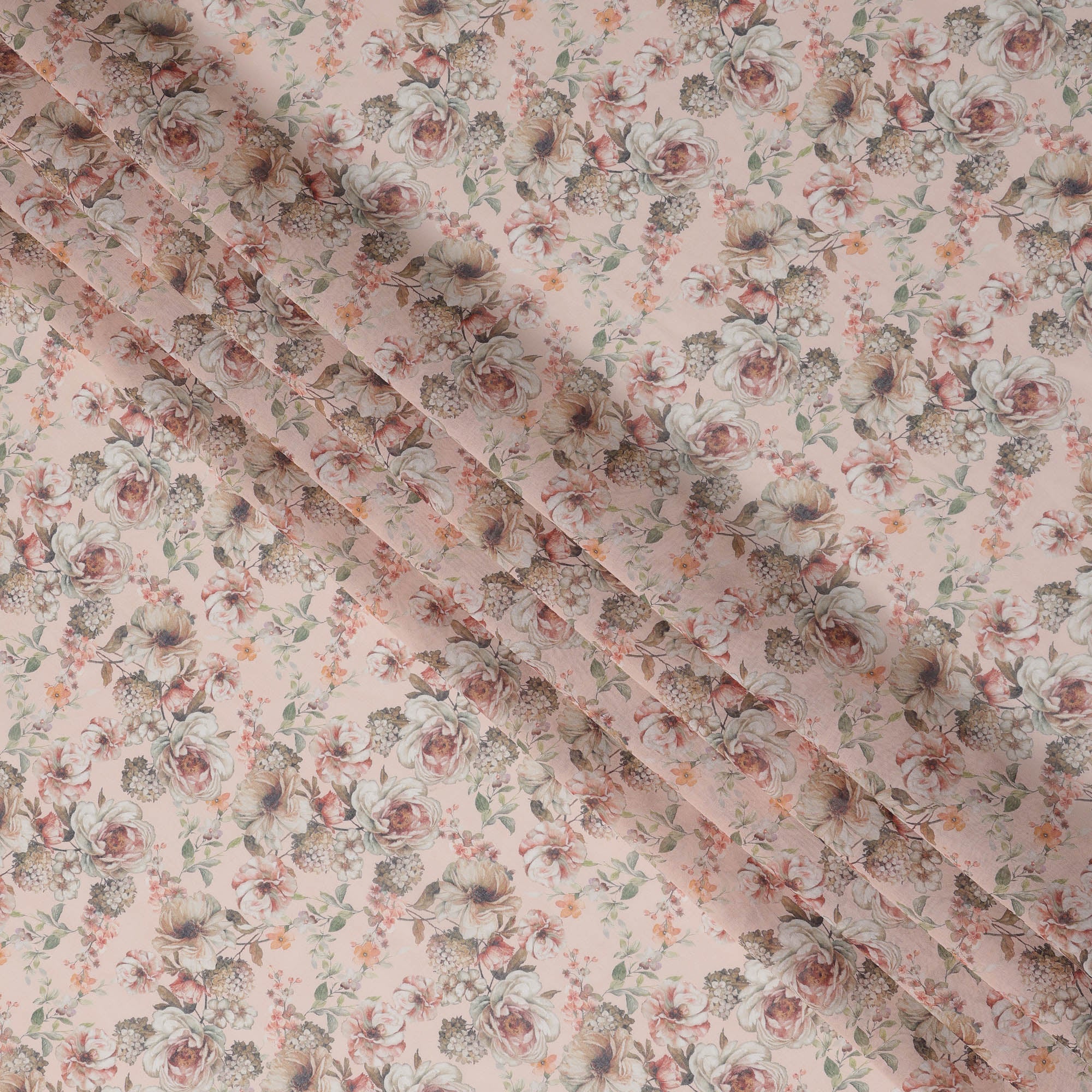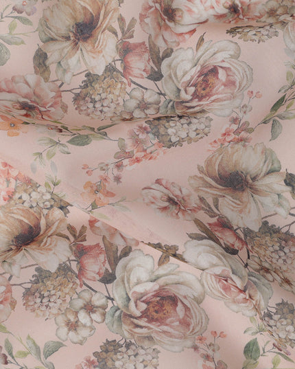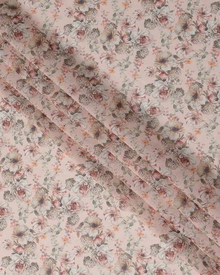 قماش قطني فوال بطبعة باقة زهور عتيقة باللون الوردي الخوخي، عرض 140 سم، صنع في الهند - D23041