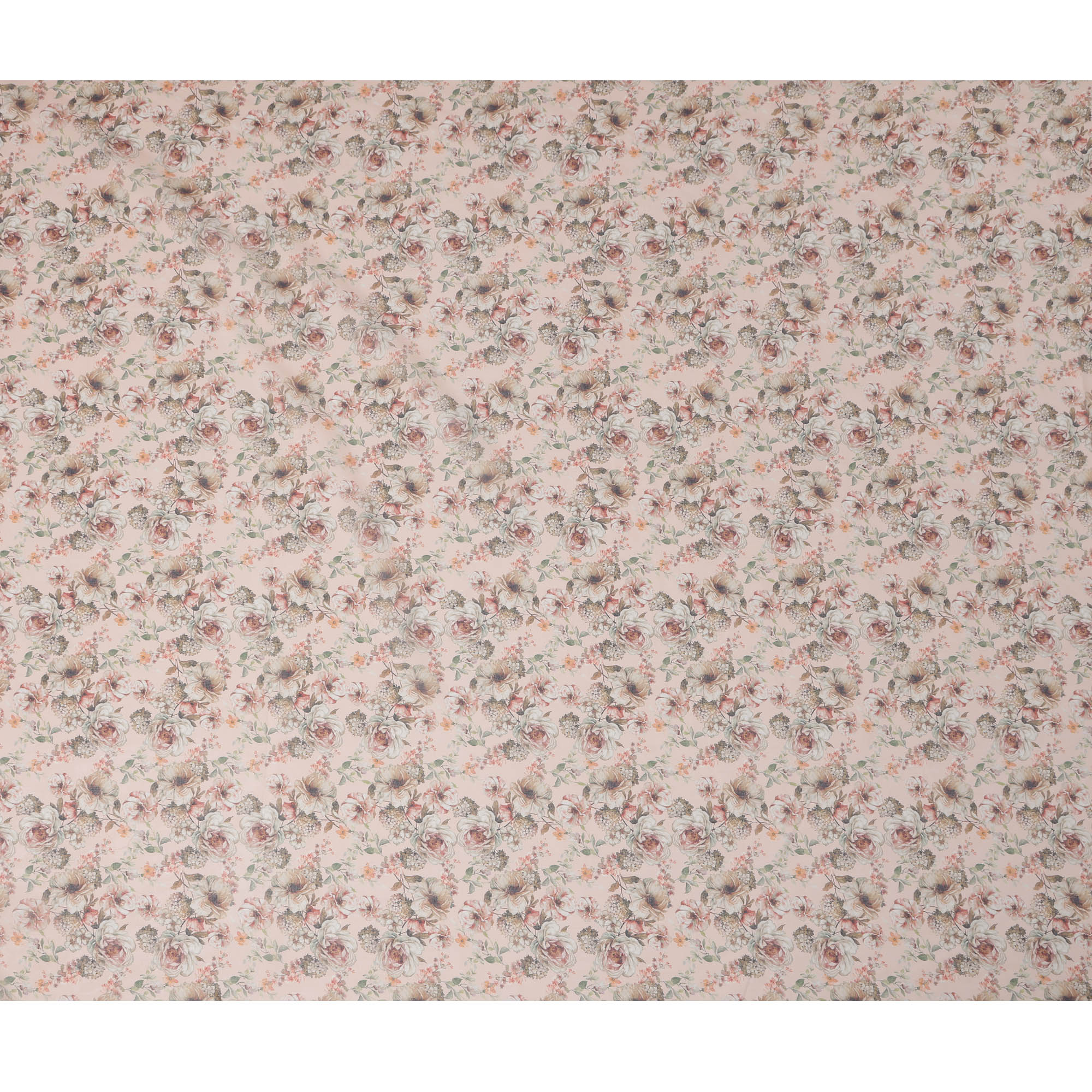 قماش فوال قطني وردي فاتح مع طباعة باقة زهور عتيقة تغطيه بالكامل