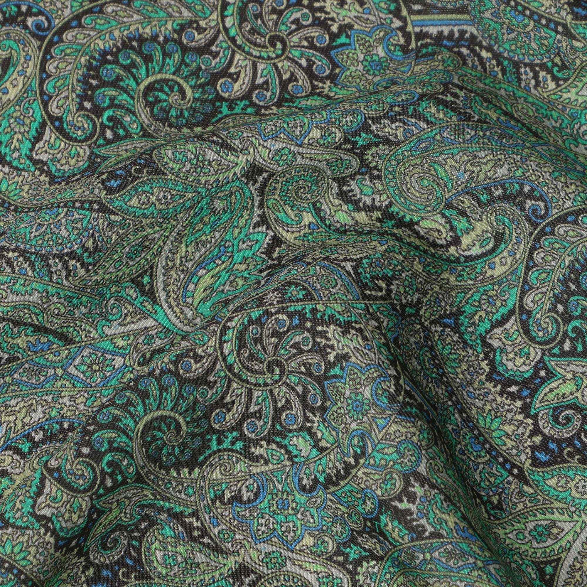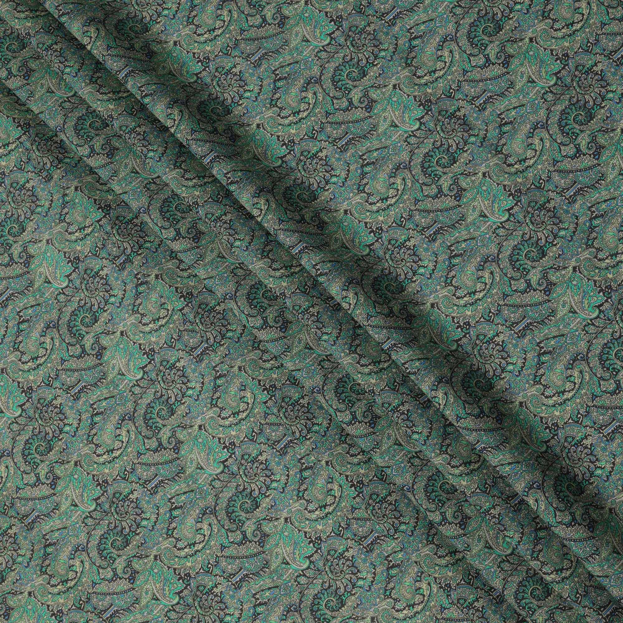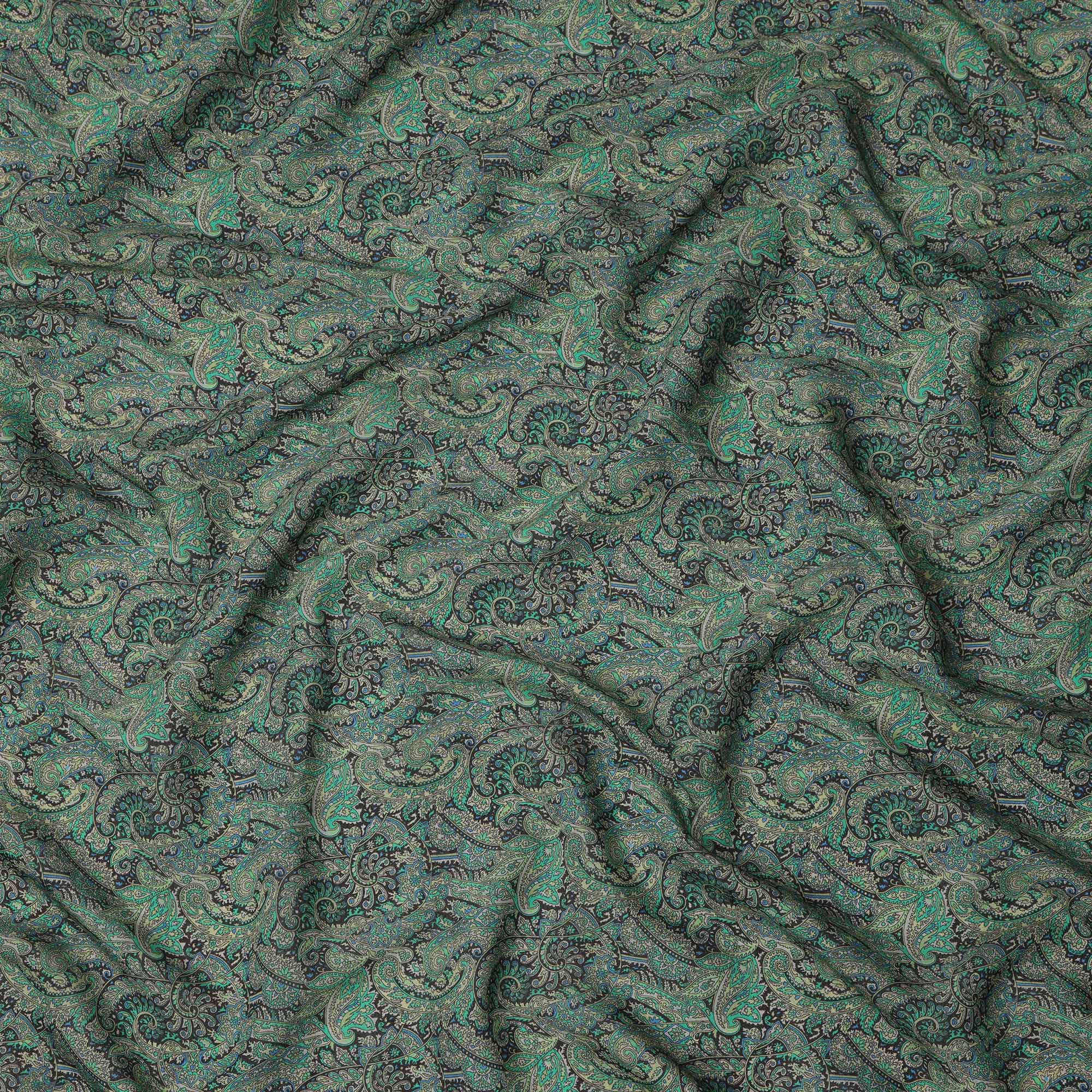 قماش كريب فيسكوز متعدد الألوان باللون الأخضر الزجاجي والأسود هو مزيج آسر من التقاليد والملمس، مزين بنقوش بيزلي مفصلة بدقة... اقرأ أكثر اقرأ أكثر