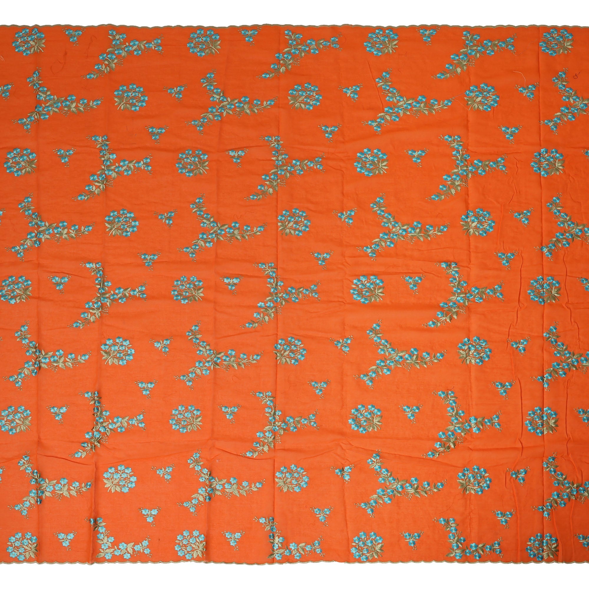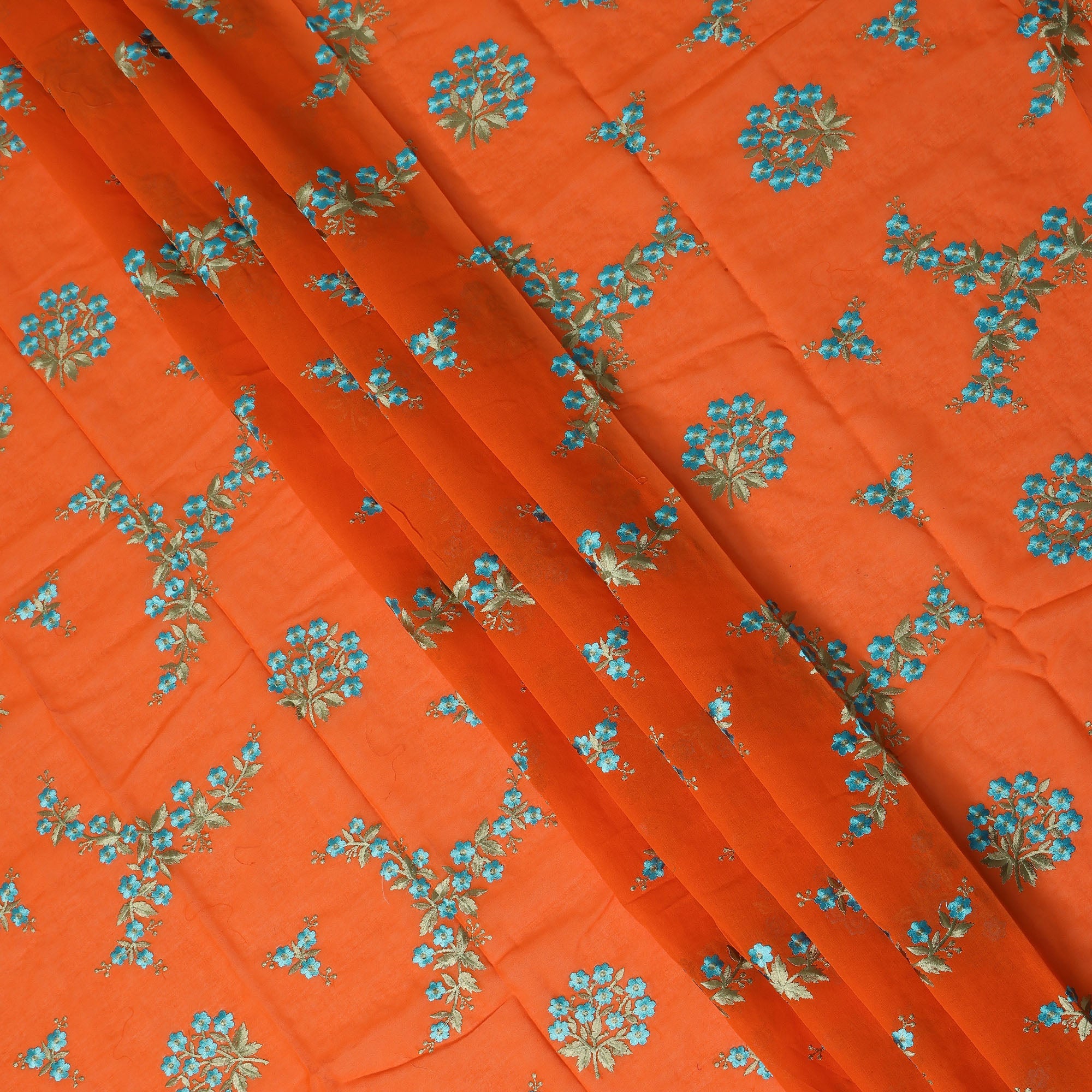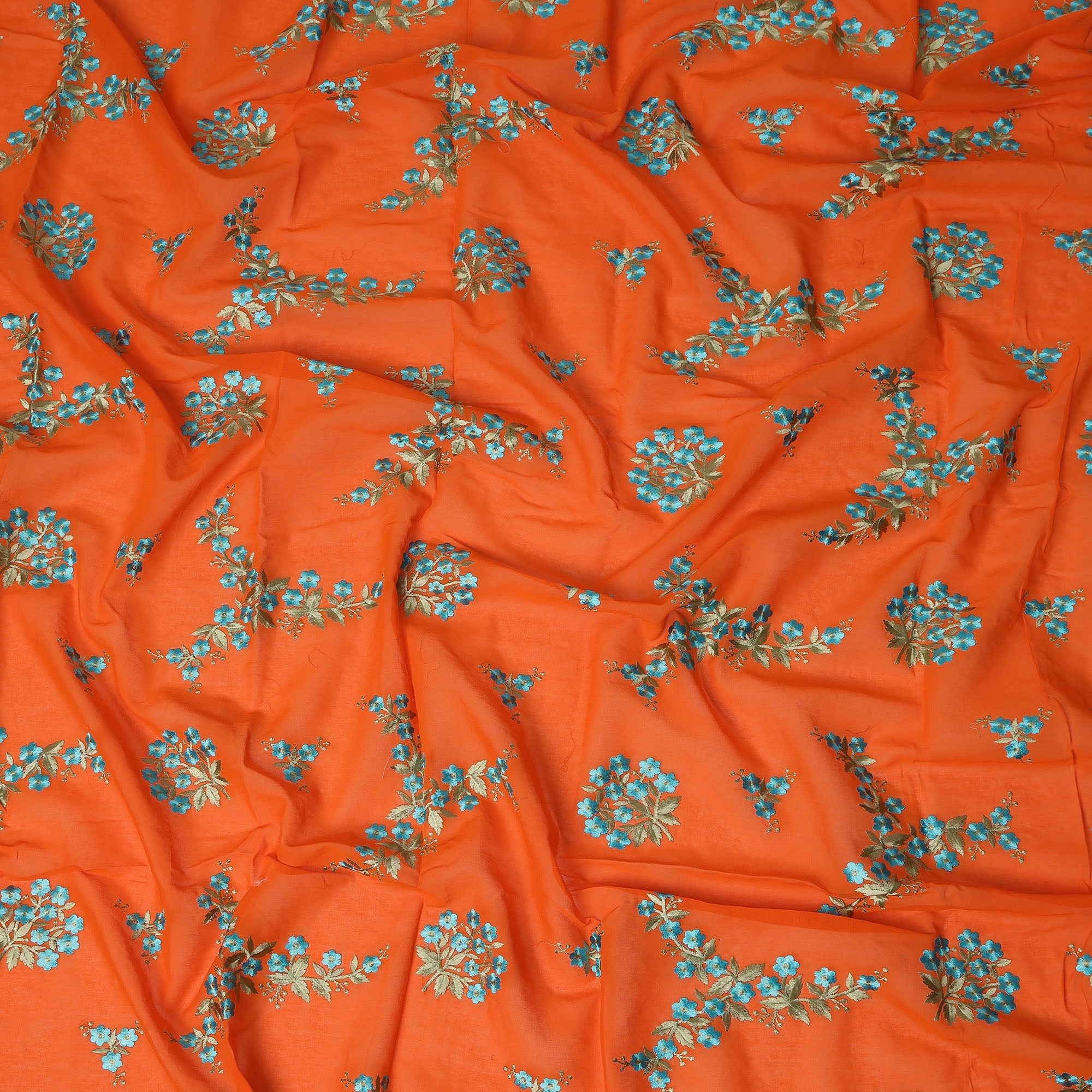 Bright Orange Traditional Sudanese Thobe Fabric Pure Cotton Voile 4.5 Meters Piece Width 140 Cms Soft Breathable Ethnic Wear Material with Elegant Blue Floral Embroidery Made in India-D27600