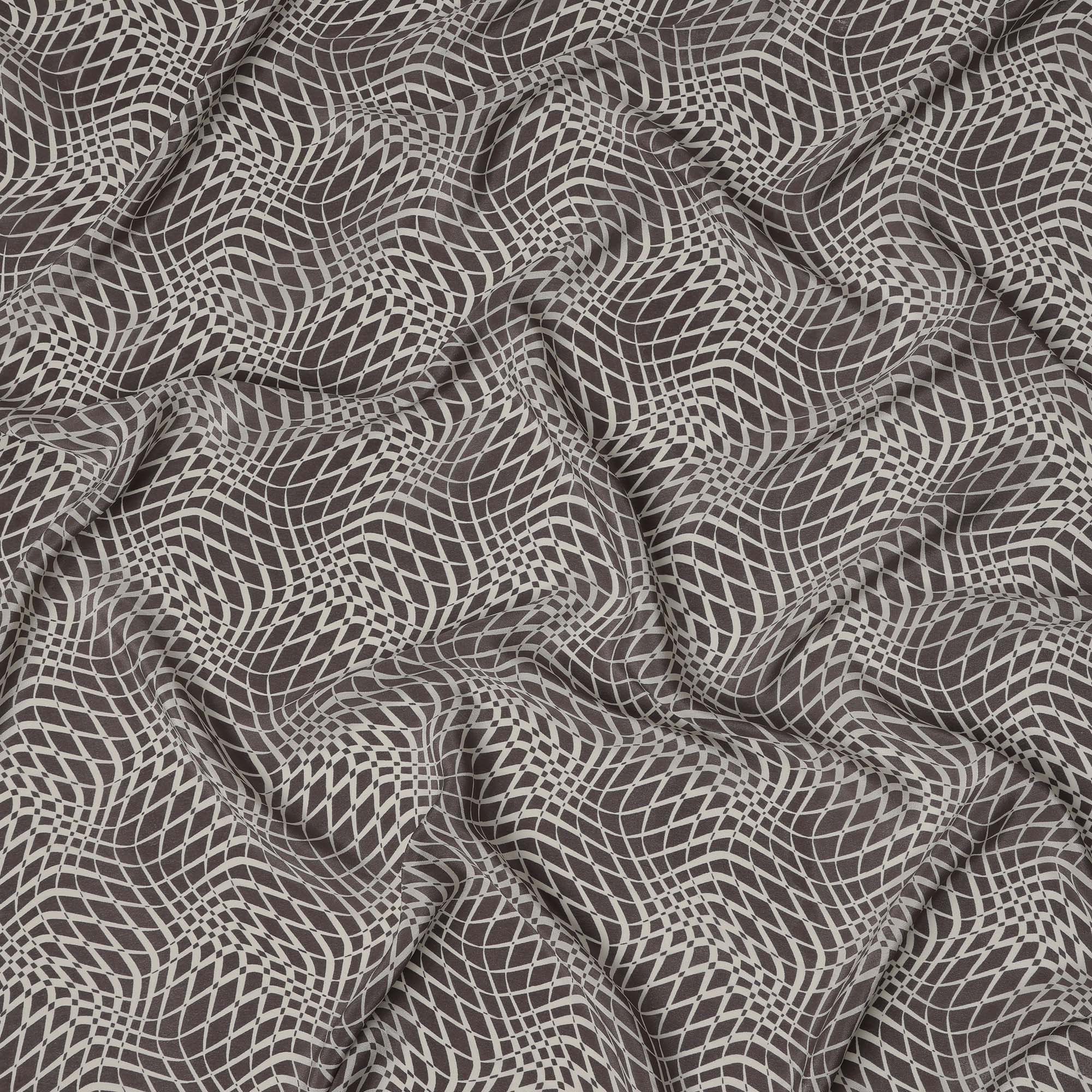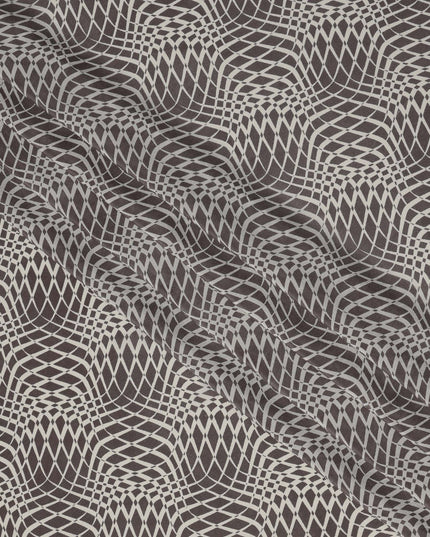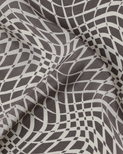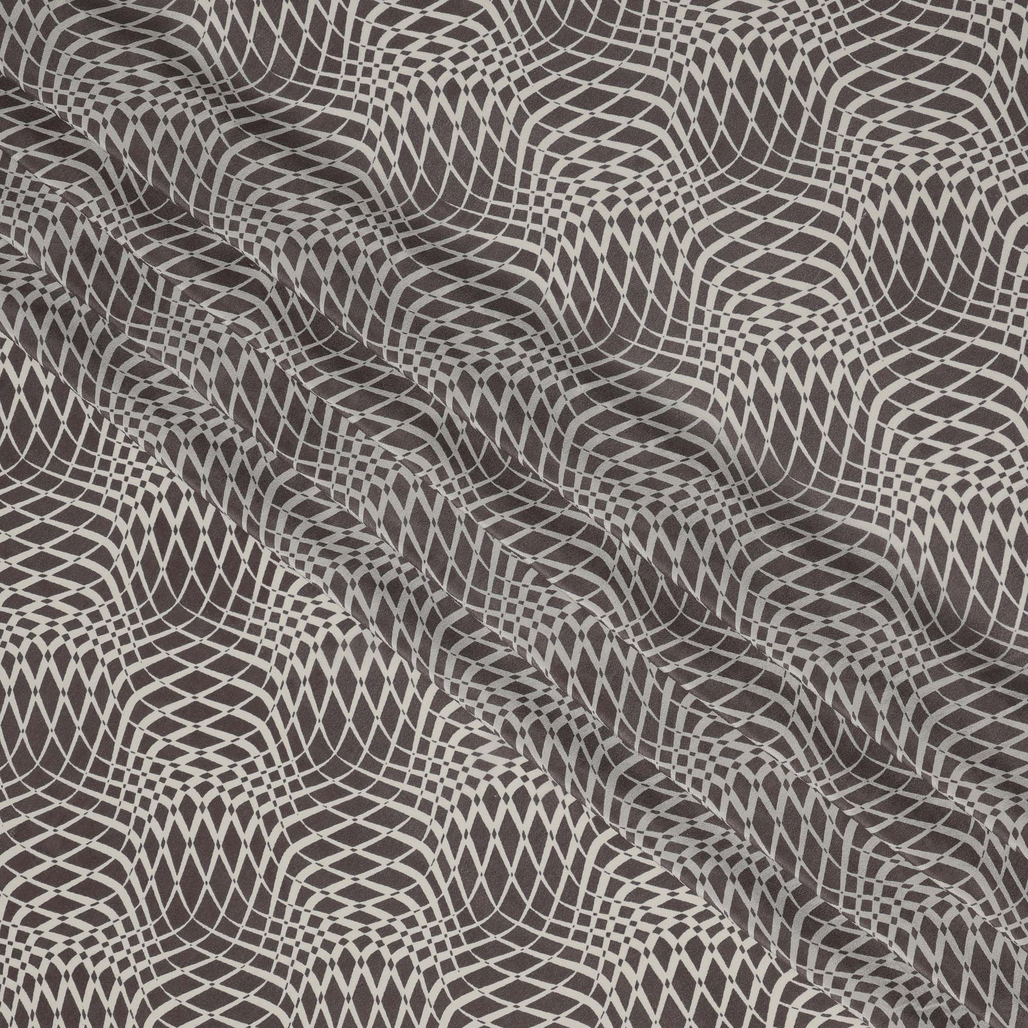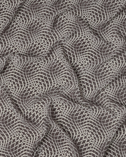قماش كريب حريري خالص بطبعة هندسية باللونين البني والرمادي، عرض 110 سم، صنع في الهند - D23177