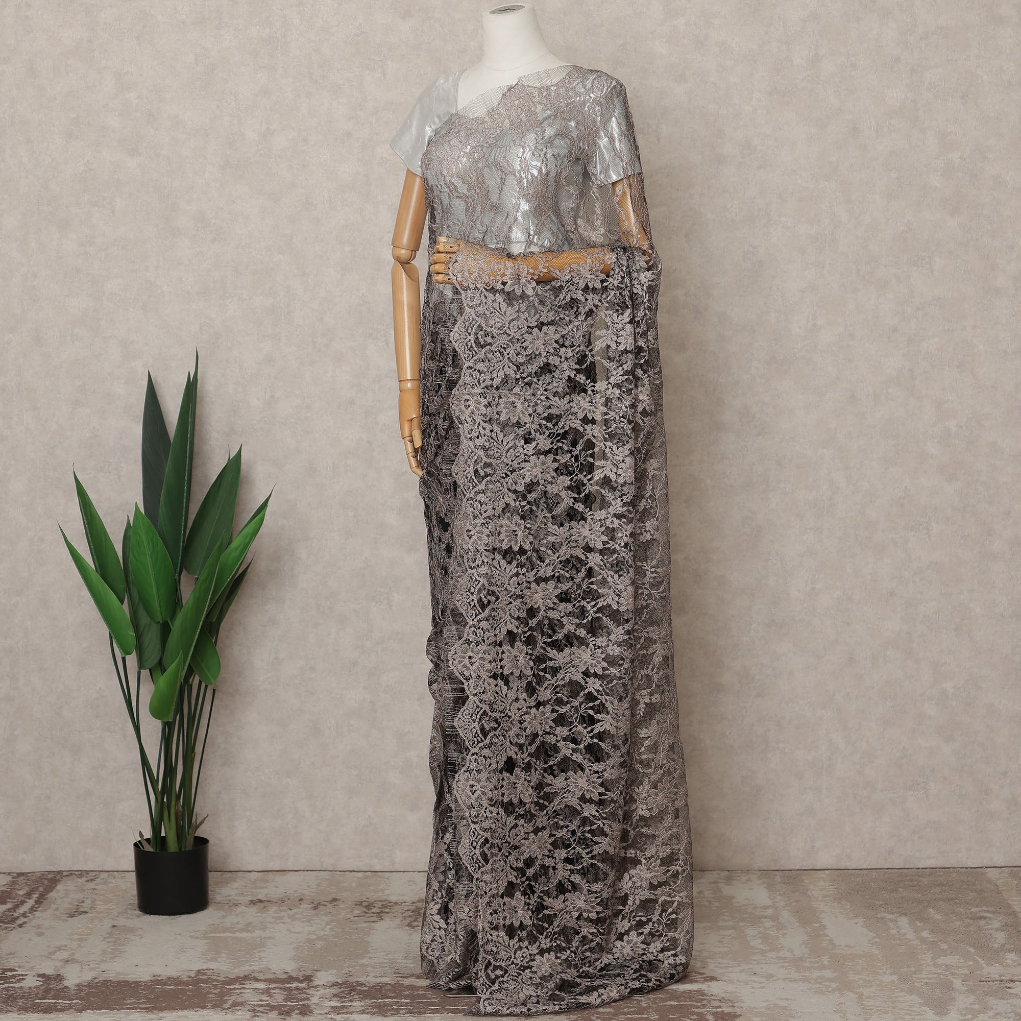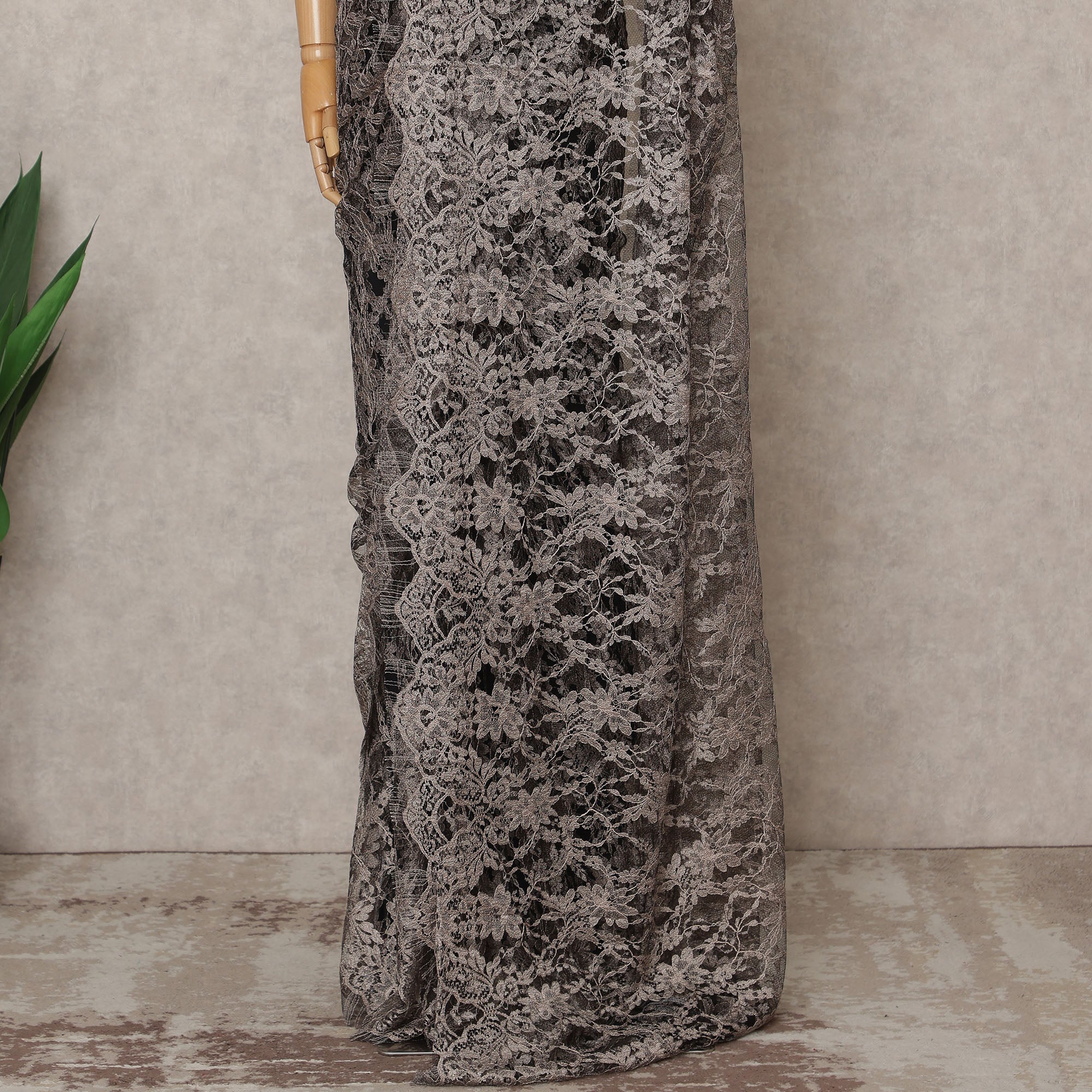 Premium French Chantilly lace in elegant grey and silver dual tone
