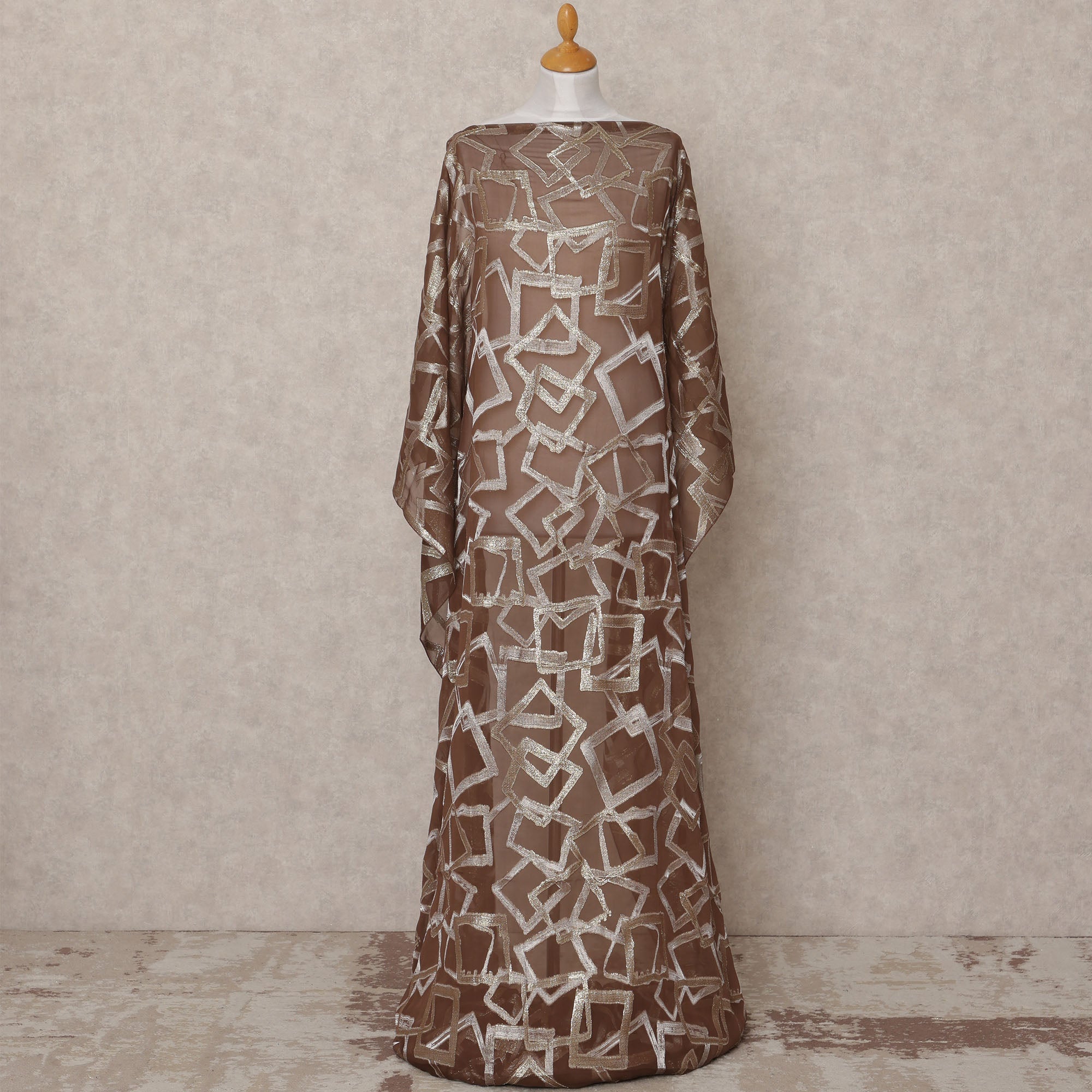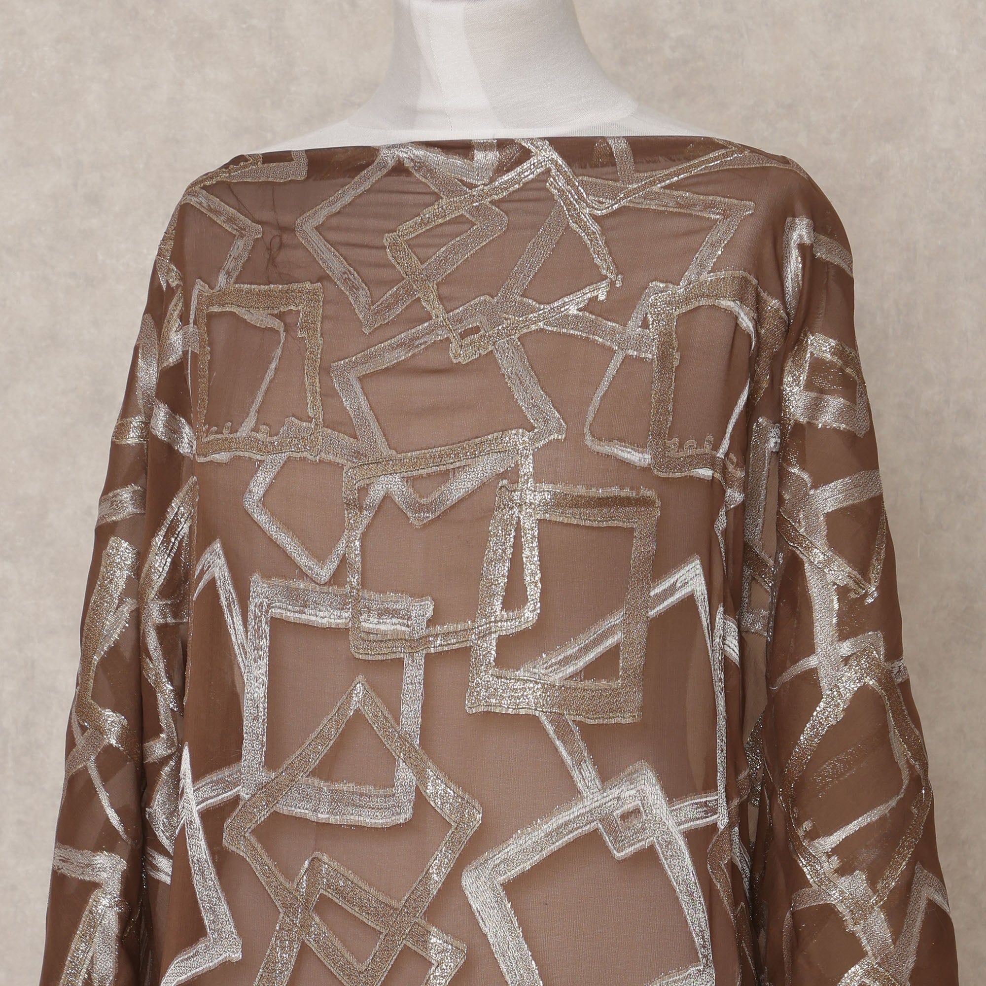 قماش ديراك من الحرير الصومالي شيفون لوركس معدني هندسي بني - 3.5 متر، عرض 140 سم، صنع في كوريا الجنوبية - D24768