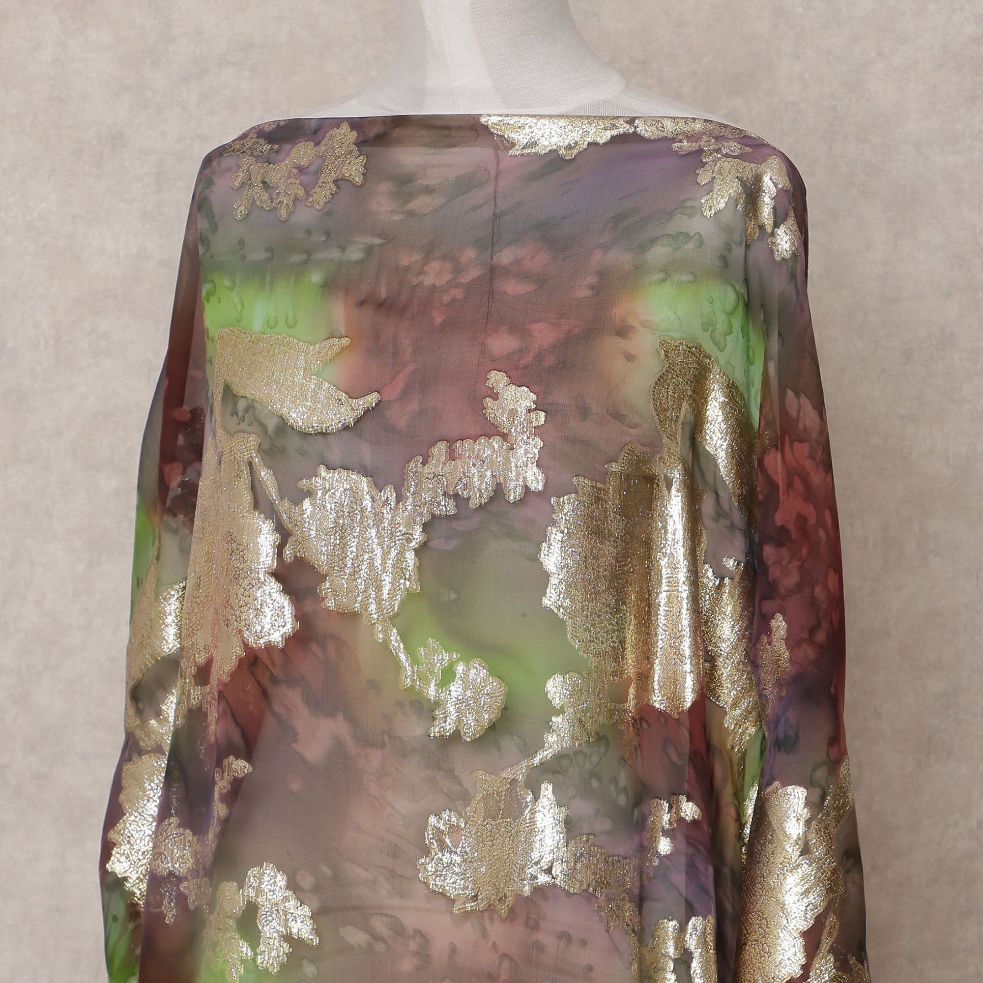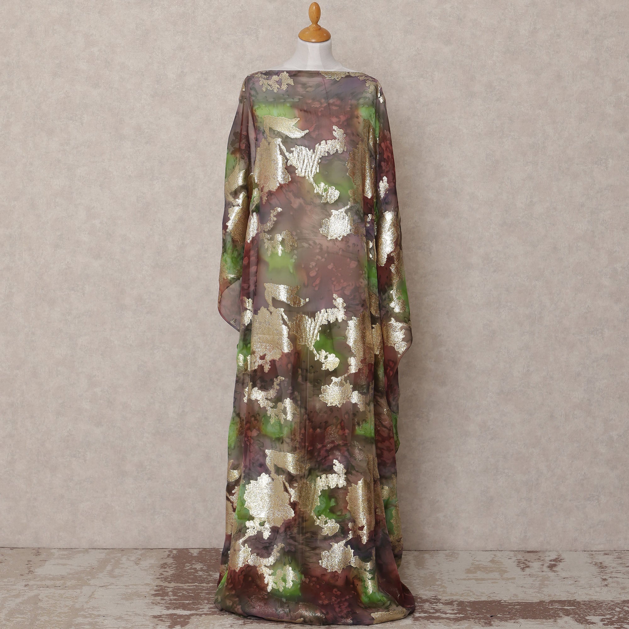 قماش ديراك شيفون حريري صومالي تقليدي باللون البني والأخضر مع لوركس معدني، 3.5 متر، عرض 140 سم، صنع في كوريا الجنوبية - D25050