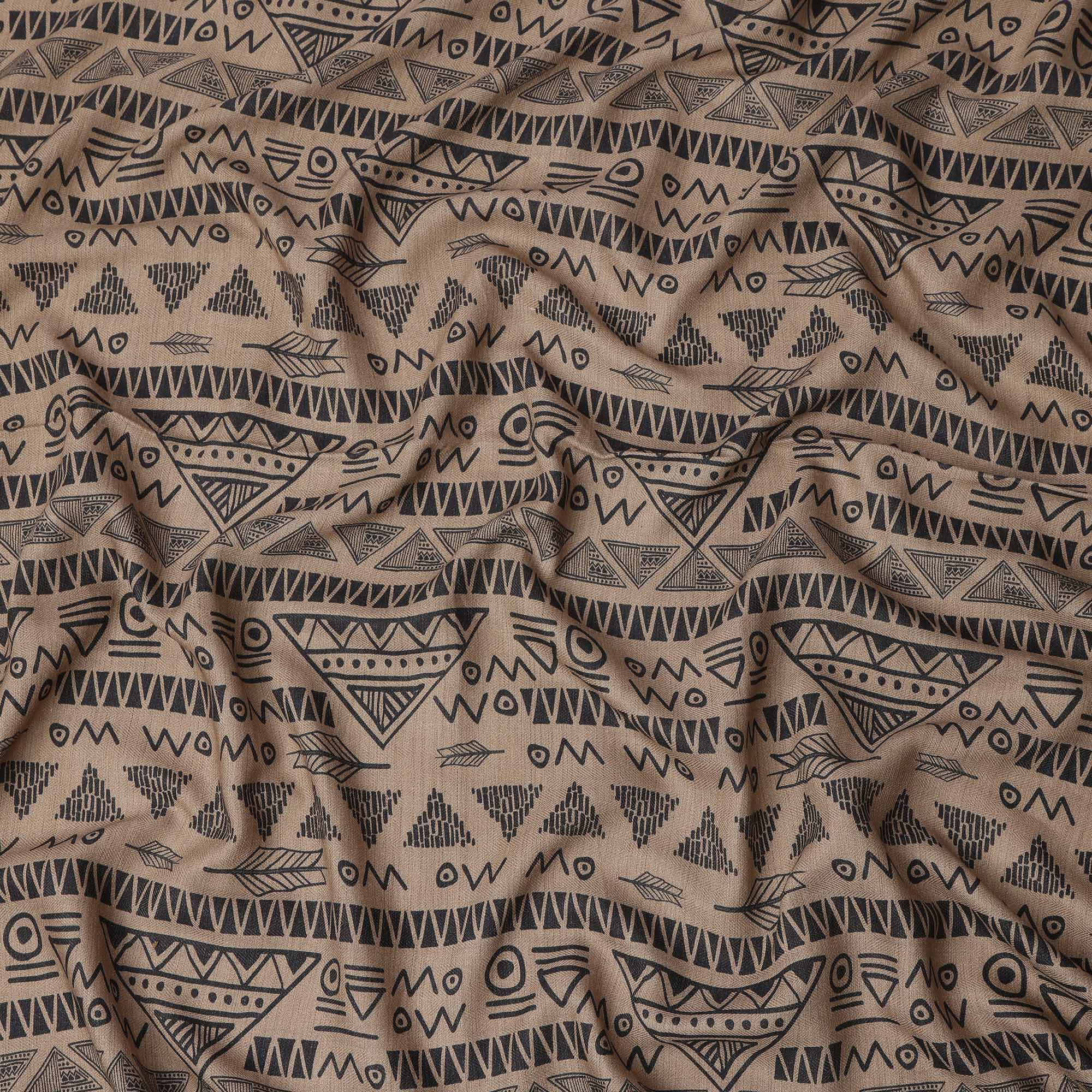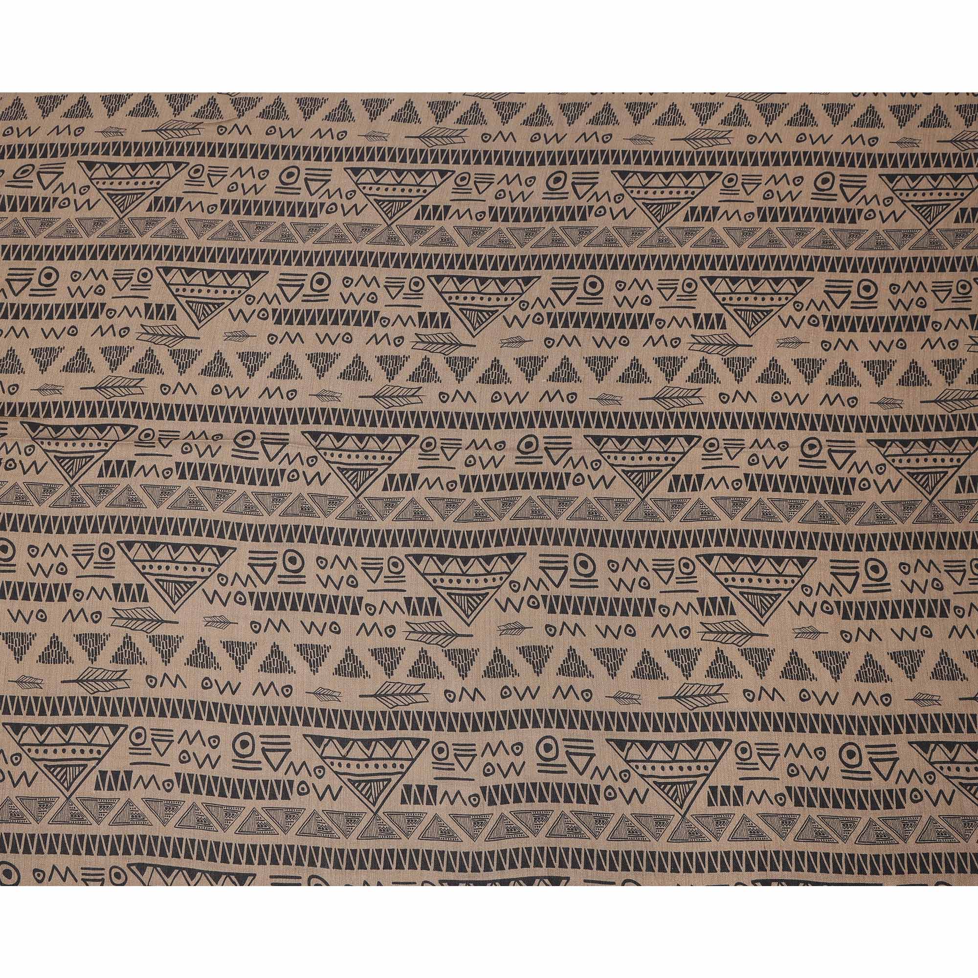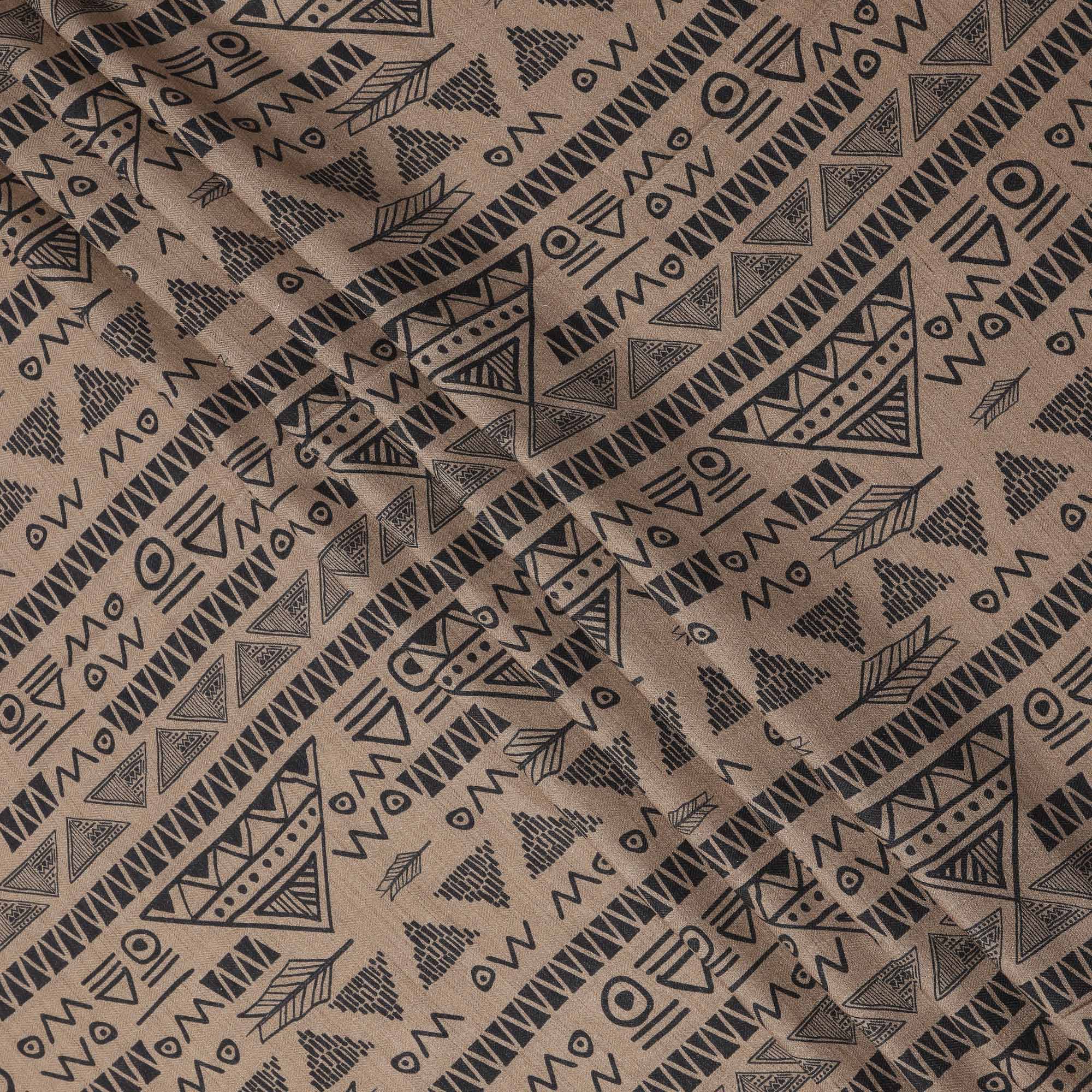 قماش كتان فيسكوز بني مخلوط بطبعة هندسية قبلية سوداء، عرض 110 سم، صنع في الهند - D25101