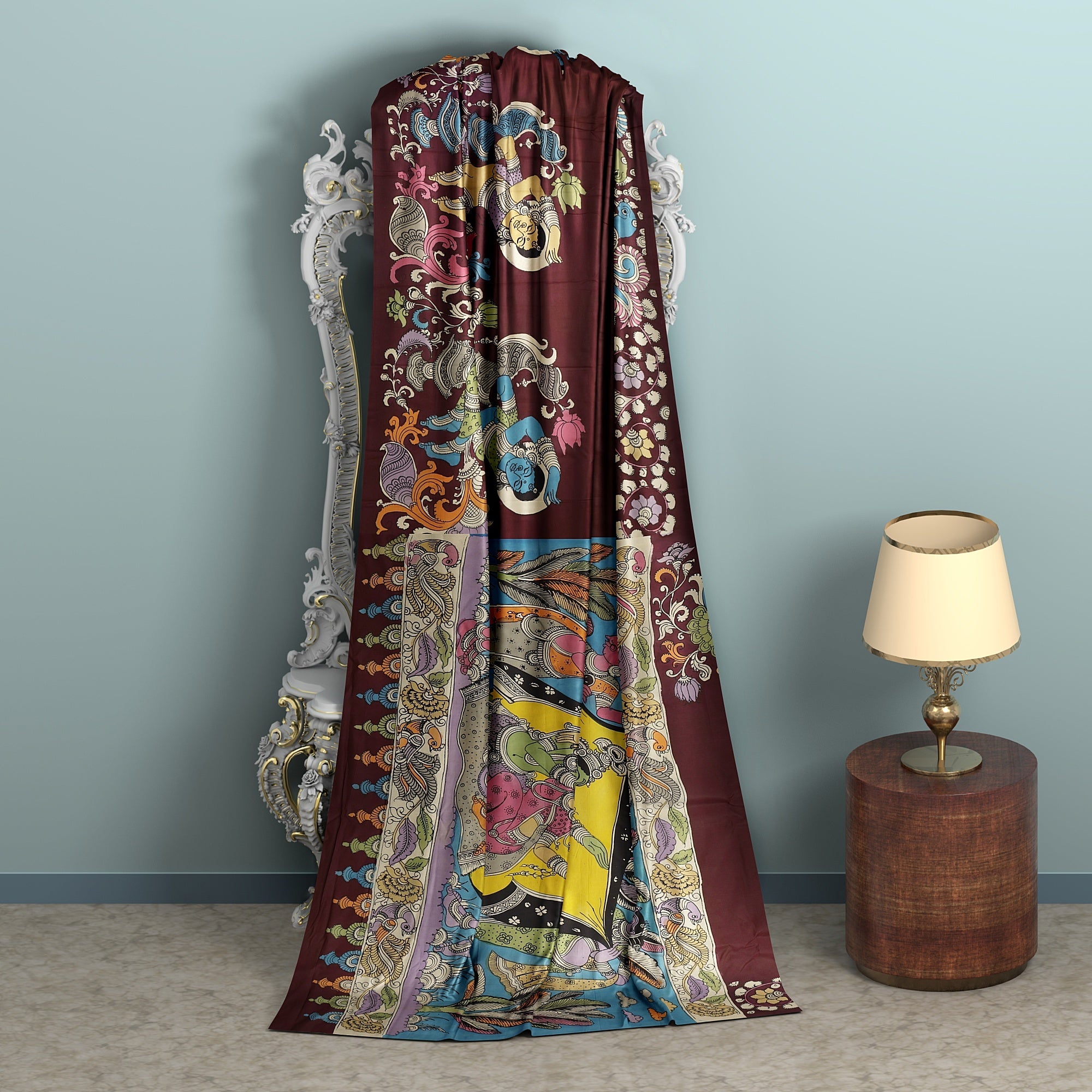 ساري بين كالامكاري مرسوم يدويًا برسومات أسطورية وملحمية