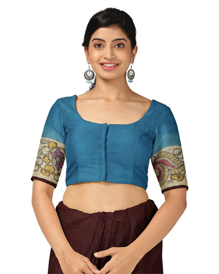 ساري "بين كالامكاري" هذا، المنسوج على قاعدة من حرير "مانغالاجيري" بلون بورغندي الهادئ، هو بمثابة مخطوطة حية من الأساطير، مرسوم بتفانٍ ودقة على يد حرفيين من سري كالاهاستي. كل ساري مطلي يدويًا باستخدام أقلام الخيزران والأصباغ الطبيعية، مجسدًا آلهة وحكماء وعناصر سماوية تروي قصصًا من الملاحم القديمة. تستغرق هذه العملية المعقدة 18 ساعة لإتمامها، مما ينتج عنه تحفة فنية تعكس كل لمسة منها التقاليد. الحرير الأخضر الناعم بمثابة لوحة هادئة لألوان ترابية مثل الصدأ والنيلي والأسود، مما يعزز التأثير البصري للعمل الفني. بطول 5.5 متر وقطعة بلوزة متناسقة، هذا الساري مثالي لزيارة المعابد والطقوس والاحتفالات التراثية. تسوق عبر الإنترنت لتجد قرونًا من القصص الهندية في كل قطعة.