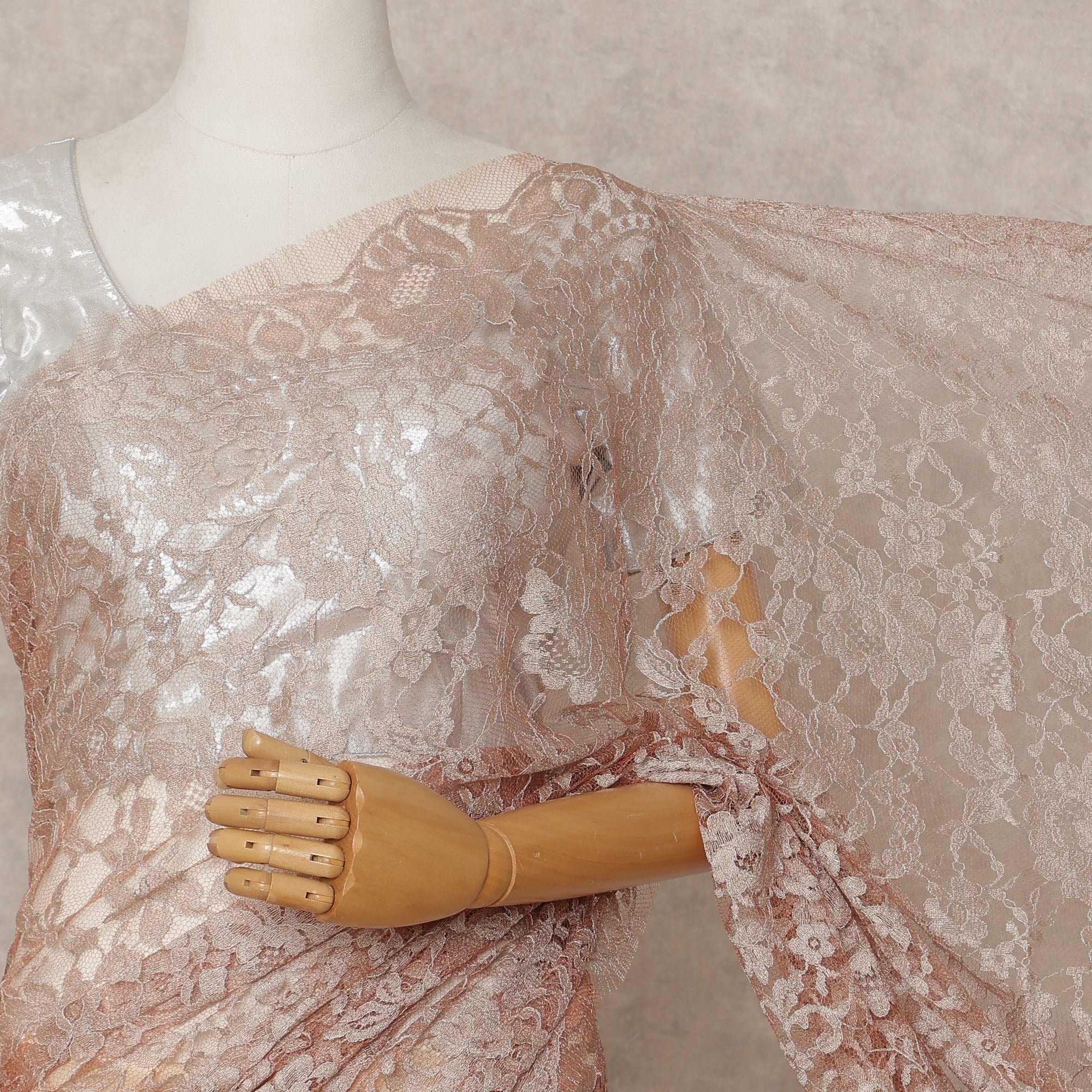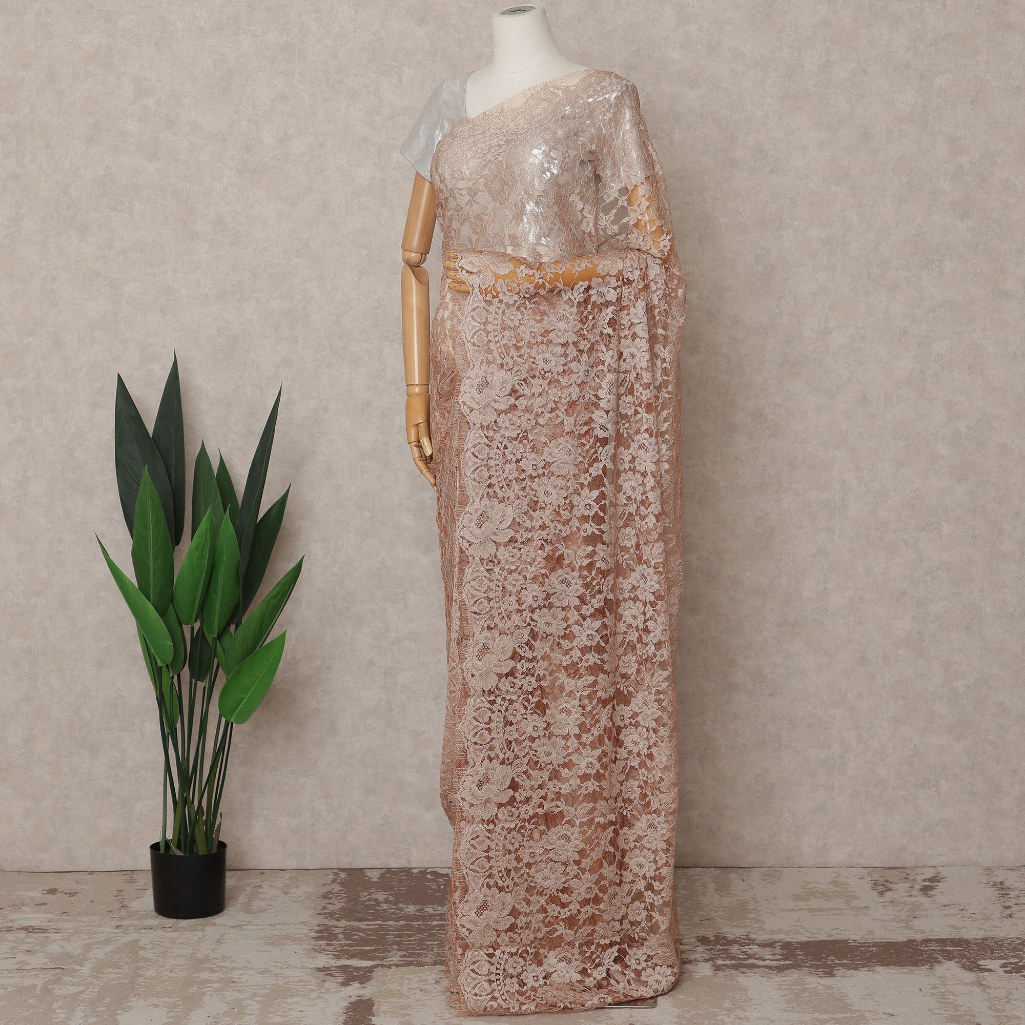 Champagne Beige Premium French 2-Tone Chantilly Lace Saree – 5.5 Meters Length, 110 Cms Width, Crafted in France-D26090
