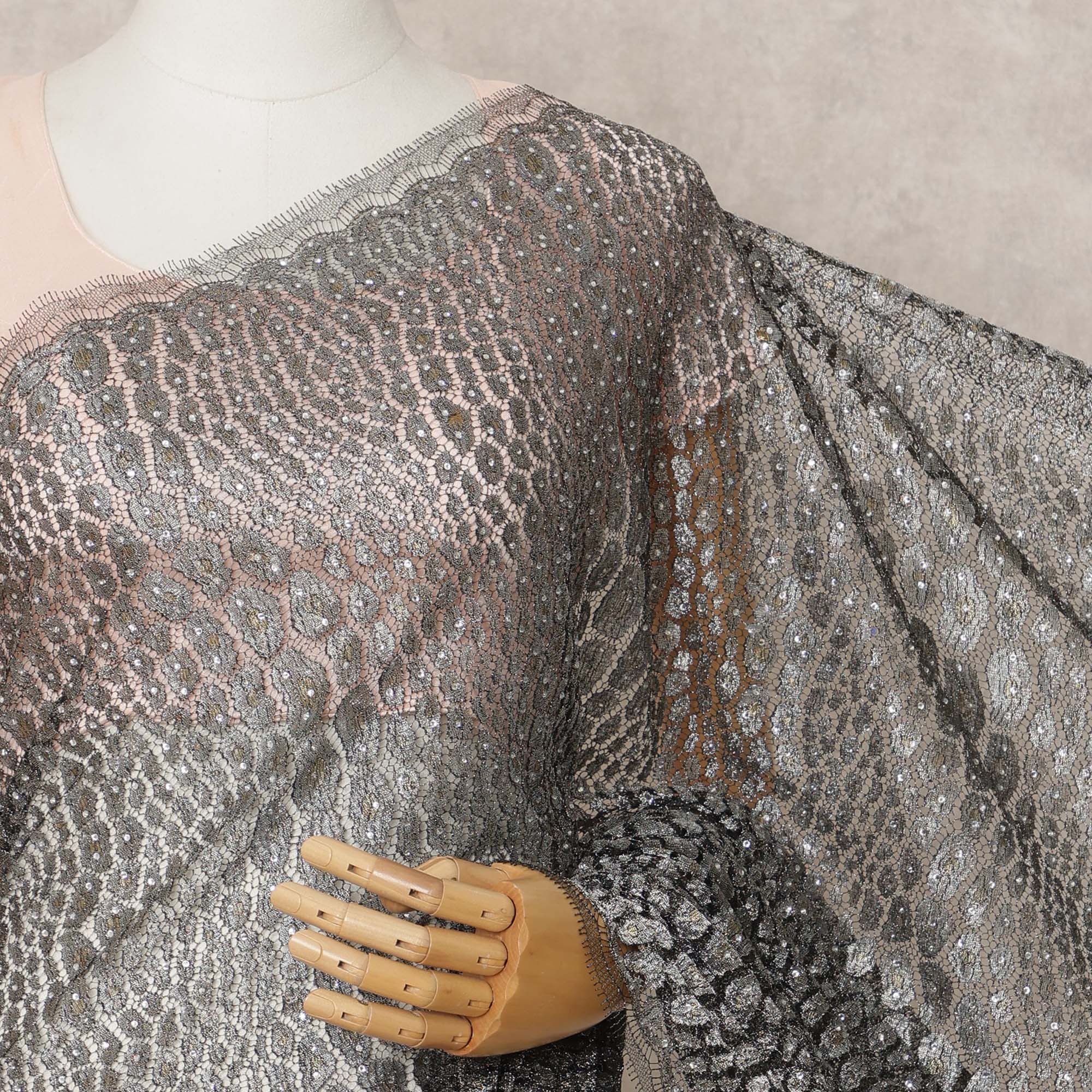 مصنوع من دانتيل شانتيلي الفرنسي الفاخر مع نسيج زاحف معدني