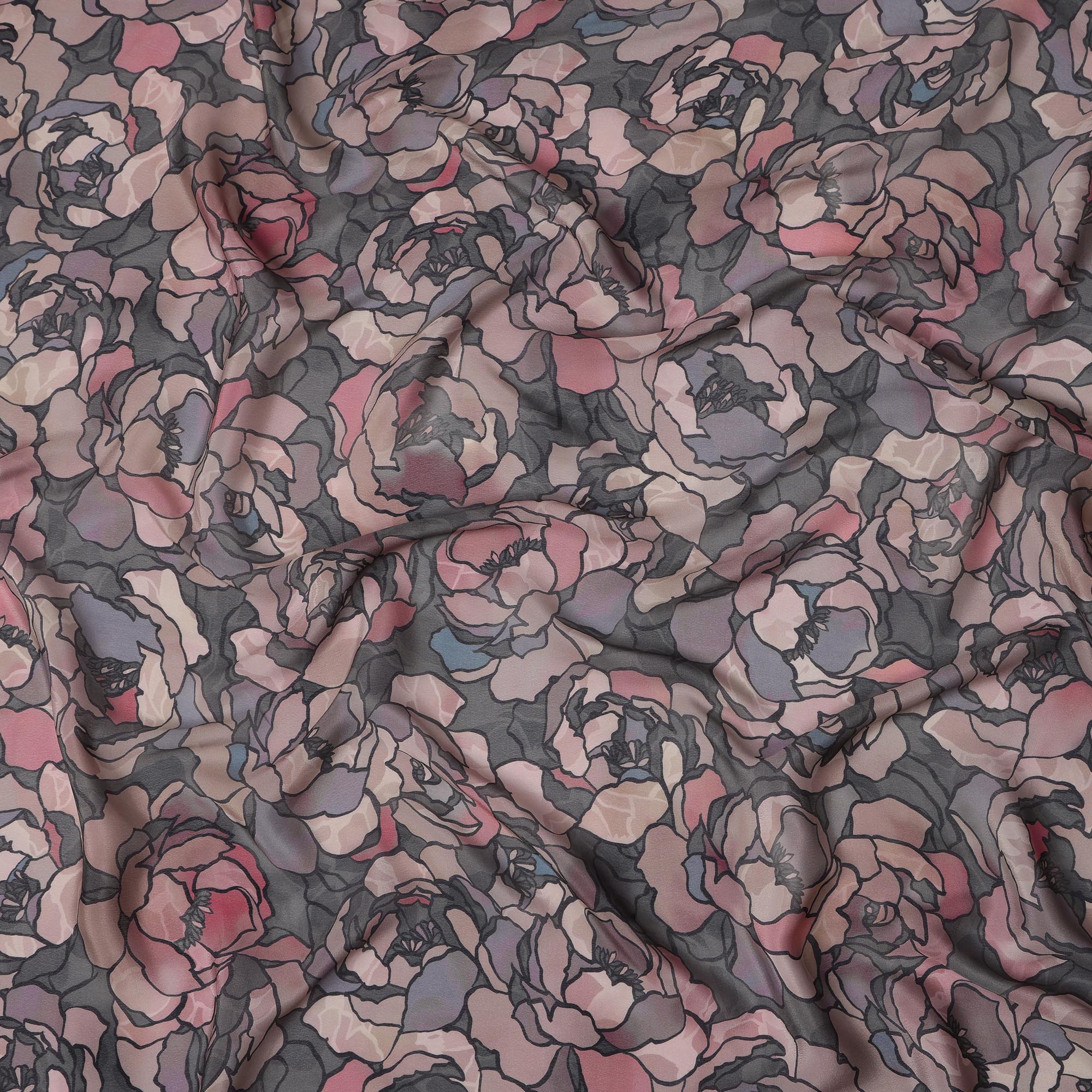 اصنعي مظهرًا جريئًا مع هذا القماش المصنوع من الفيسكوز باللون الأسود الفحمي، والمزين بطباعة رقمية مذهلة لزخارف الورود المجردة بدرجات اللون الخوخي والأرجواني والوردي الباهت، مع لمسات من اللون الرمادي الناعم ودرجات اللون الأزرق الباهتة. تخلق القاعدة الداكنة تباينًا دراماتيكيًا، وتسلط الضوء على التفاصيل الزهرية المعقدة للحصول على مظهر جمالي معاصر ومتطور. خفيف الوزن وجيد التهوية، يوفر هذا القماش ملمسًا ناعمًا وثنيات ممتازة، مما يجعله مثاليًا لإنشاء فساتين أنيقة أو بلوزات أنيقة أو أوشحة أنيقة أو سترات فريدة من نوعها. بعرض 110 سم، فهو متعدد الاستخدامات بما يكفي لمشاريع الخياطة غير الرسمية والرسمية.