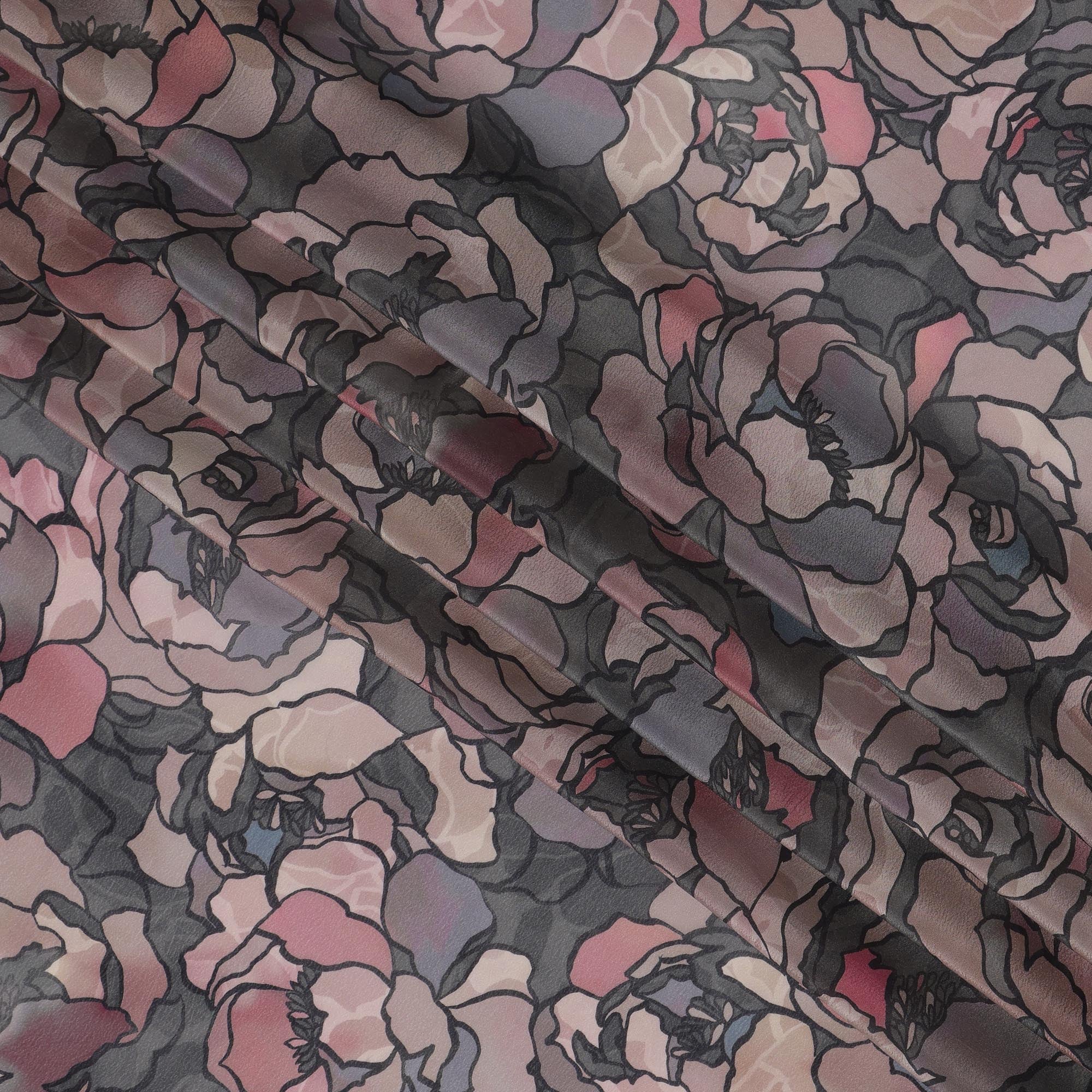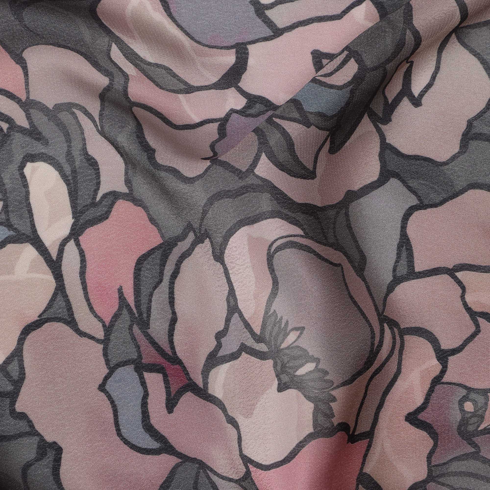 • قماش فيسكوز أسود فحمي مطبوع رقميًا بتصميم وردة تجريدية، عرض 110 سم - D21323