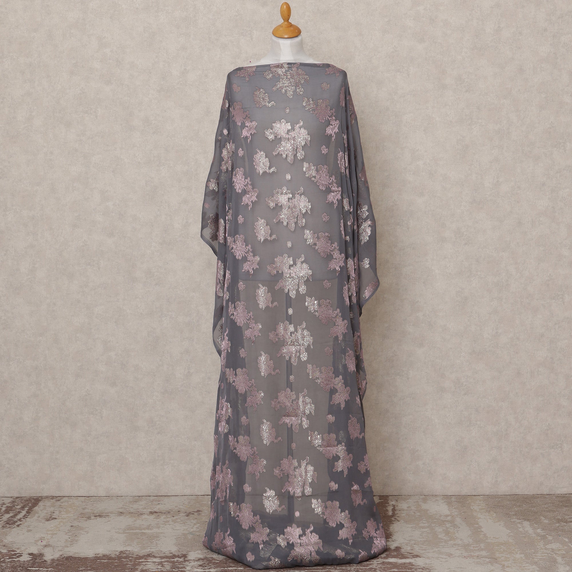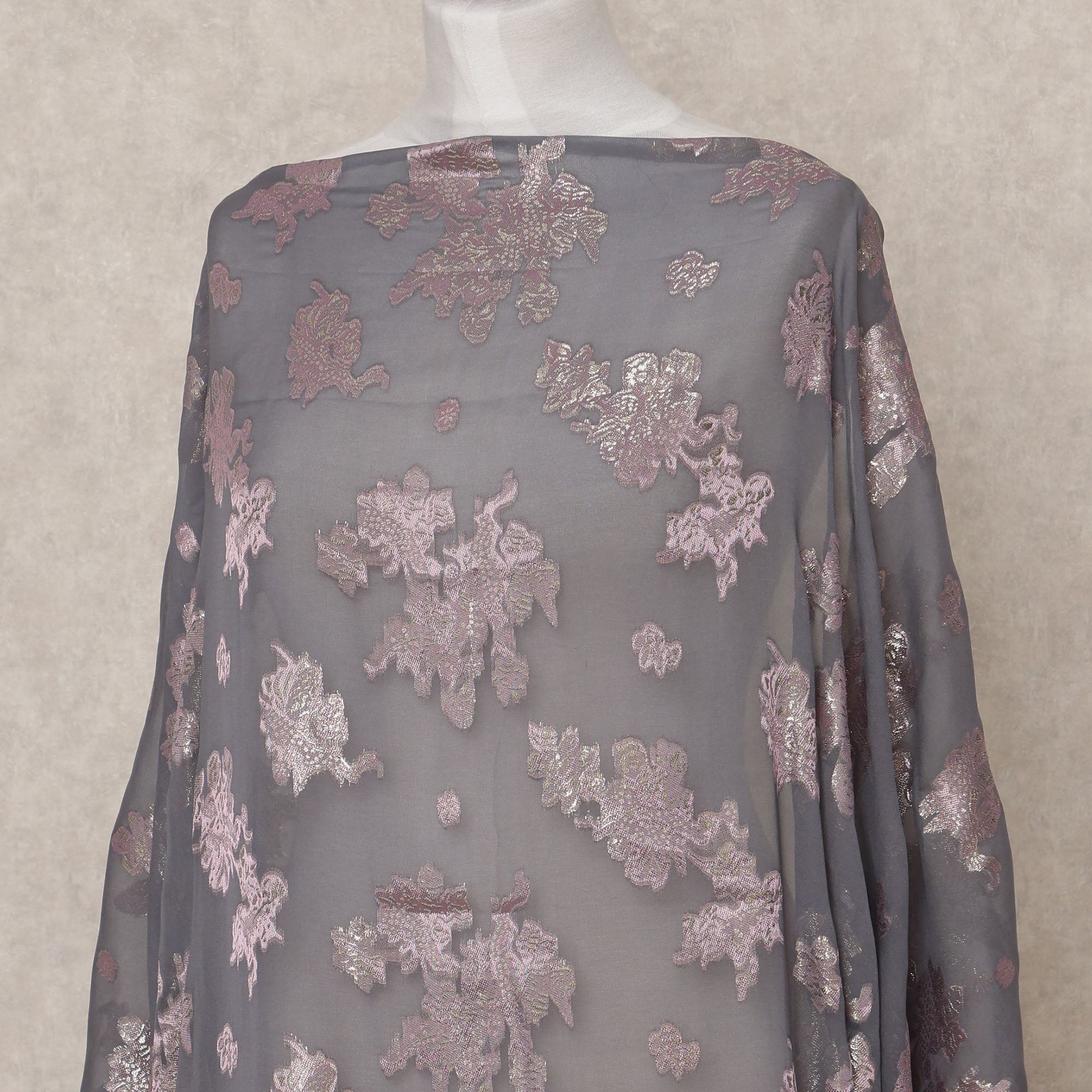 قماش ديراك شيفون حريري صومالي رمادي فحمي مع لوركس معدني ذهبي وردي - 3.5 متر، عرض 140 سم، صنع في كوريا الجنوبية - D24548