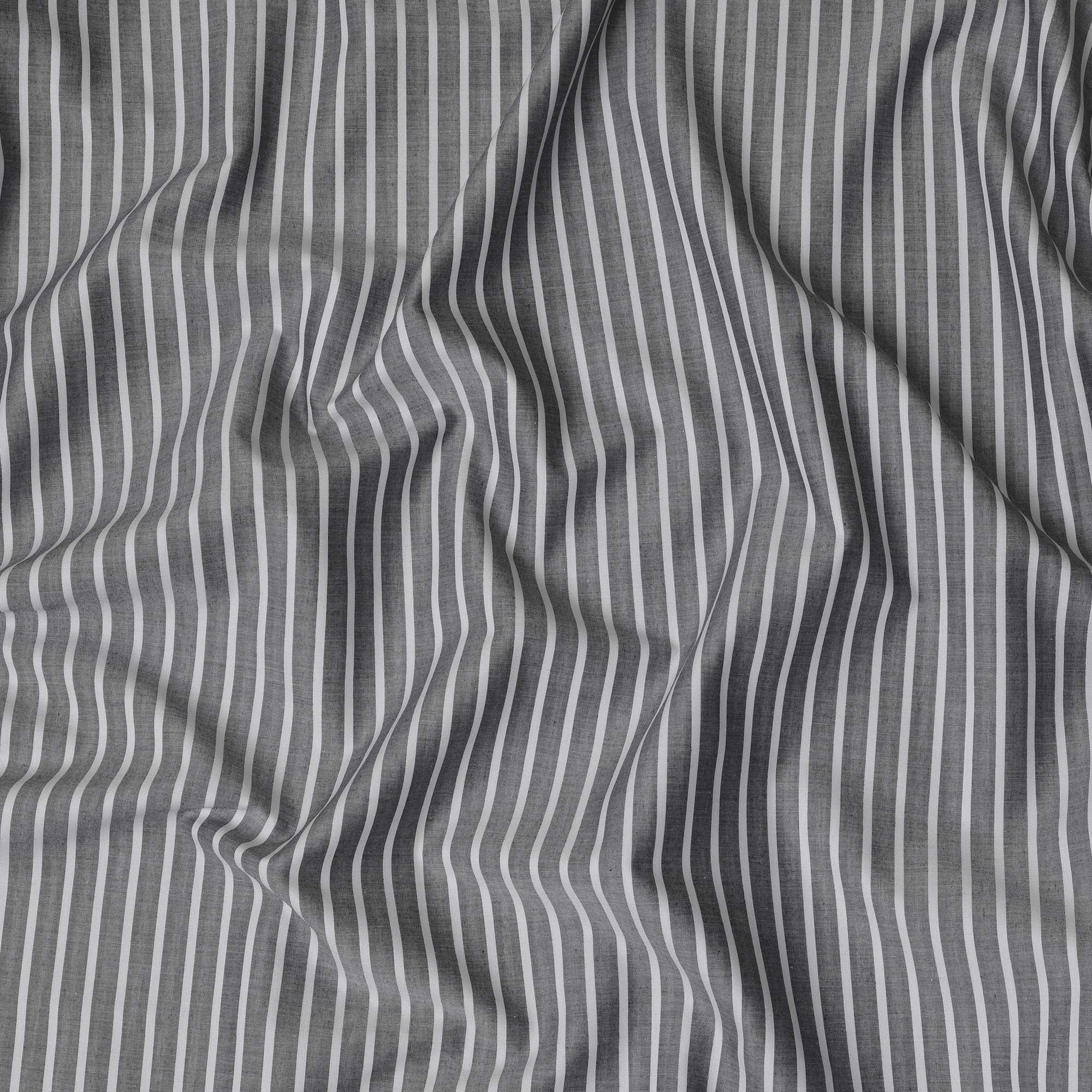 قماش قميص قطني سويسري 100% مطبوع عليه خطوط عمودية رمادية فحمية، عرض 150 سم، صنع في سويسرا - D22905