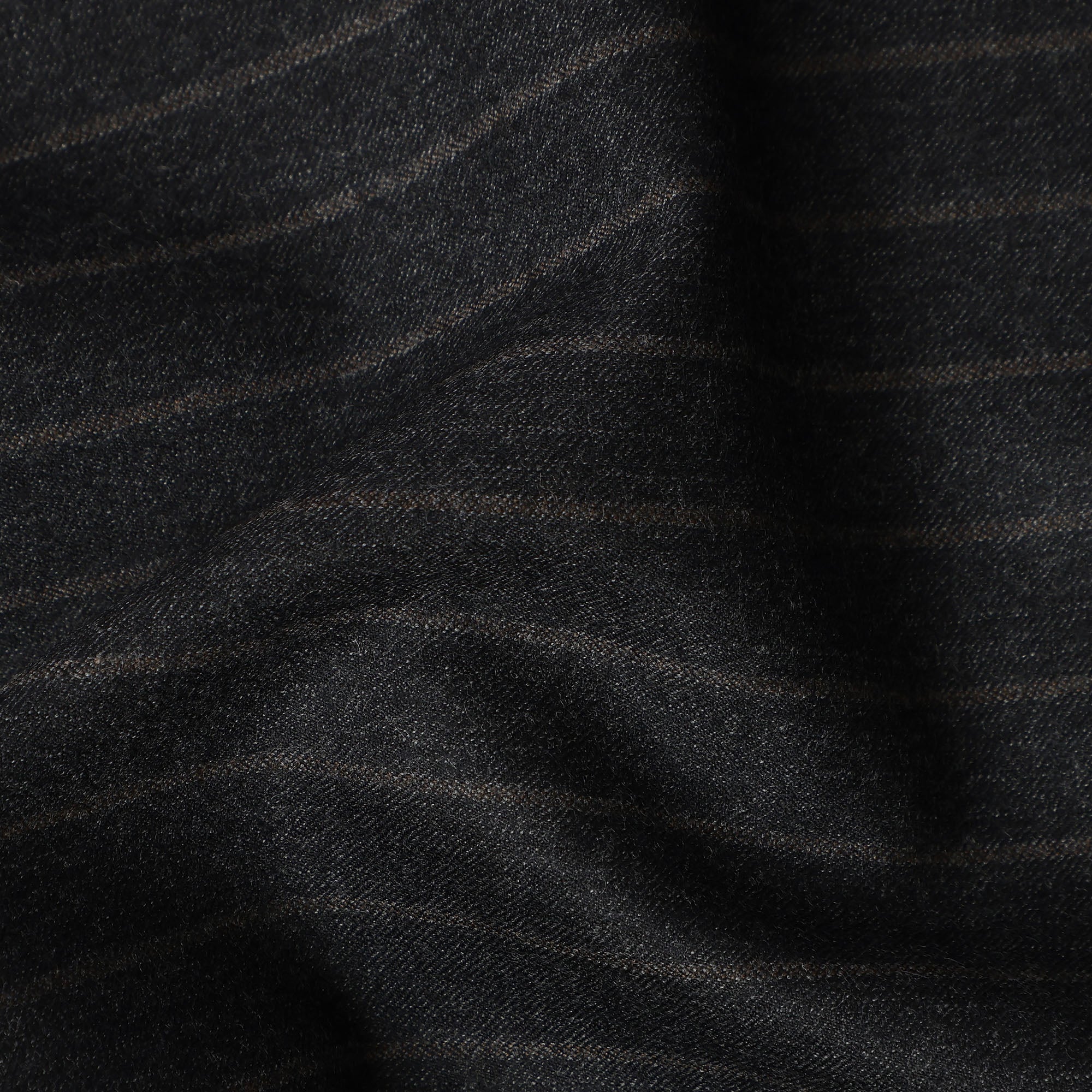 Premium charcoal pinstripe Super 140’s Italian all wool fabric offering refined softness