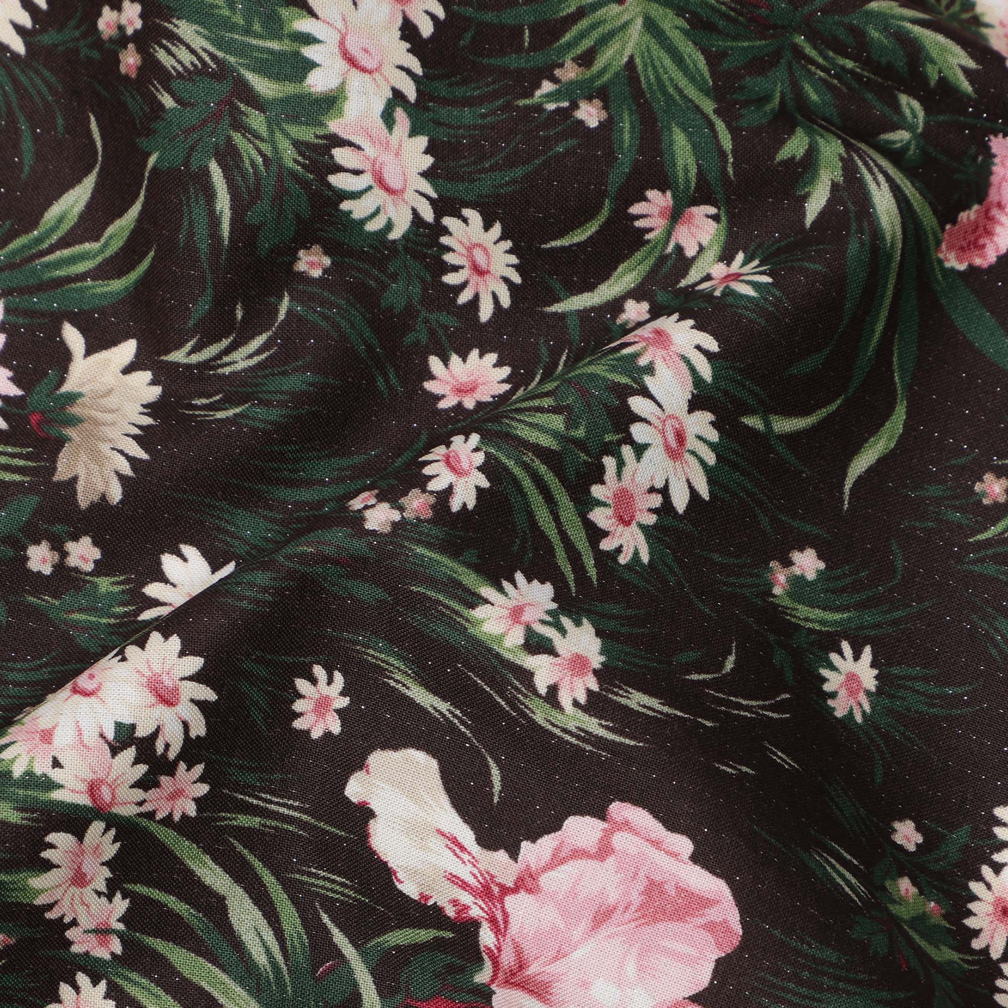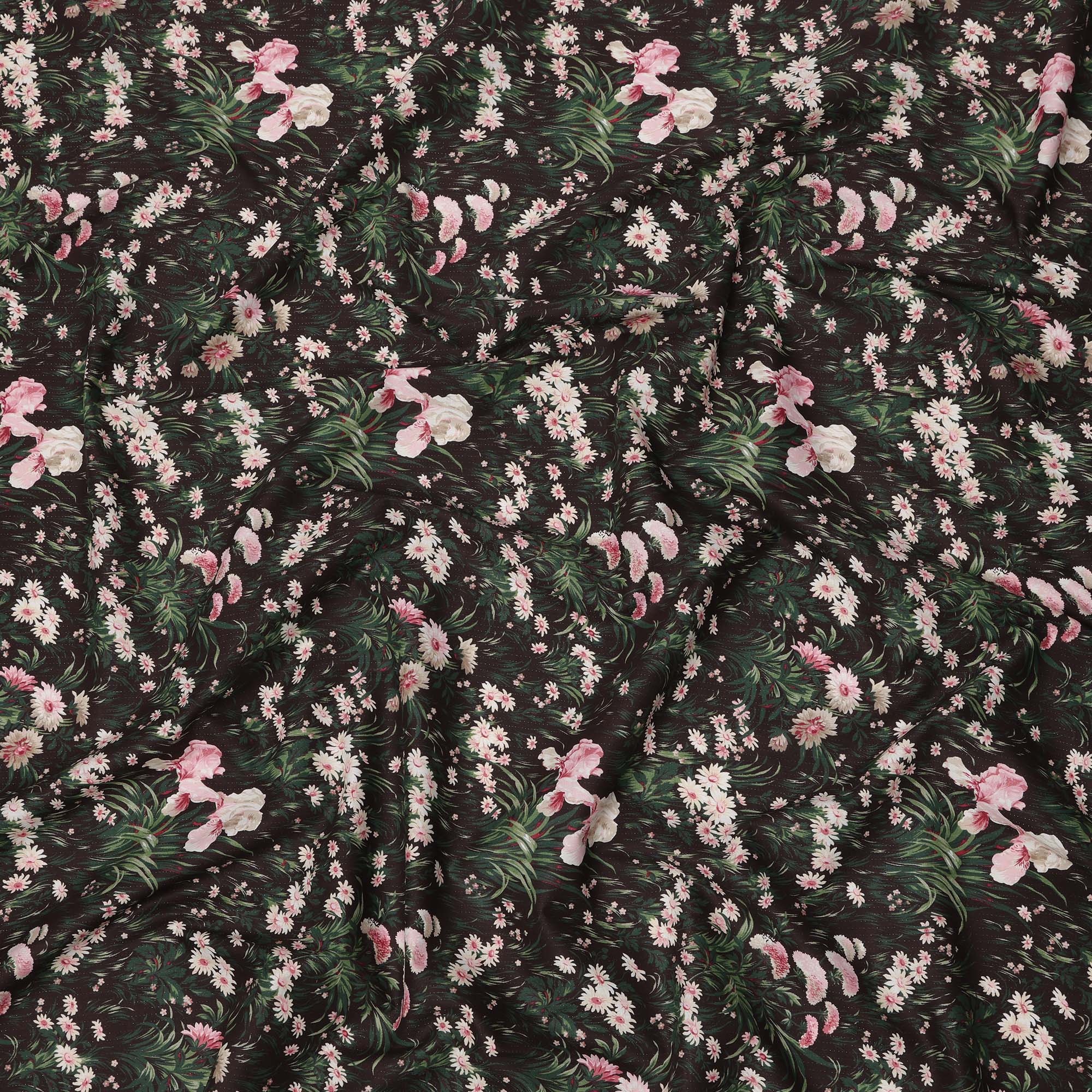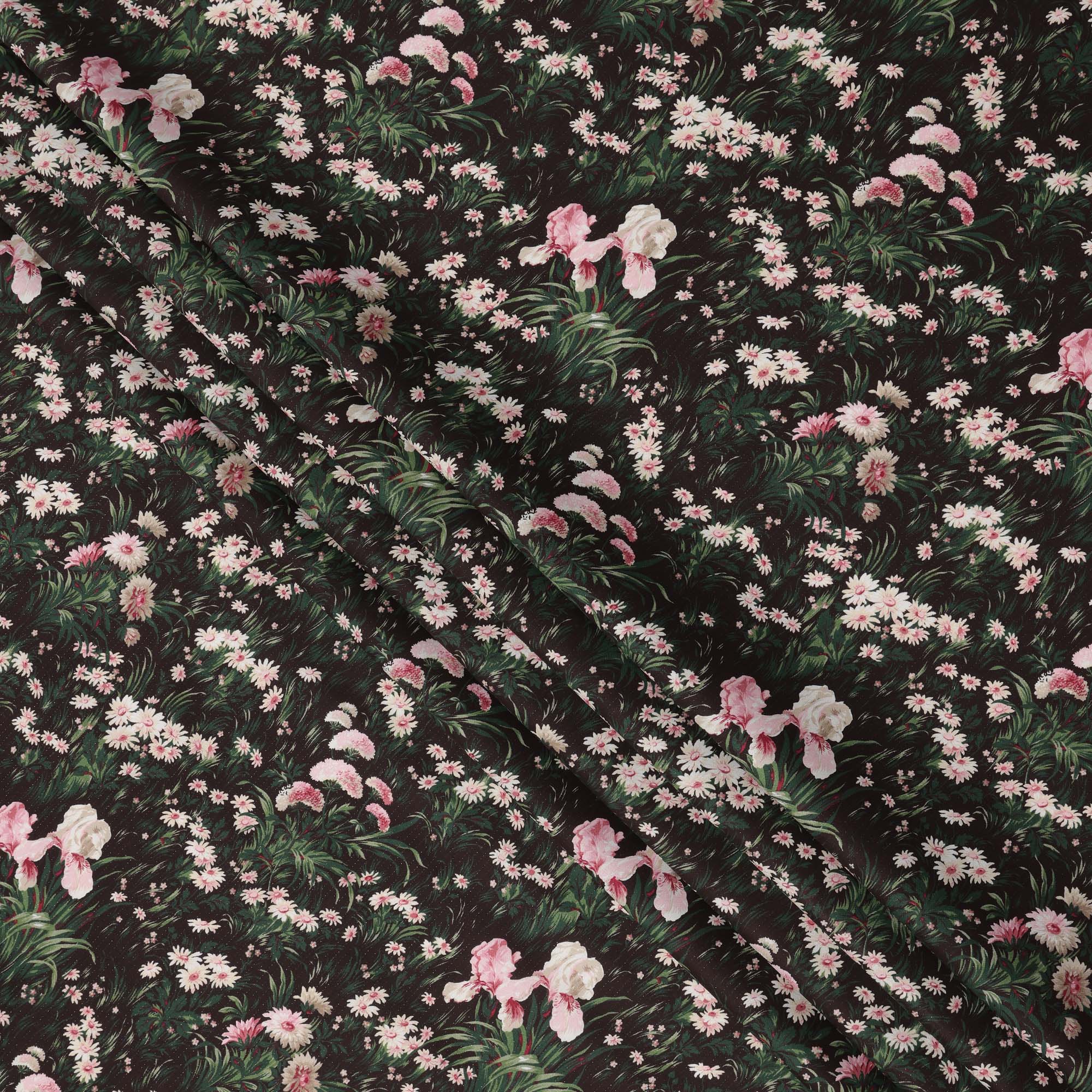 قماش قطني بلون بني شوكولاتة مع طبعة زهور باللونين الوردي والأبيض، عرض 110 سم، صنع في اليابان - D24181