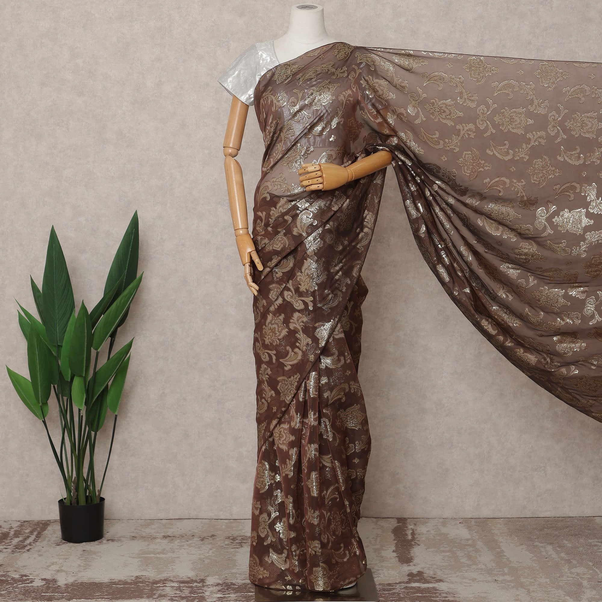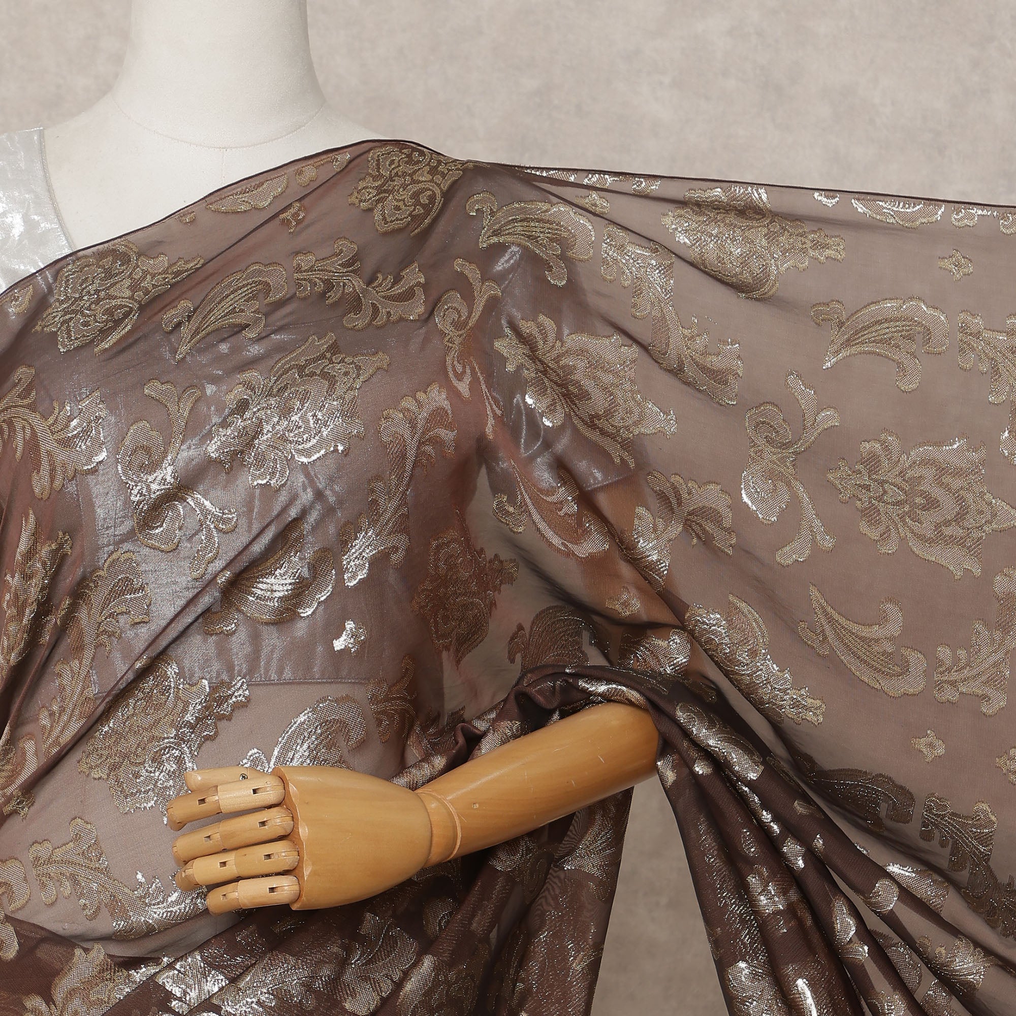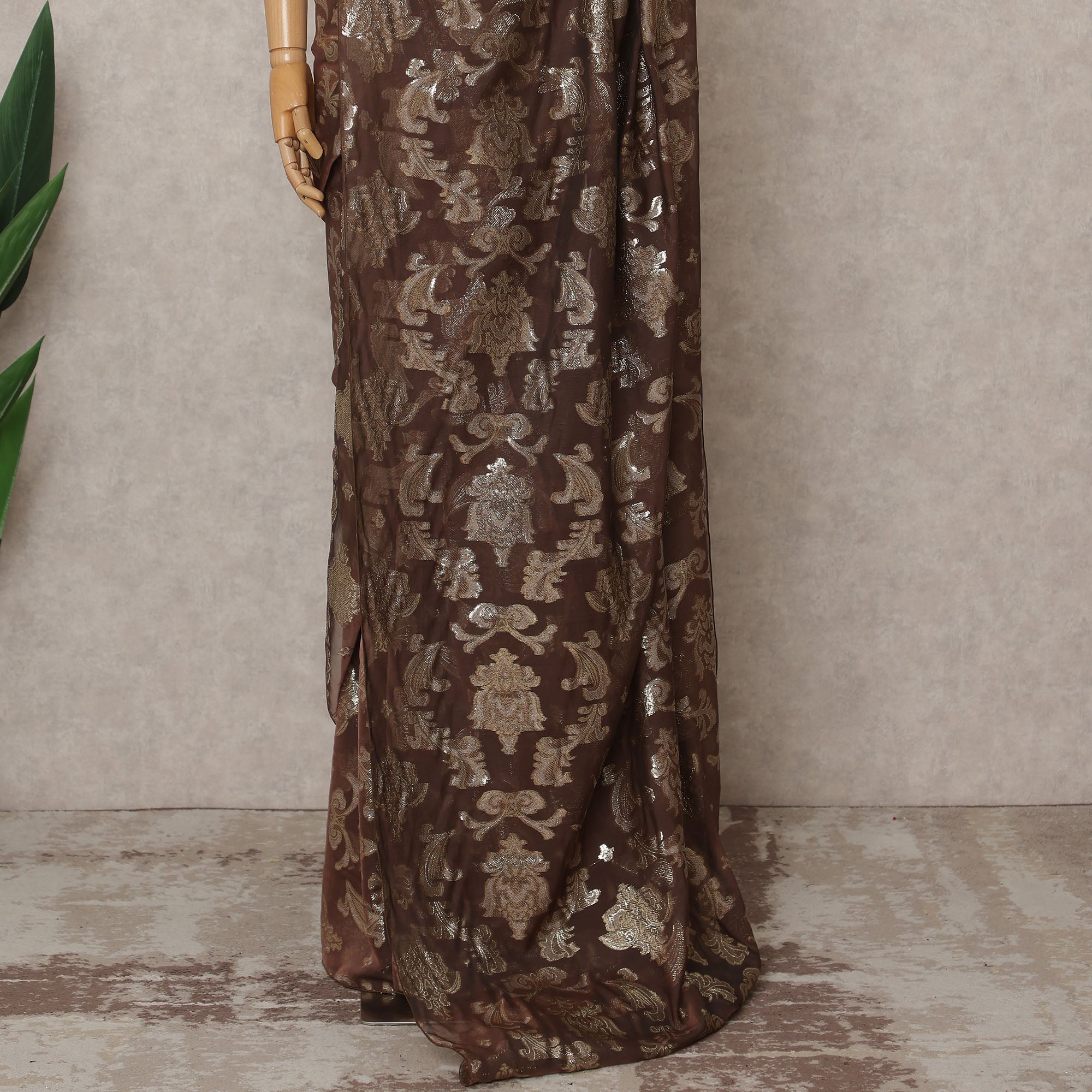 قماش ساري شيفون حريري خالص بلون بني شوكولاتة فاخر مصنوع في فرنسا