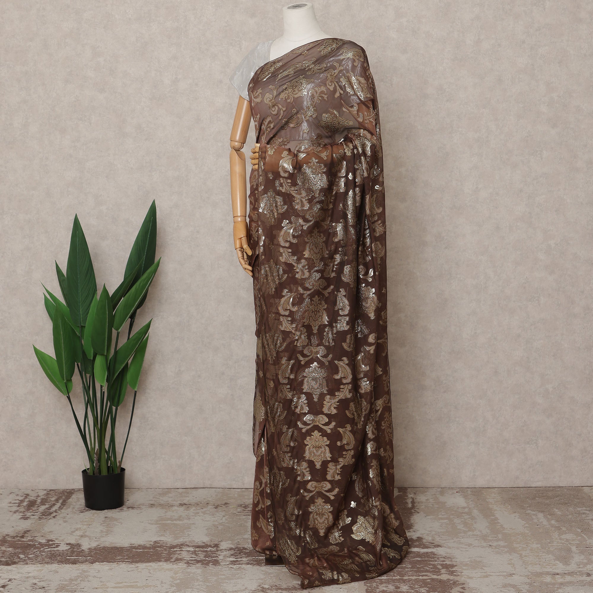ساري شيفون حرير فرنسي فاخر بلون بني شوكولاتة - طول 5.5 متر، عرض 110 سم، صنع في فرنسا - D25620