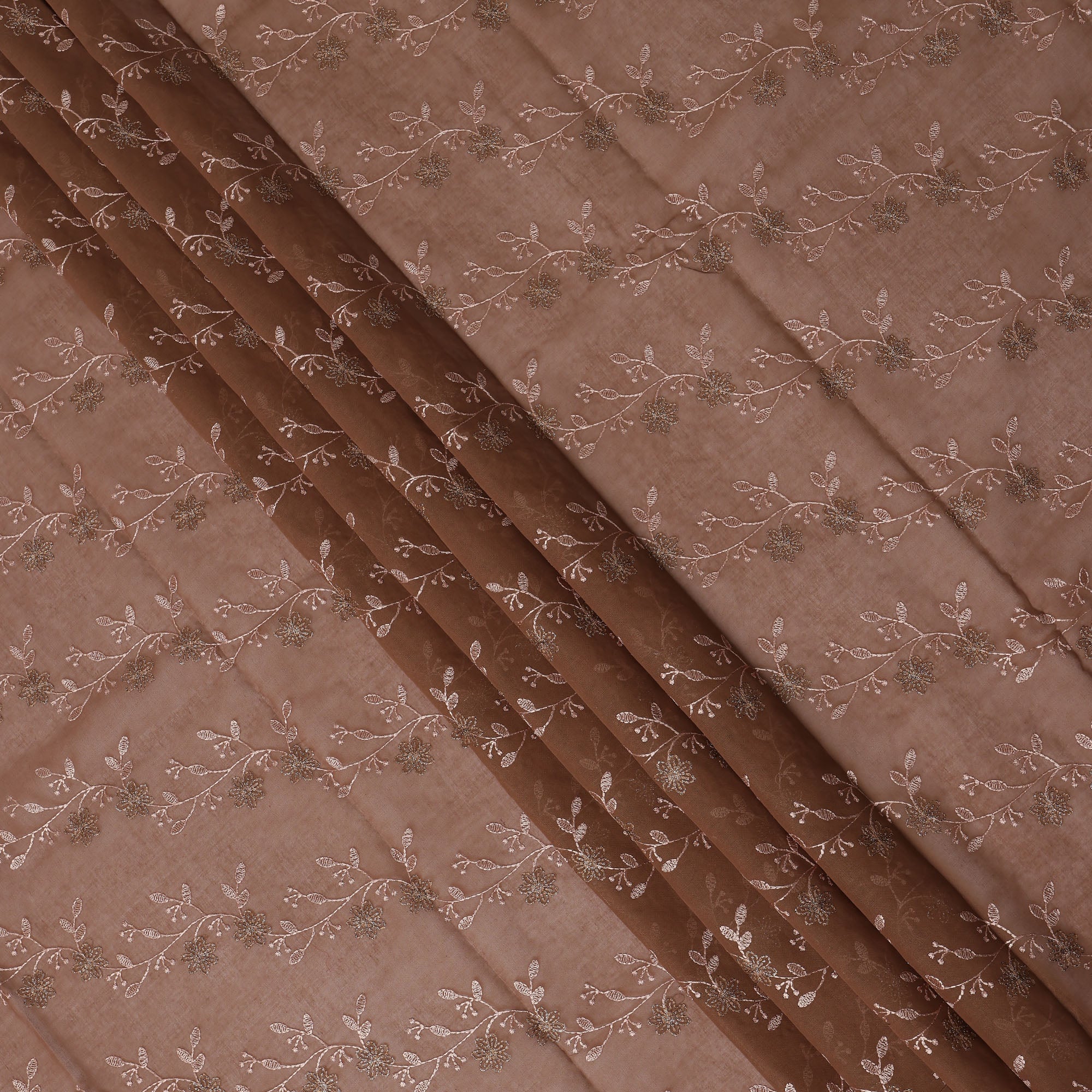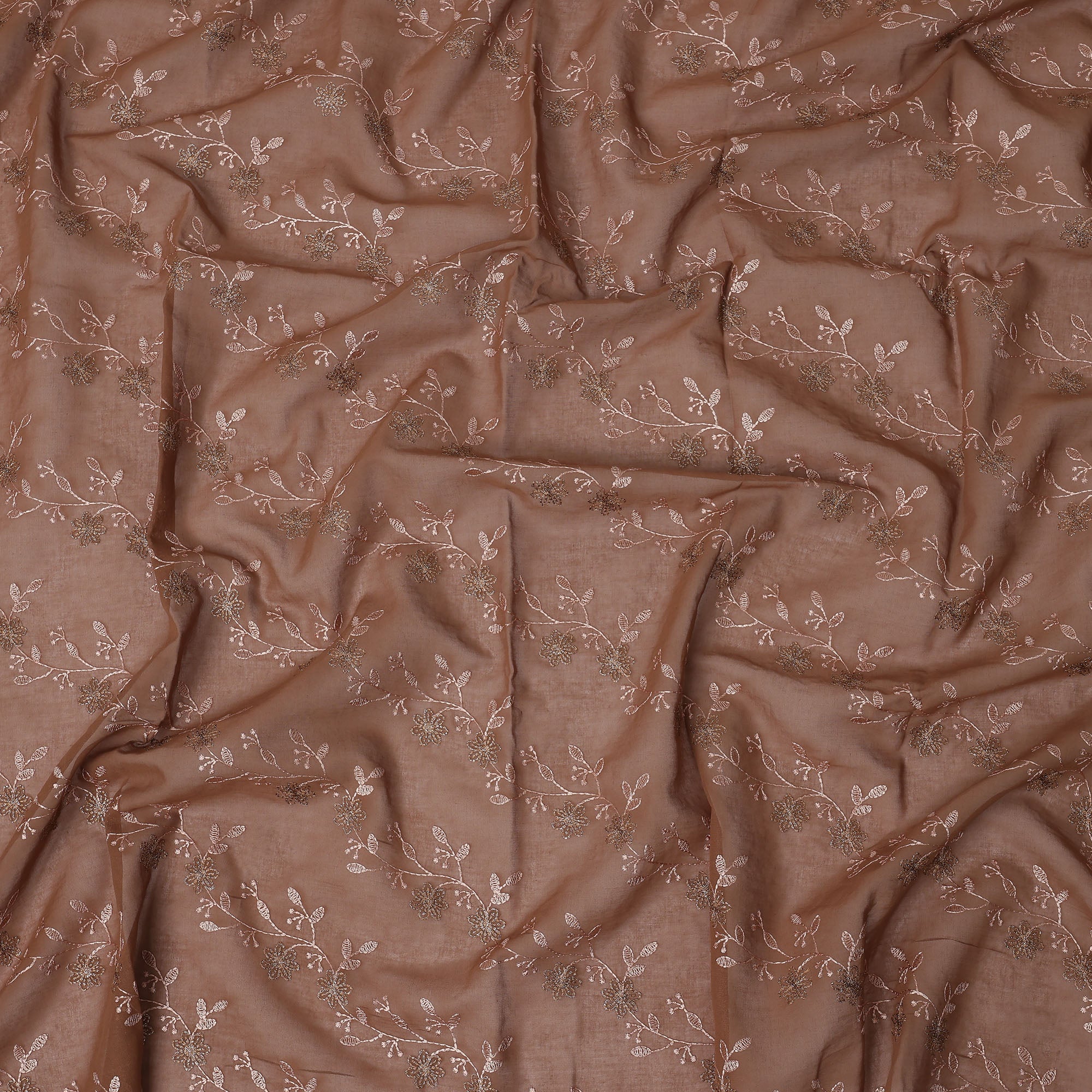 Coffee Brown Traditional Sudanese Thobe Fabric with Rose Gold & Bronze Floral Embroidery, Pure Cotton Voile, 4.5 Mtrs Length, 140 Cms Width, Made in India-D26398