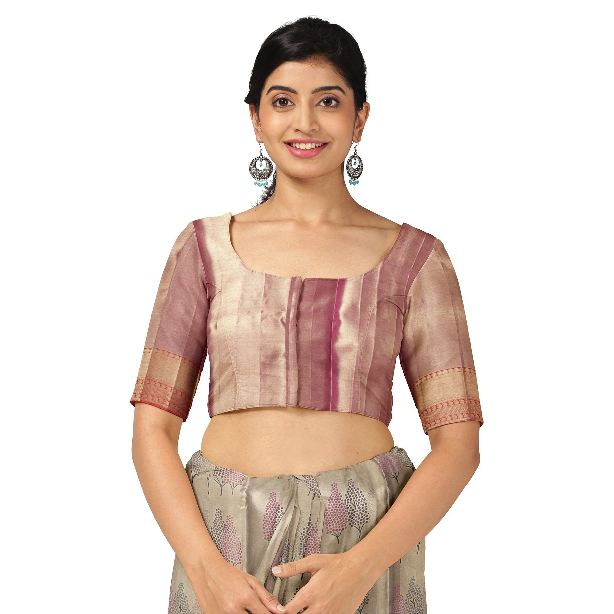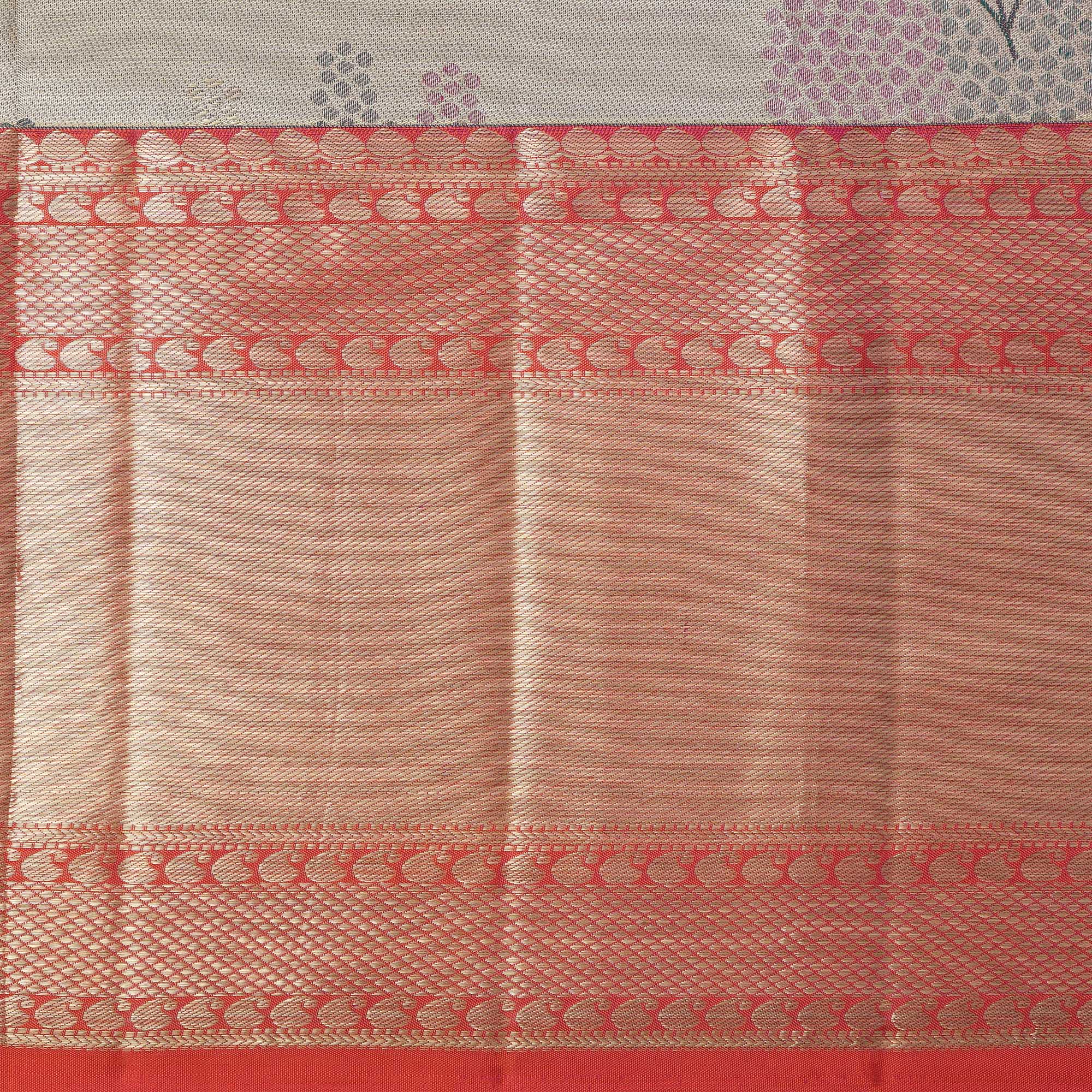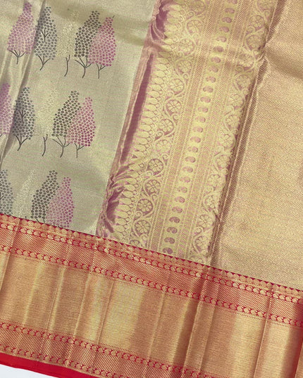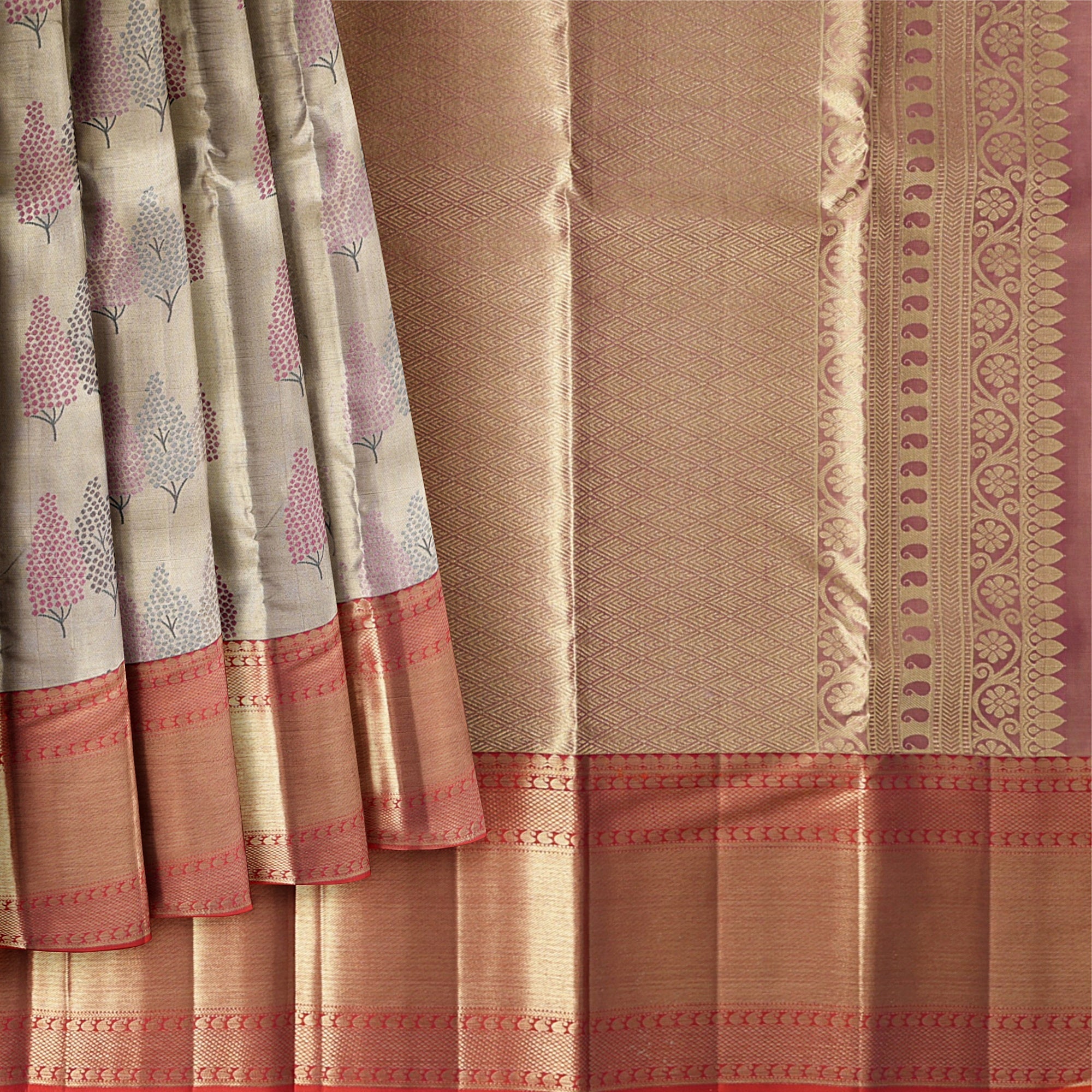 ساري كانجيفارام من الحرير الخالص بلون النحاس الذهبي، مزين بزخارف نباتية منسوجة يدويًا وحواف منقوشة متباينة، بطول 5.5 متر مع بلوزة، من أصل هندي - D22722
