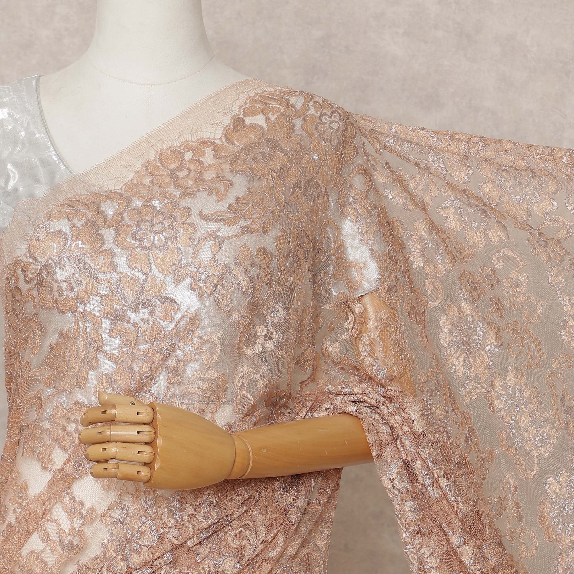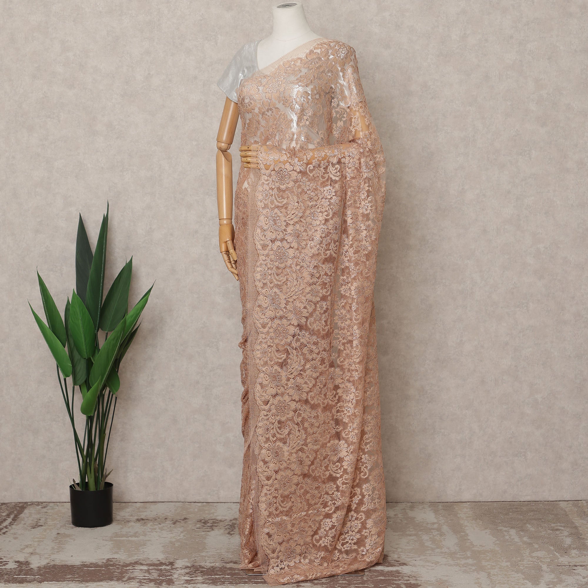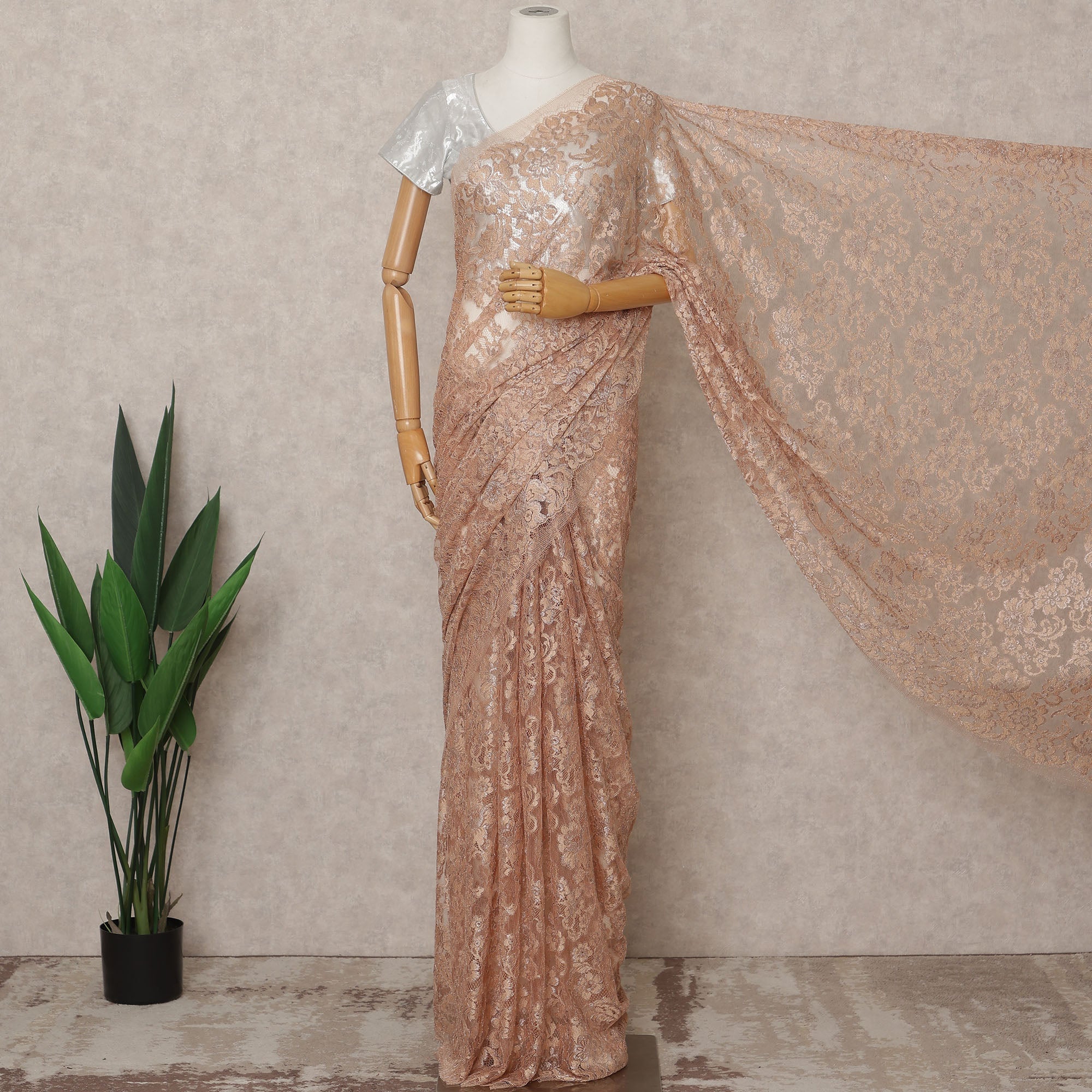 Copper Peach Premium French Metallic Chantilly Lace Saree Fabric – 5.5 Meters Length, 110 Cms Width, Imported from France-D25712