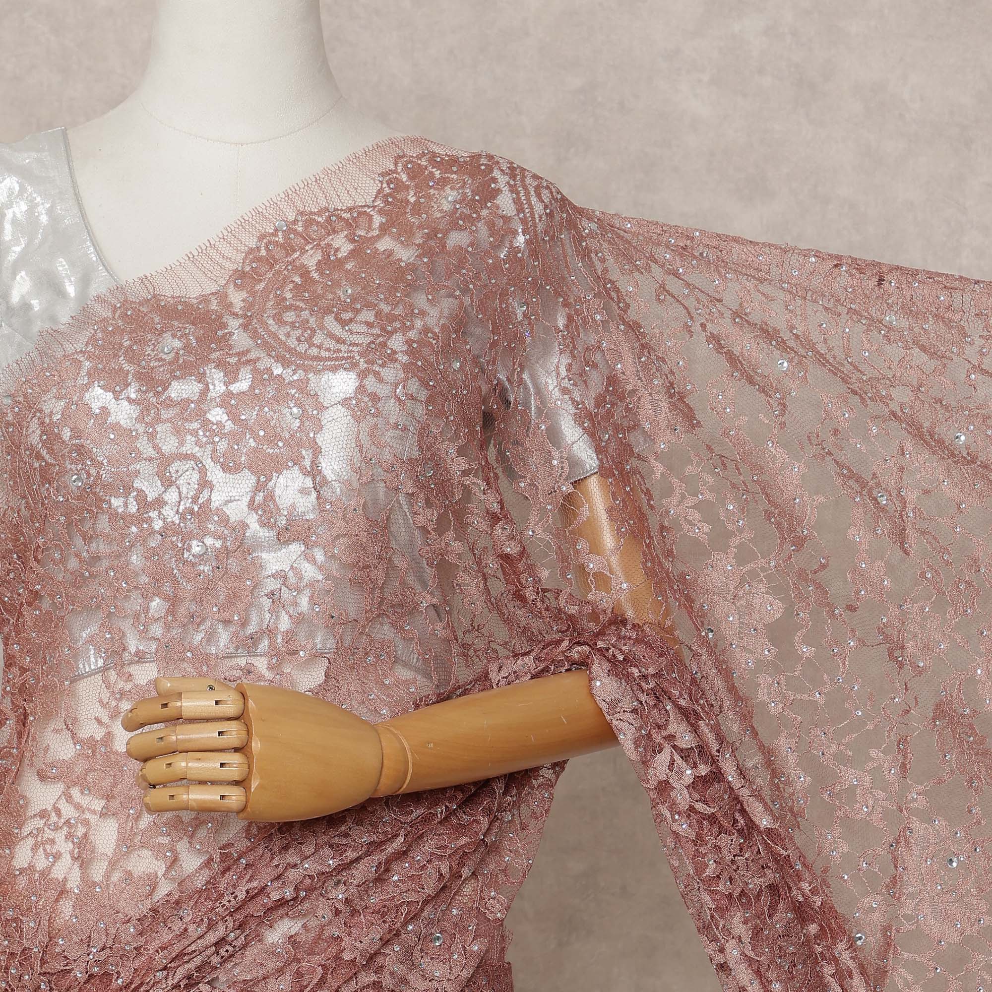 Copper Rose Premium French 2-Tone Chantilly Lace Saree with Stone Work, Width 110 Cms, Length 5.5 Mtrs, Imported from France-D25676