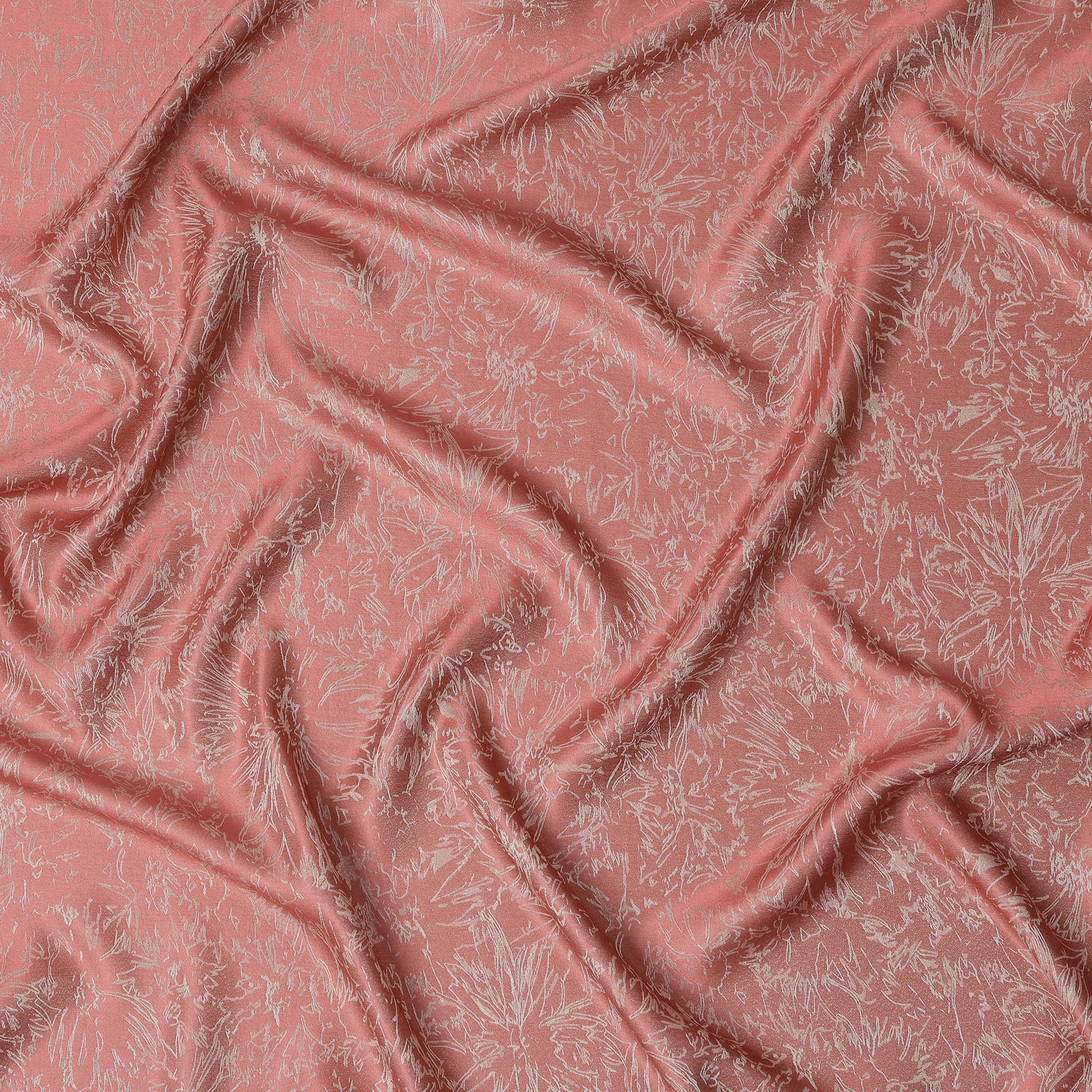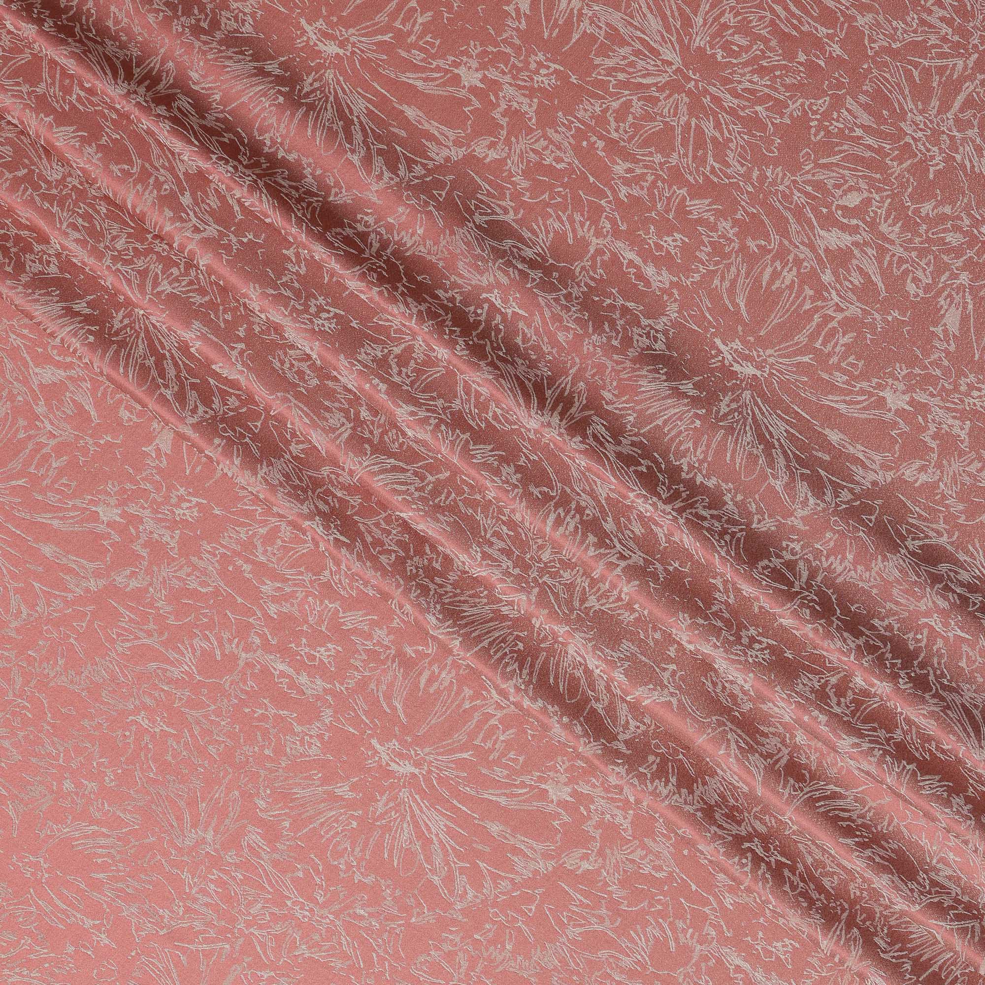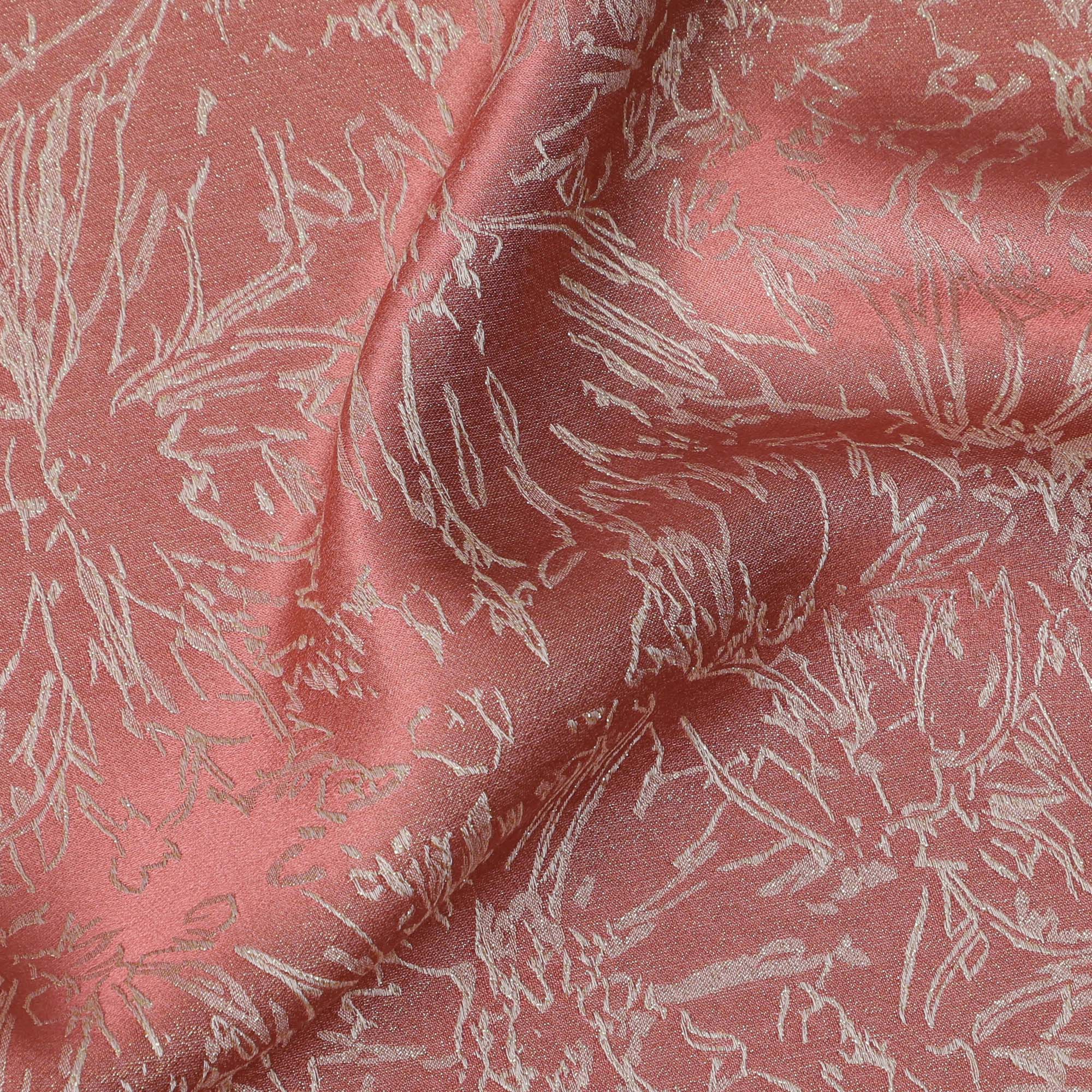 ساتان حريري وردي مرجاني ساحر مع تفاصيل زهور معدنية من الجاكار