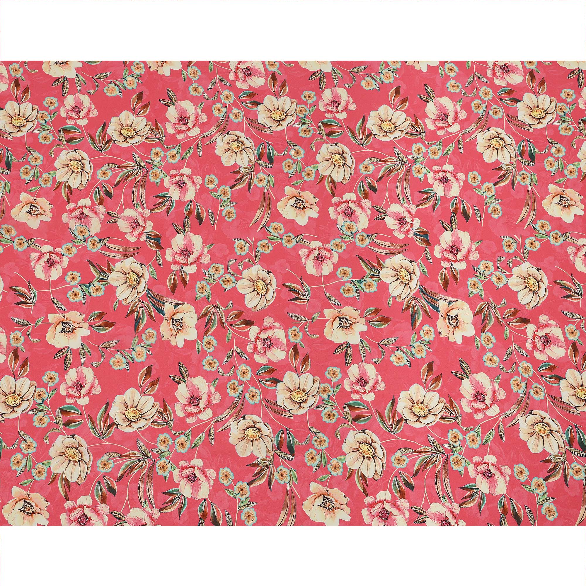 Coral Pink Floral Printed Premium Pure Silk Crepe Fabric with Artistic Botanical Design, 110 cms Width, Made in India-D26332