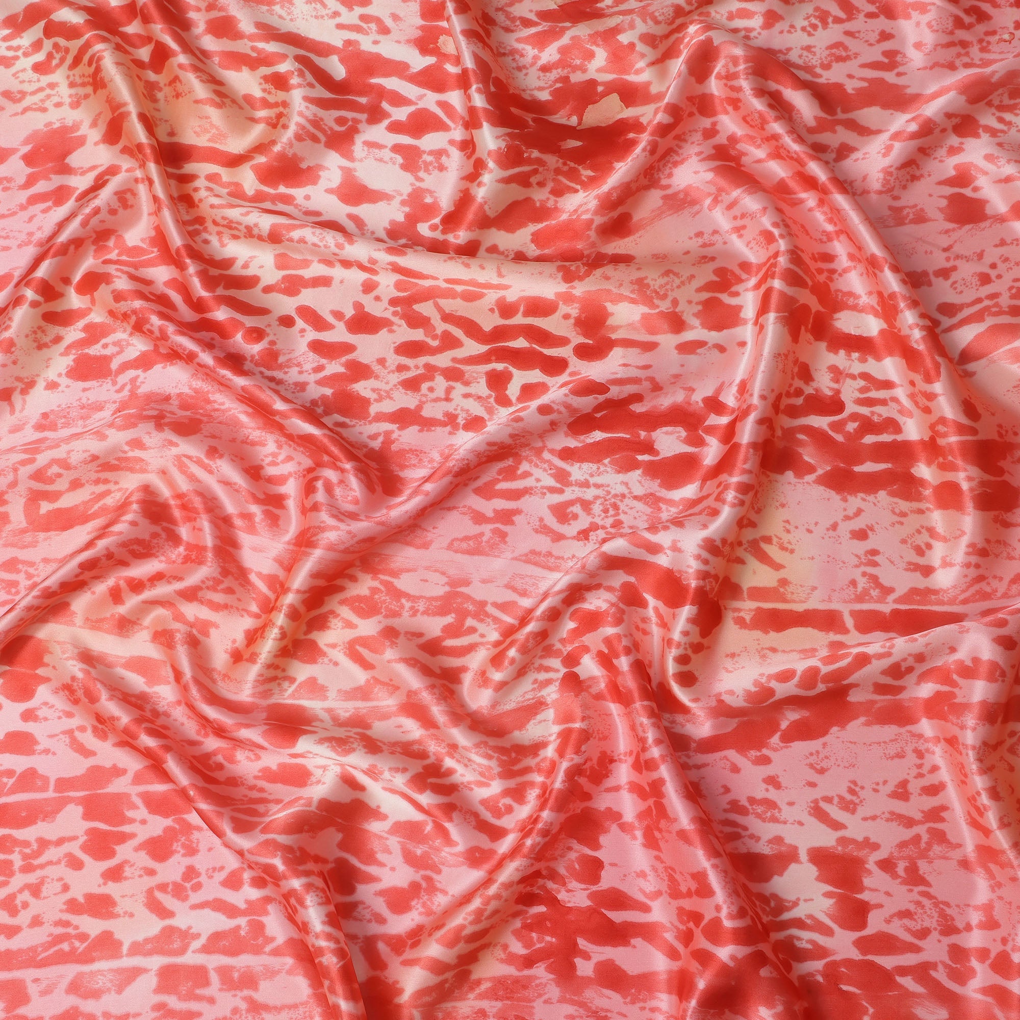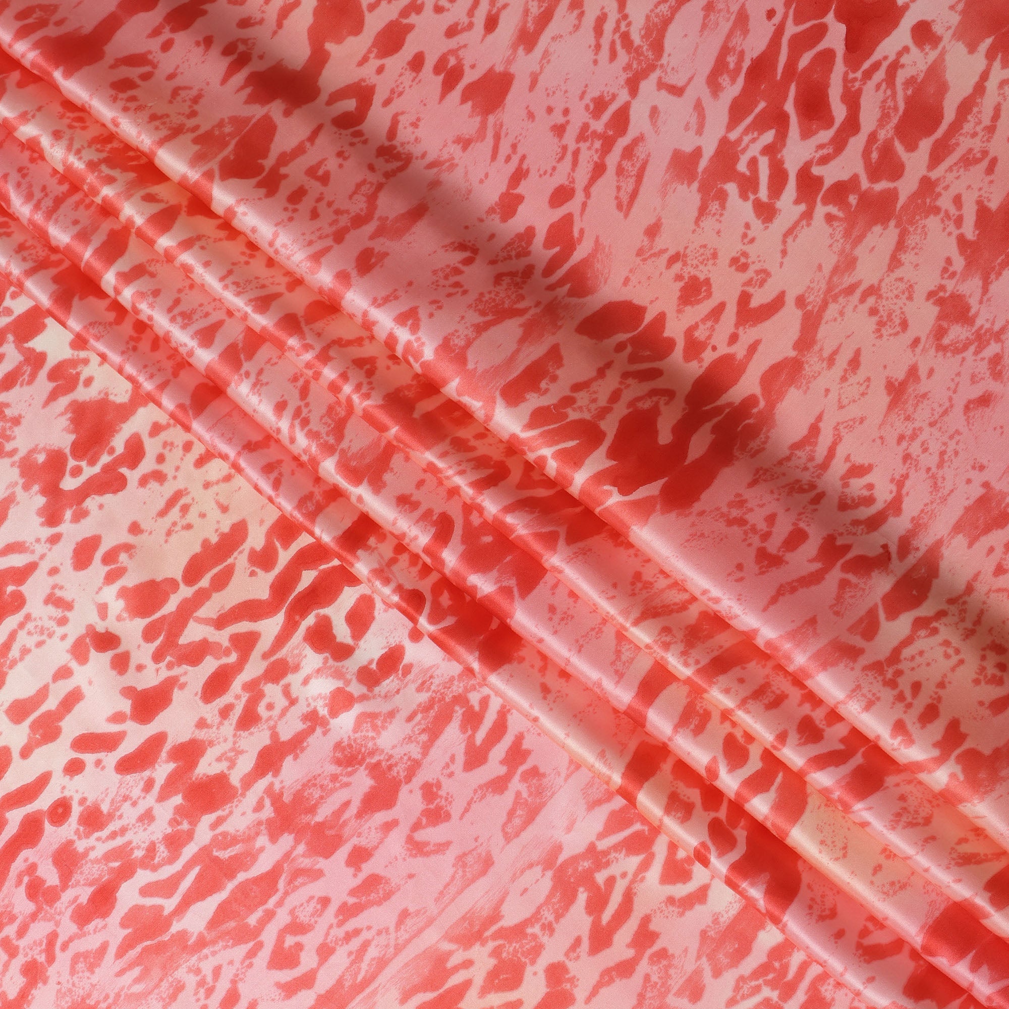 قماش ساتان حريري خالص بطبعة تجريدية باللون الأحمر المرجاني والوردي، عرض 110 سم، صنع في الهند - D23033