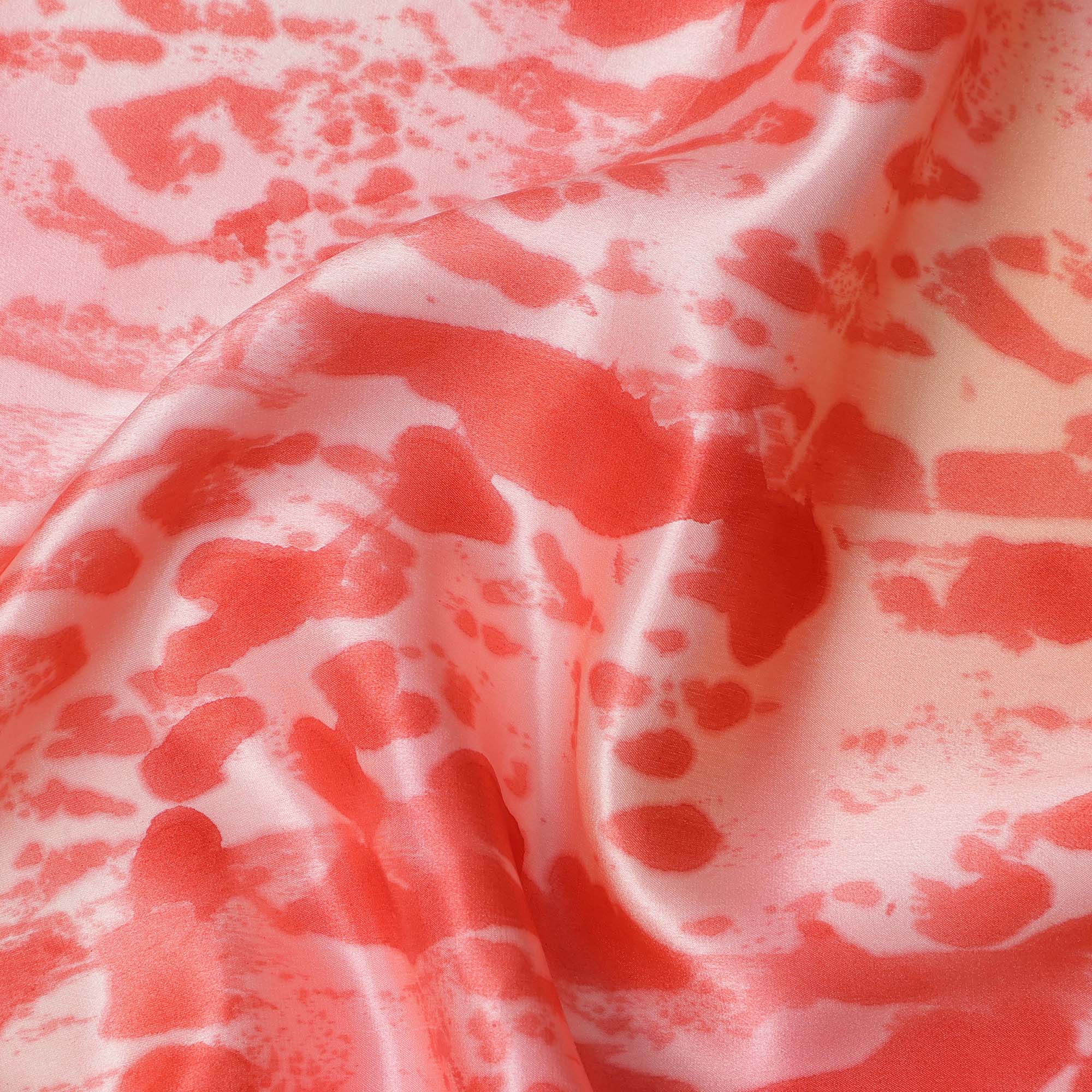 طباعة تجريدية باللون الأحمر المرجاني والوردي على قماش ساتان حريري خالص فاخر