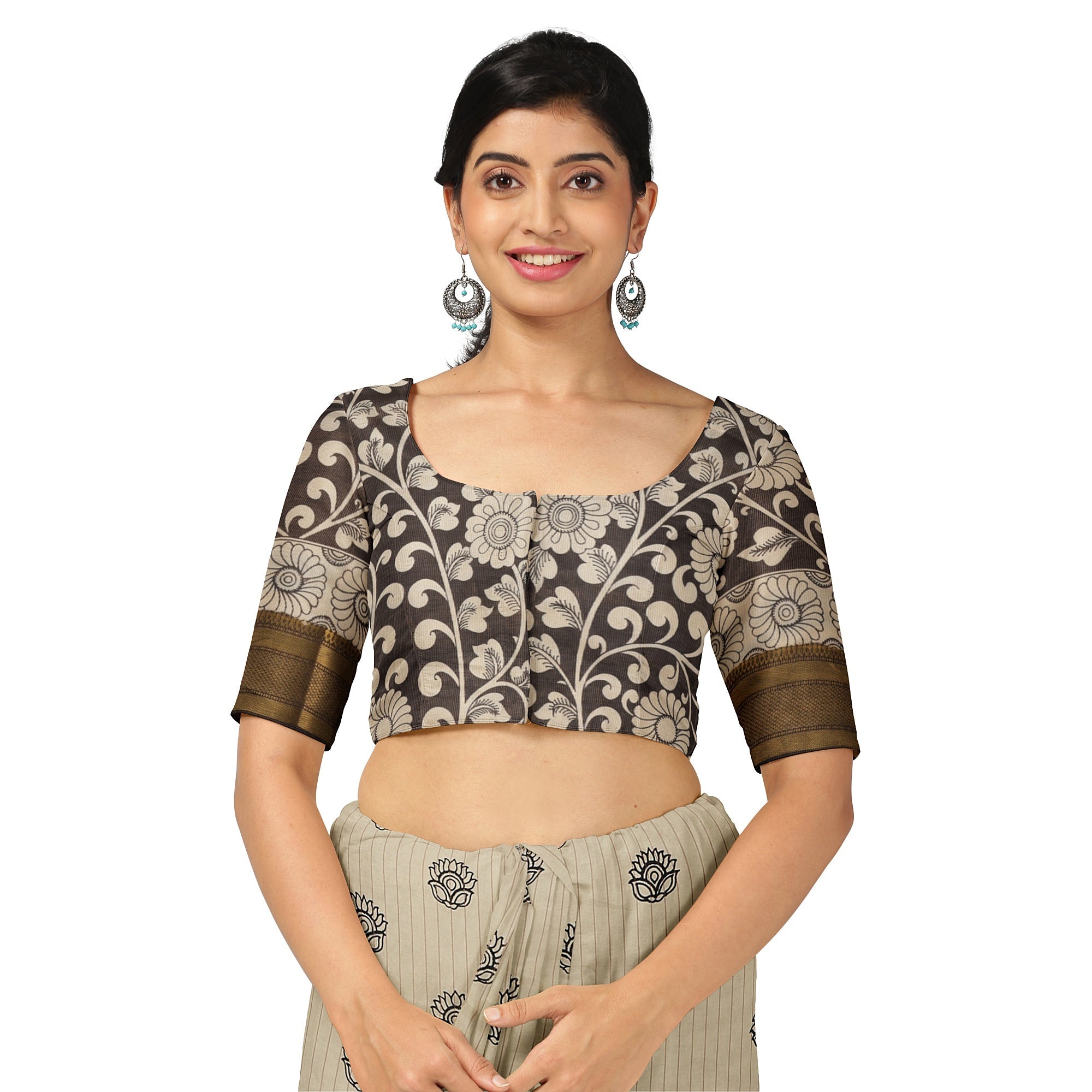 ساري "بين كالامكاري"، المنسوج من حرير كريم بنغالور، يُجسّد سيمفونية بصرية تجمع بين التقاليد ورواية القصص، مرسومة يدويًا بمشاهد أسطورية وأنماط مقدسة. كل لمسة من الفرشاة، المصنوعة بأقلام الخيزران والأصباغ الطبيعية، تُعبّر عن التفاني والإتقان، وتتطلب ١٨ ساعة من العمل الدقيق على يد حرفيين مهرة من سري كالاهاستي. تُبرز الخلفية الكريمية التفاصيل الدقيقة المطلية بألوان الصدأ الداكن والأسود والأصفر، مُصوّرةً الآلهة في أوضاع إلهية، والراقصين في منتصف العرض، والنباتات المزخرفة في انسياب إيقاعي. يُكمّل لمعان القماش الناعم وانسيابيته عمقه البصري، بينما تُكمل بلوزة بطول ٥.٥ متر وقطعة مُطابقة لها المجموعة. تسوّق عبر الإنترنت لتتألق بتراث يروي ملاحم الهند الخالدة.