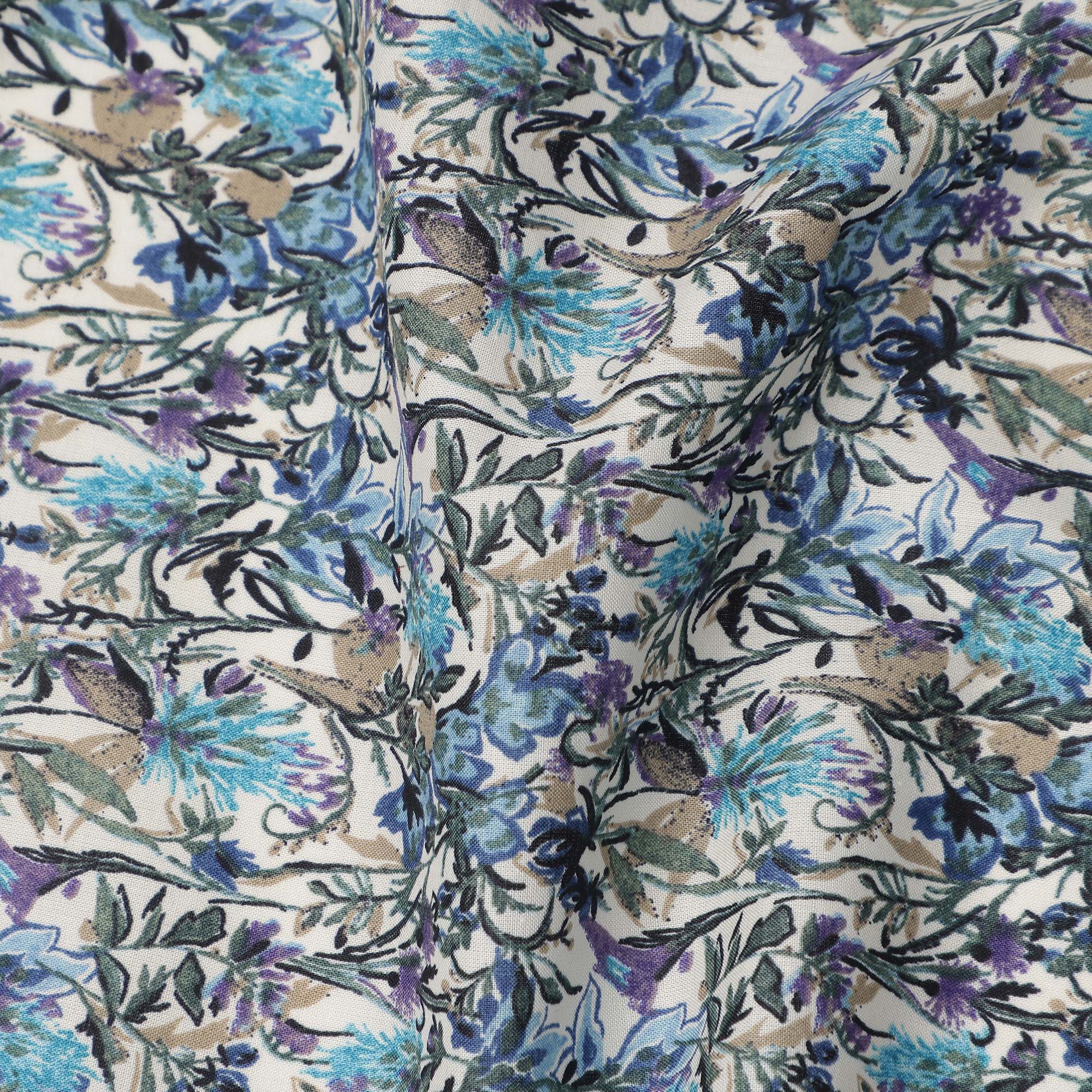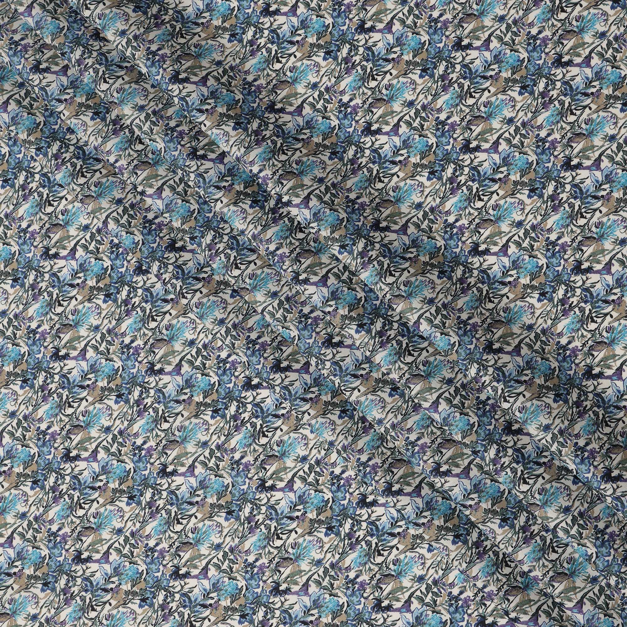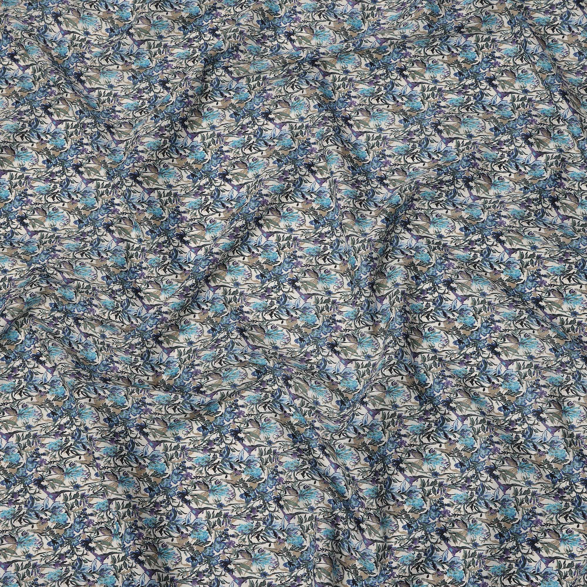 Cream Blue Multicolor Floral Print Cotton Lawn Fabric – Artistic Botanical Design, 110 cm Width, Made in Japan-D26832