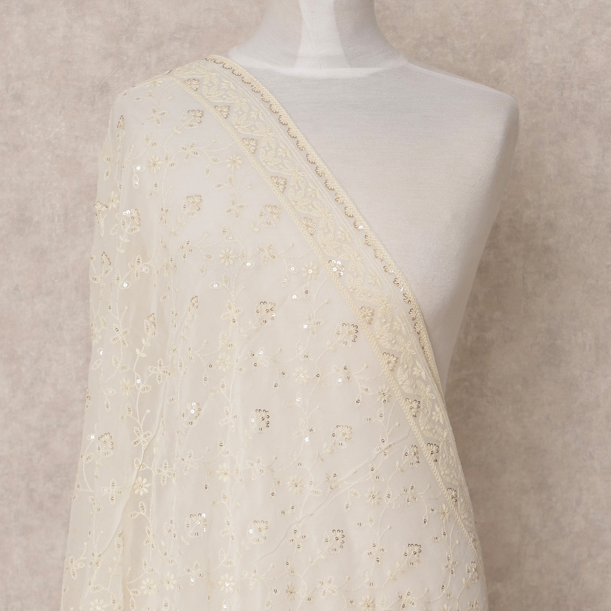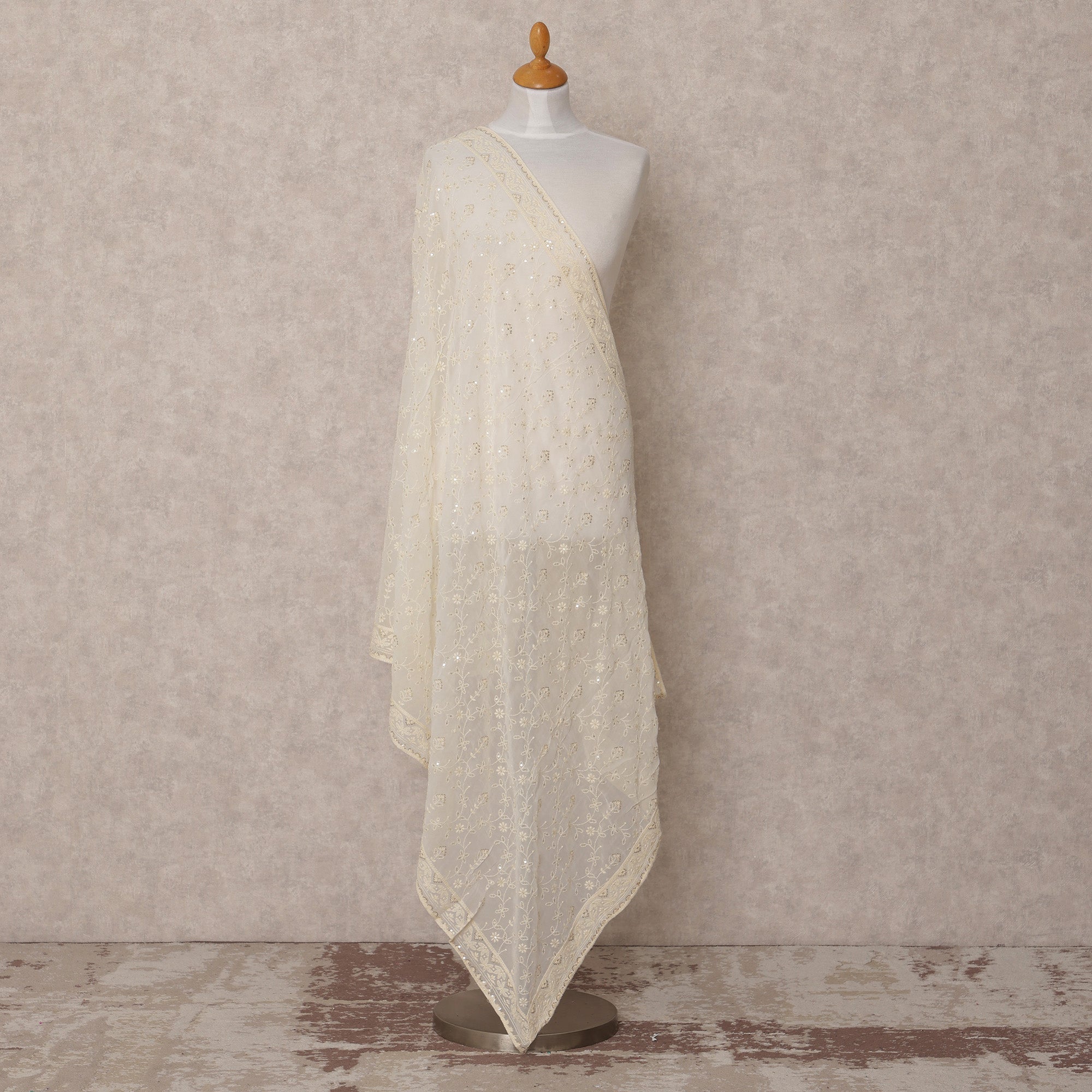 دوباتا من قماش جورجيت صناعي كريمي مع تطريز زهري أنيق