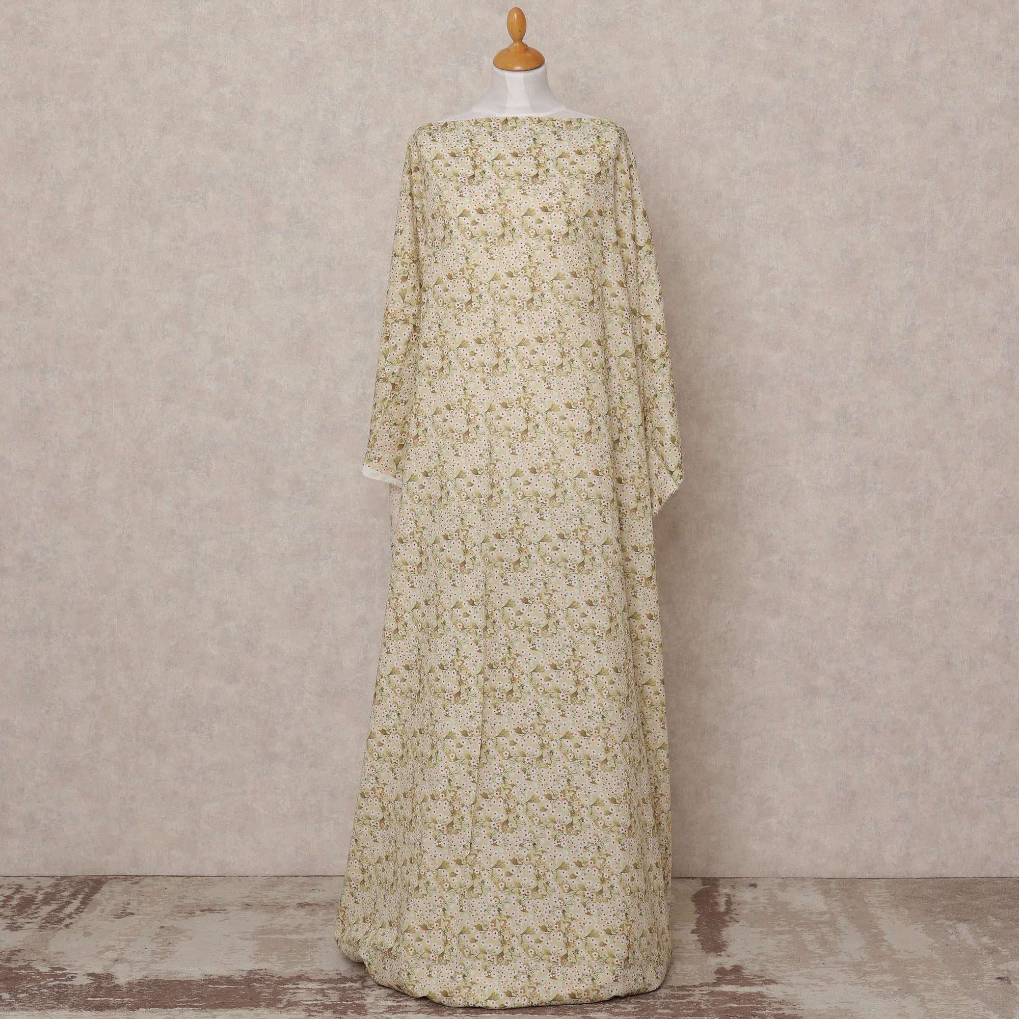 قماش ديراك قطني صومالي مزهر باللون الأخضر الكريمي، 3.5 متر، عرض 150 سم، صنع في الهند - D24624
