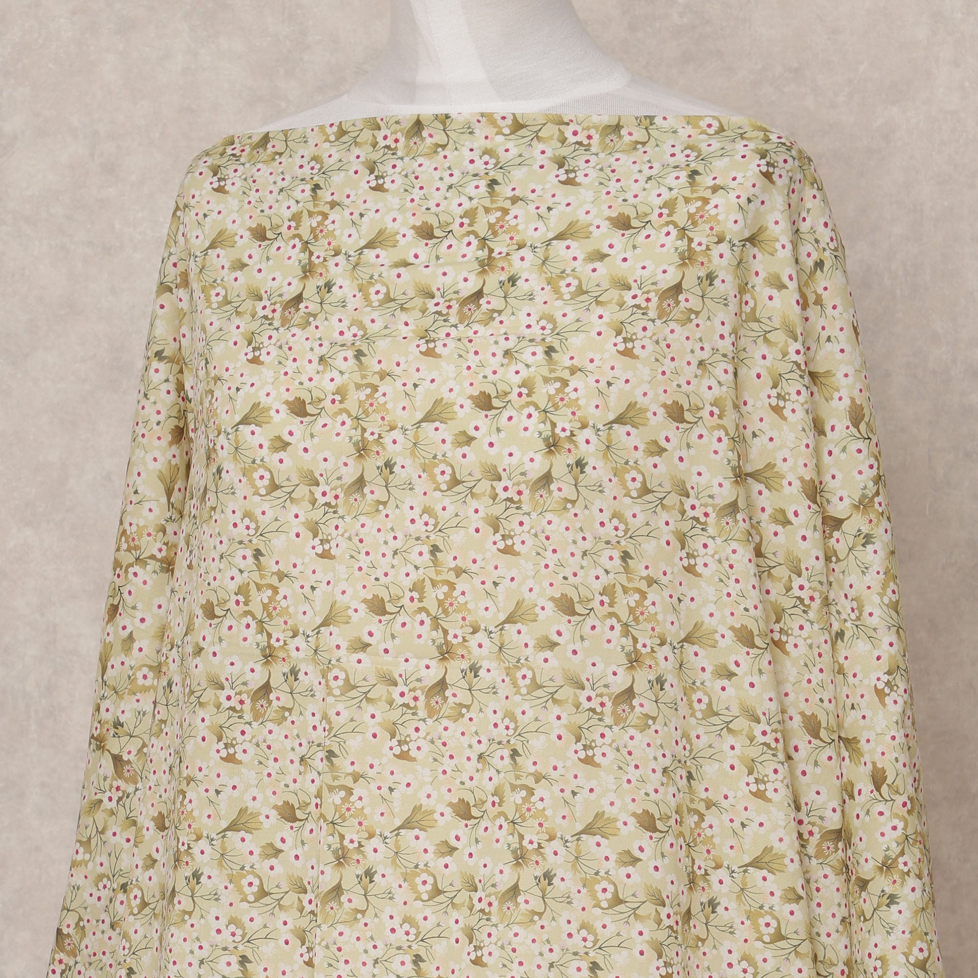 • أُوكَازيُون -25% قماش ديراك قطني صومالي مزهر باللون الأخضر الكريمي، 3.5 متر، عرض 150 سم، صنع في الهند - D24624