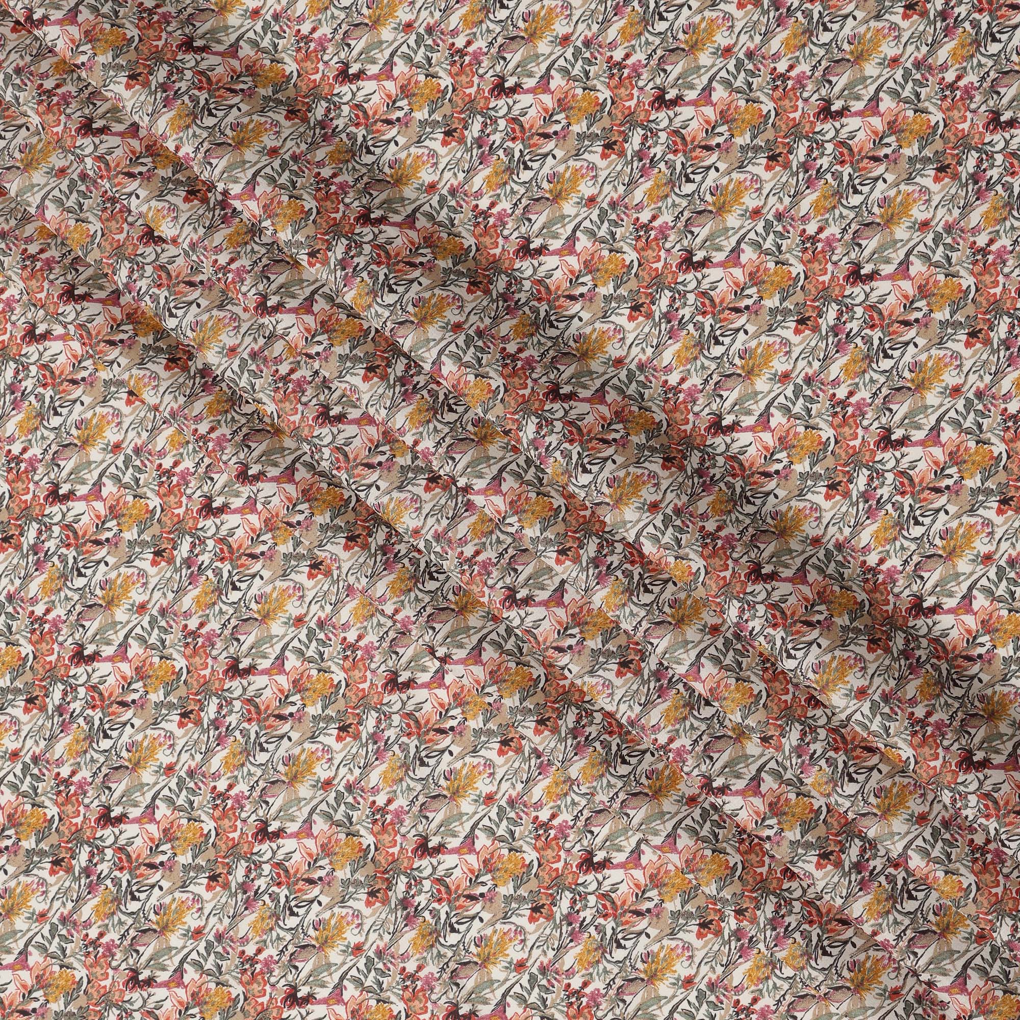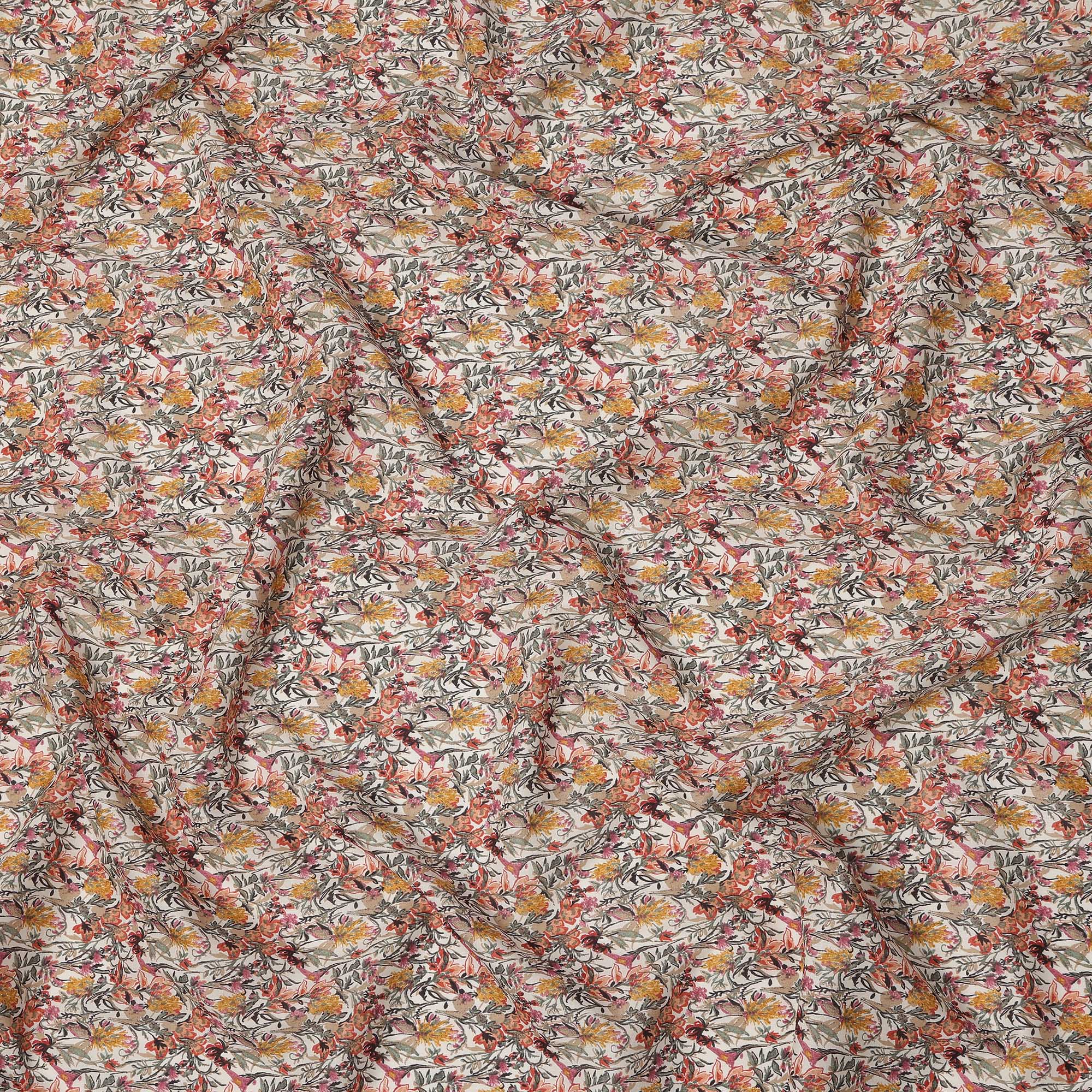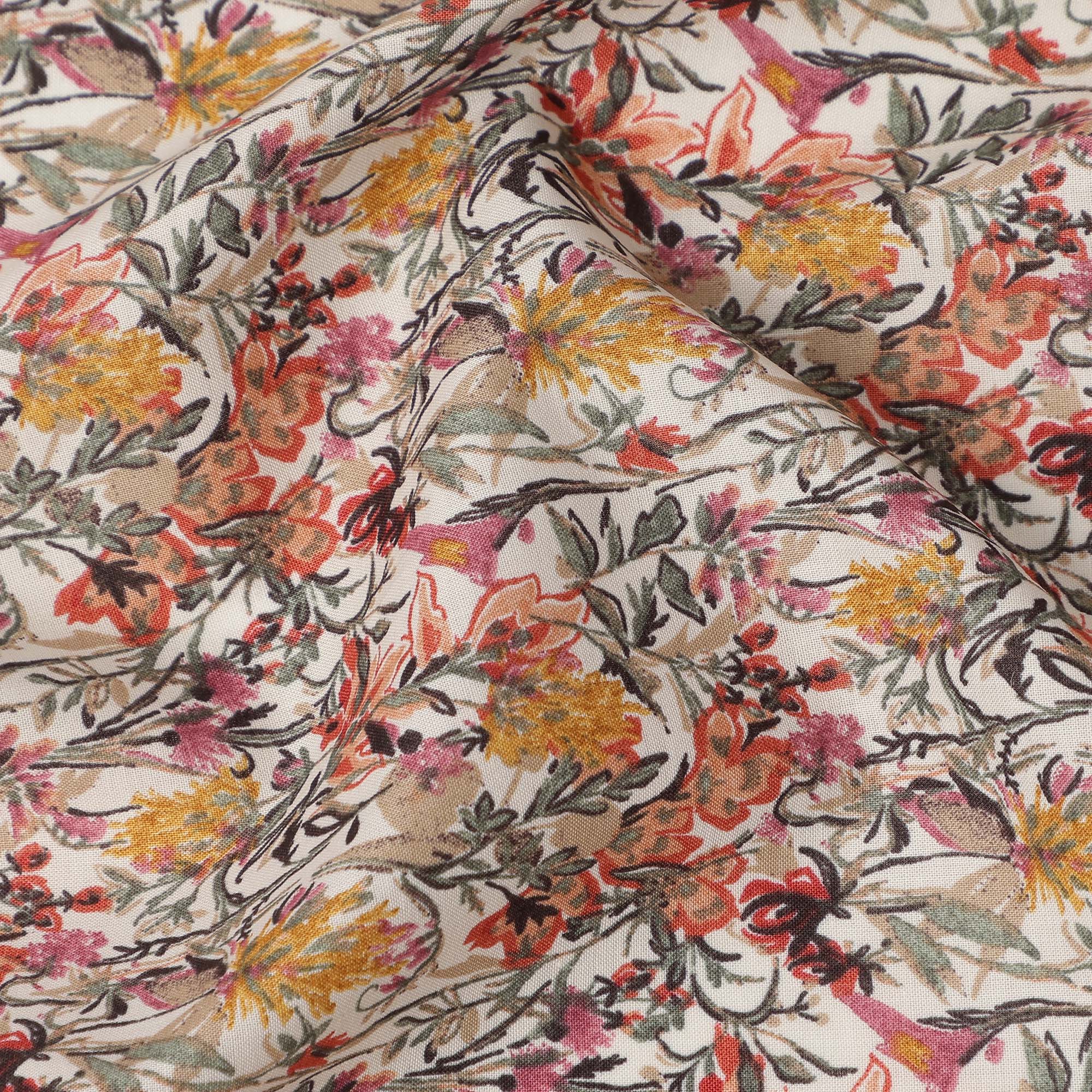Cream Multicolor Abstract Floral Print Cotton Lawn Fabric – Artistic Botanical Design, 110 cm Width, Made in Japan-D26829
