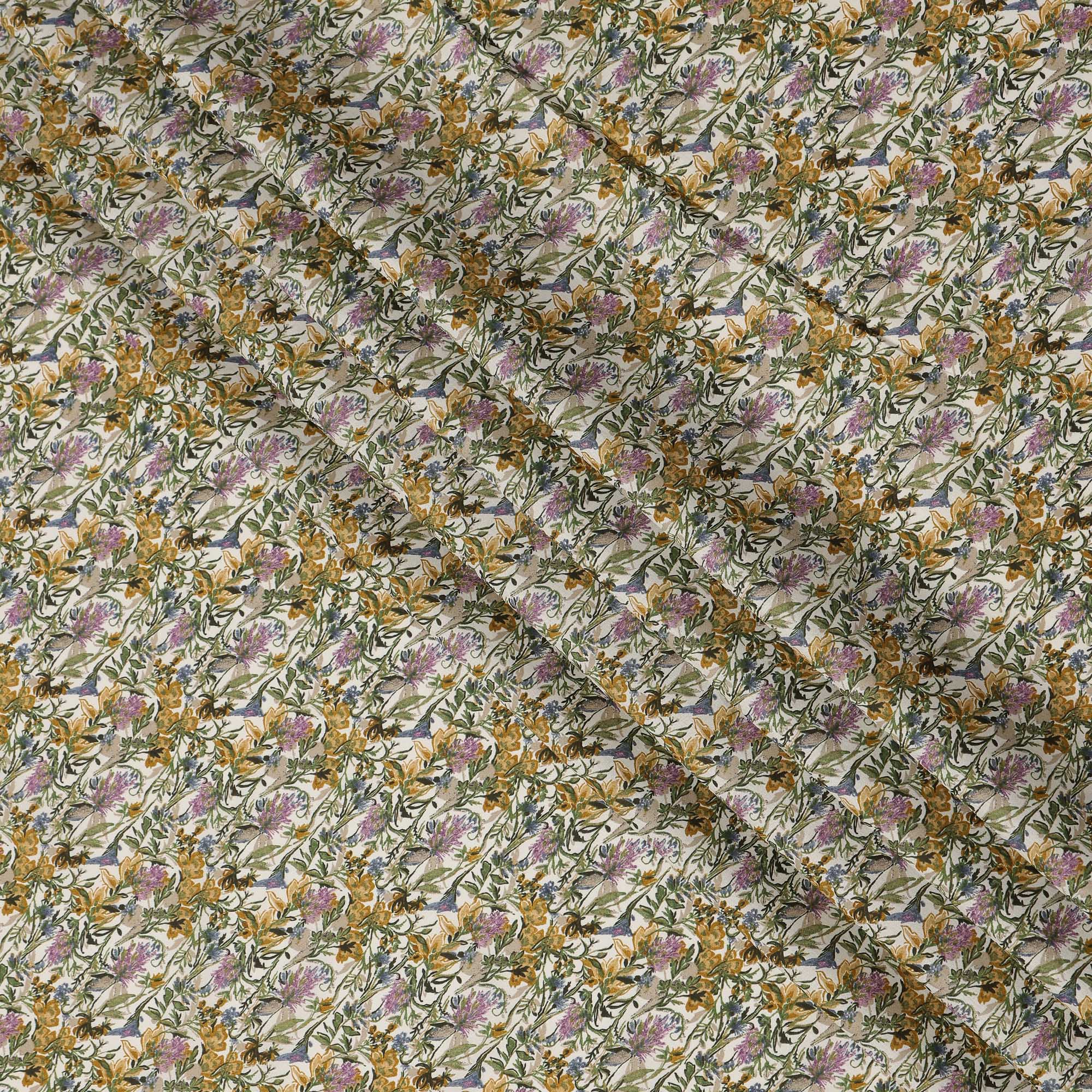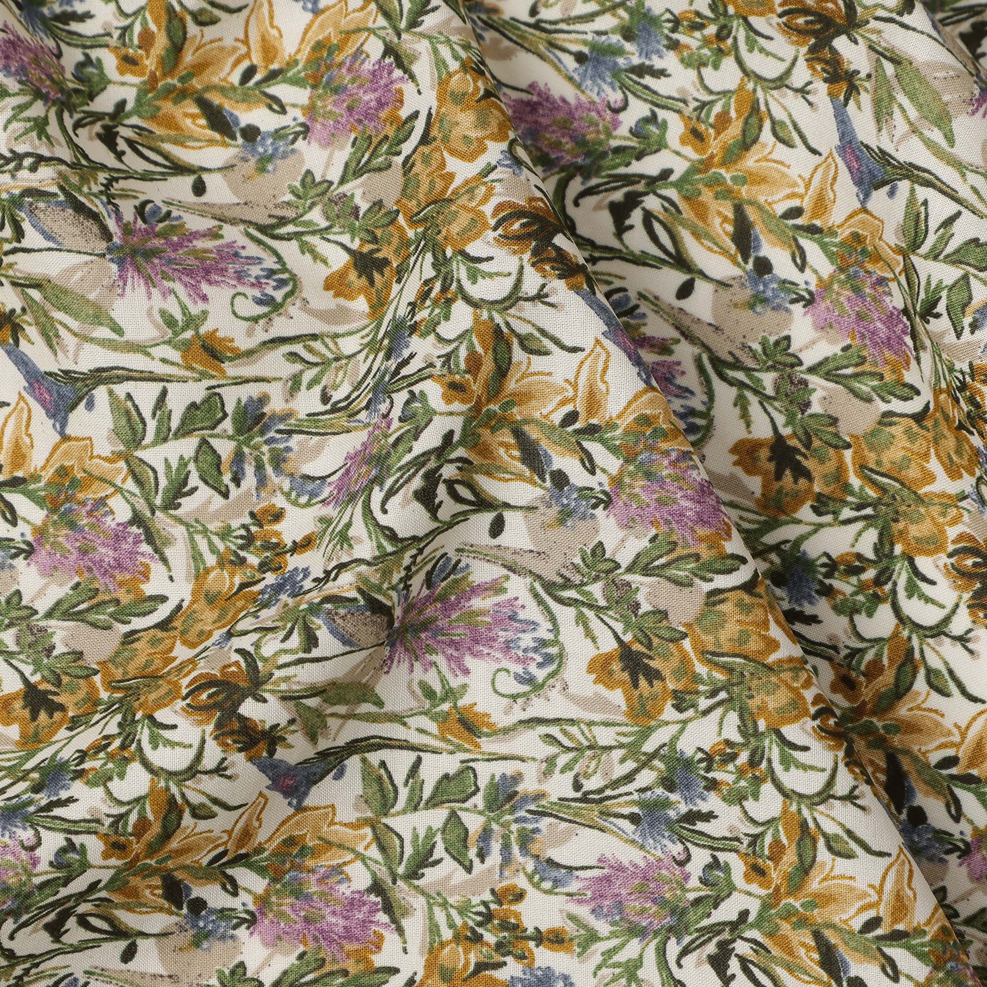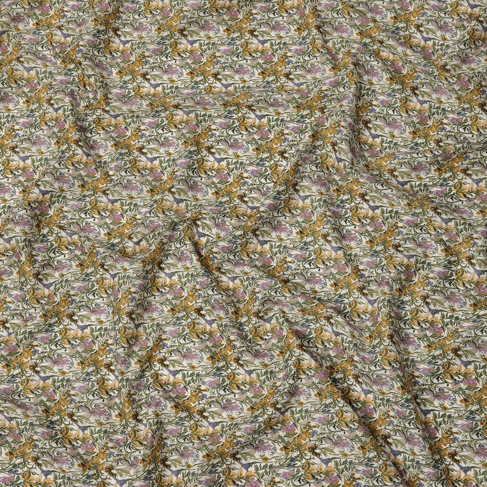 Cream Multicolor Floral Print Cotton Lawn Fabric – Artistic Botanical Design, 110 cm Width, Made in Japan-D26828