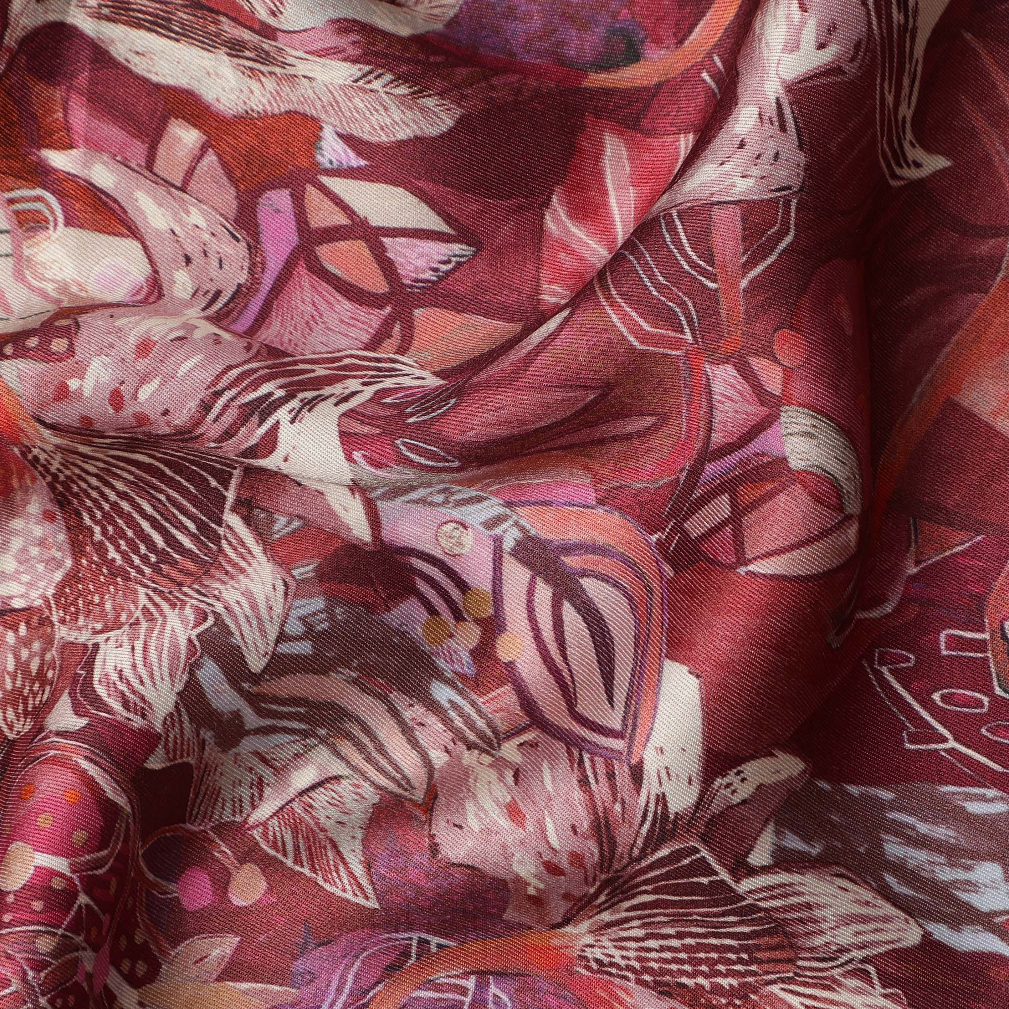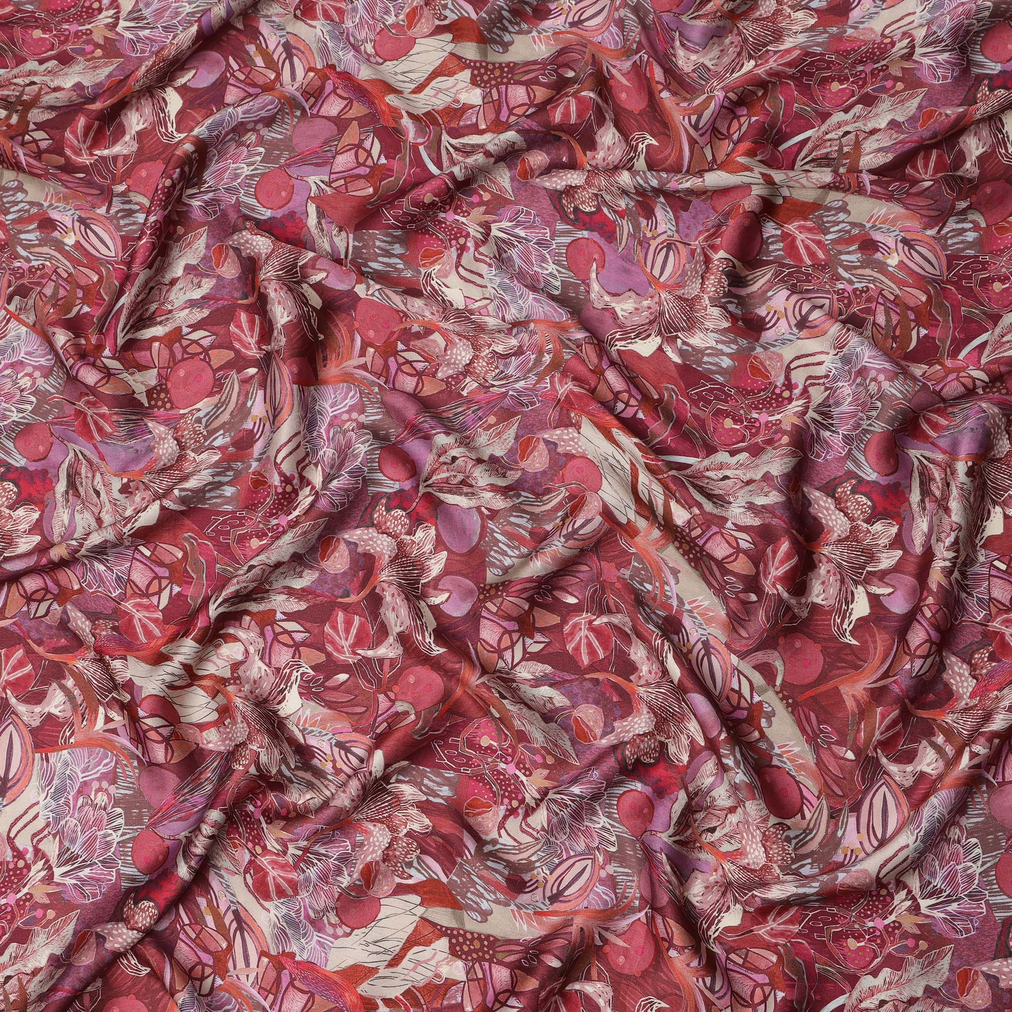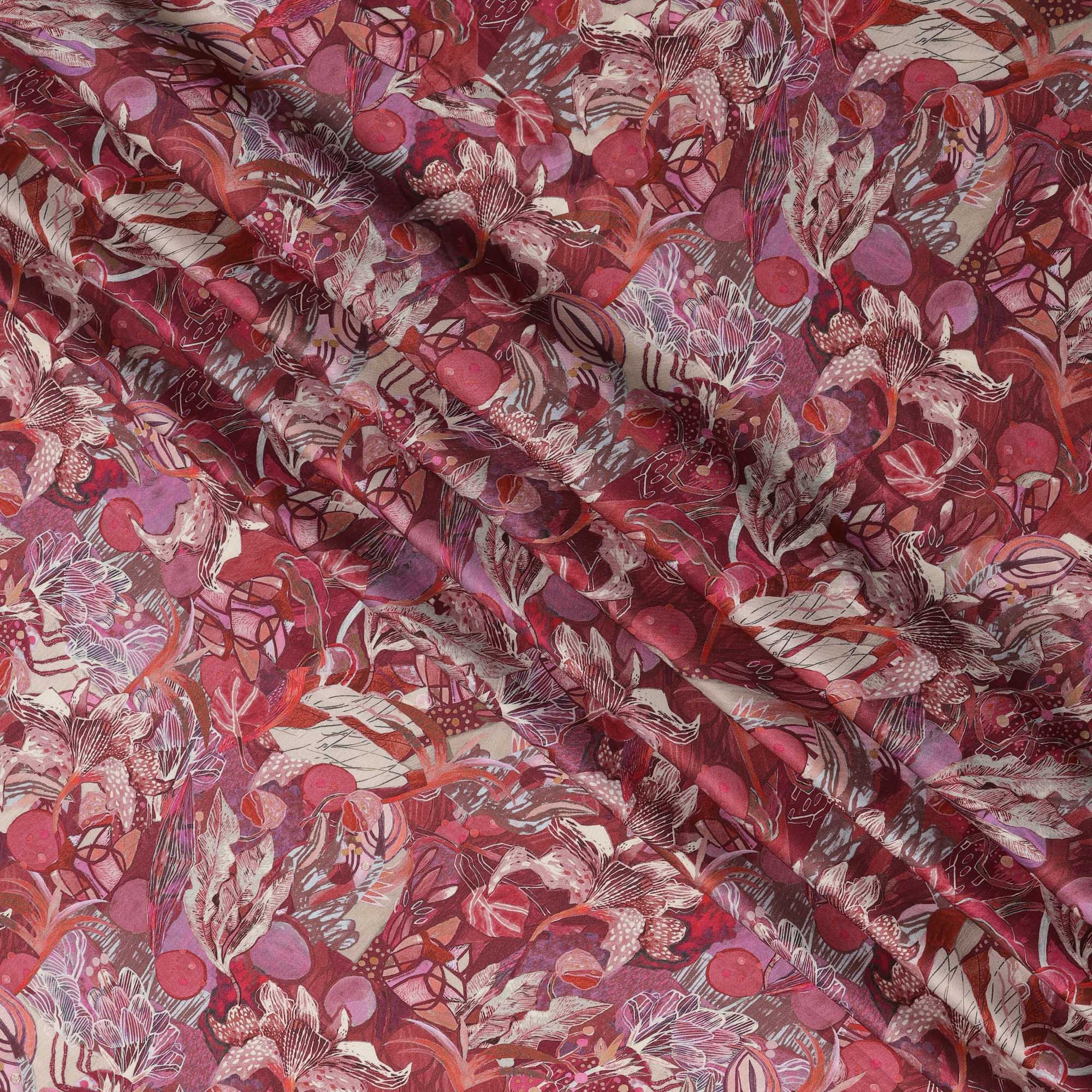 قماش ساتان فيسكوز مودال بطبعة نباتية تجريدية باللون الأحمر القرمزي، عرض 110 سم، صنع في الهند - D23301